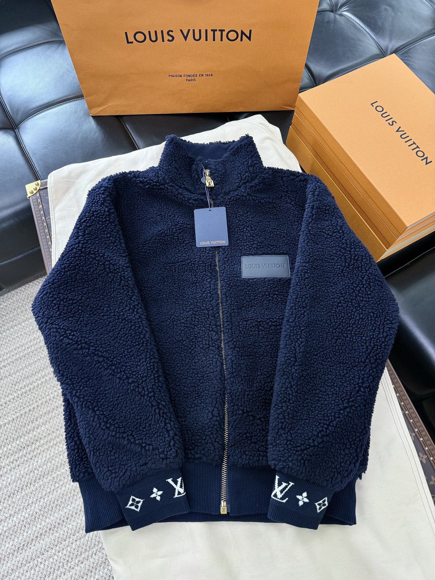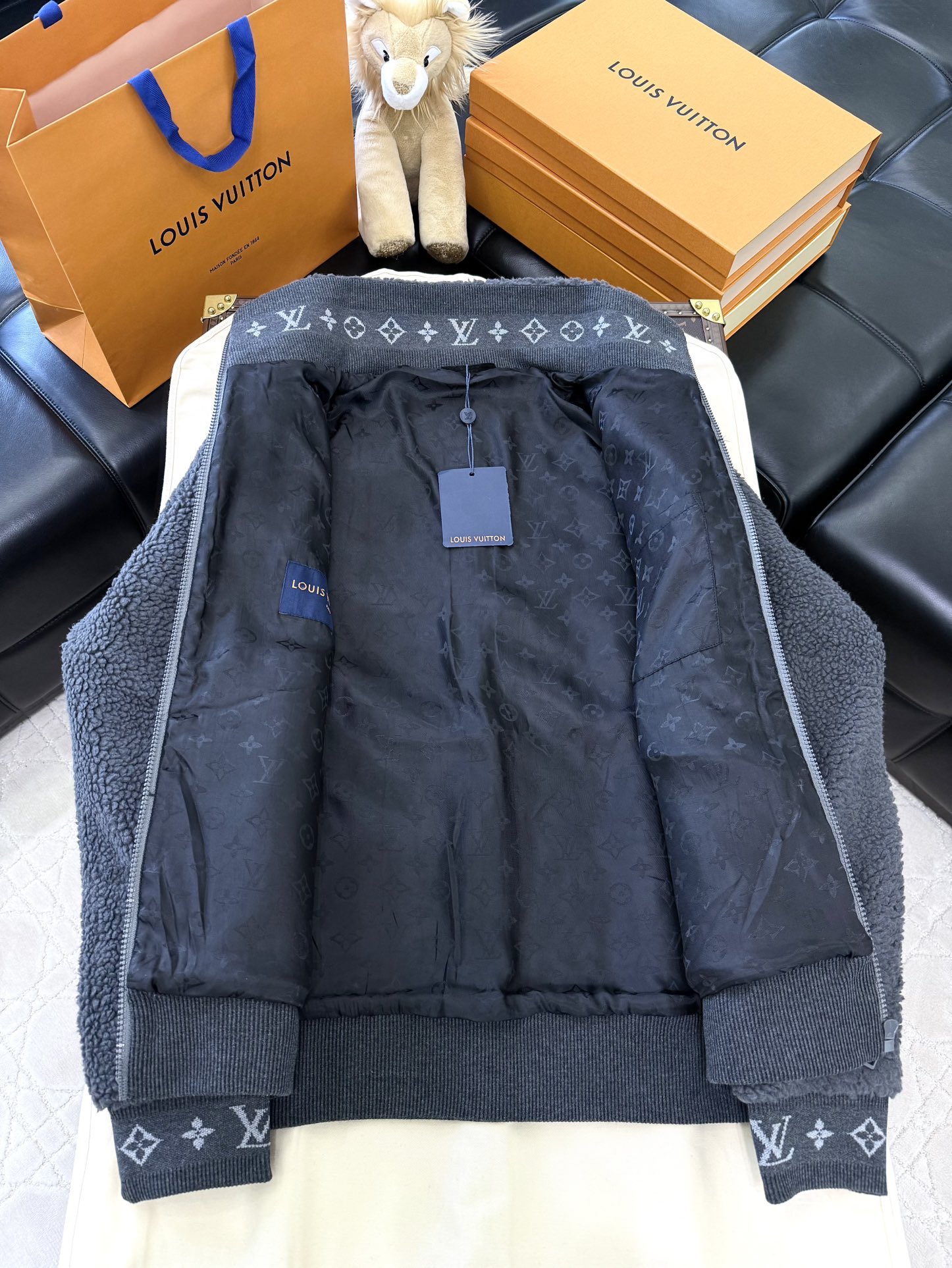 NIGO Louis Vuitton Men's Fall And Winter Logo Letters Jacquard Pattern Fleece Casual Zipper Long Sleeved Jacket #nigo74384