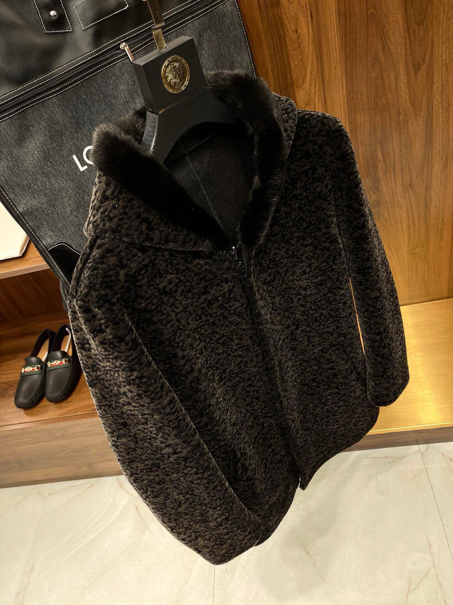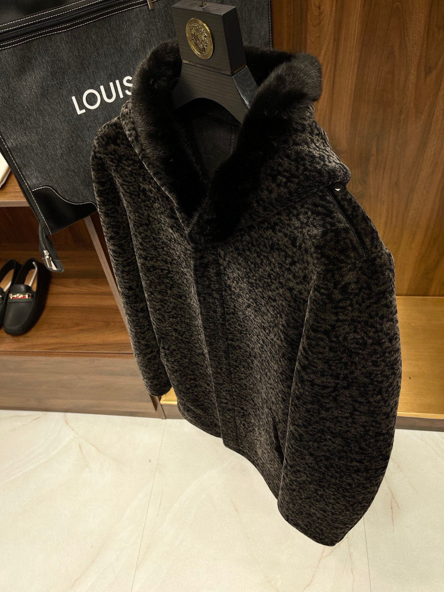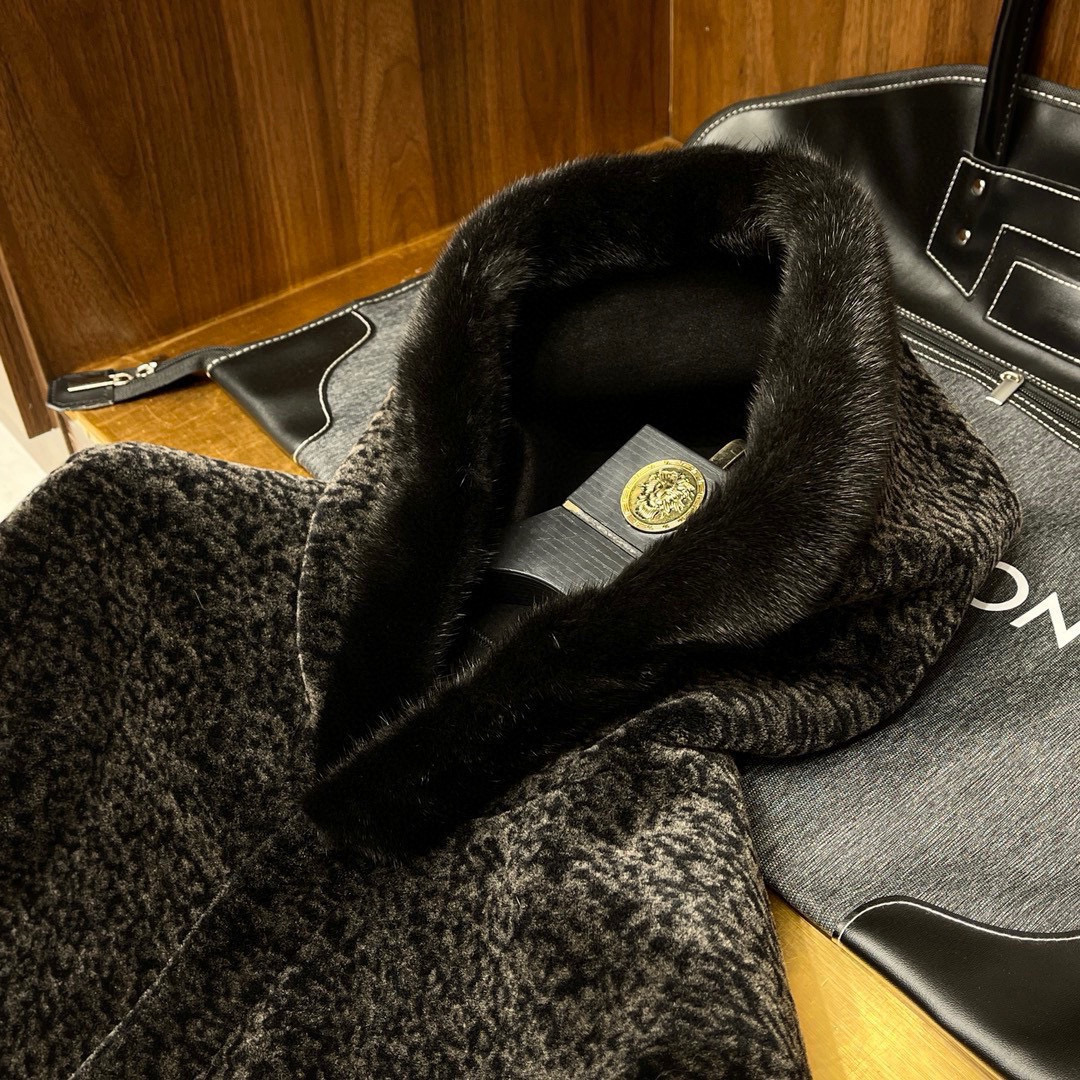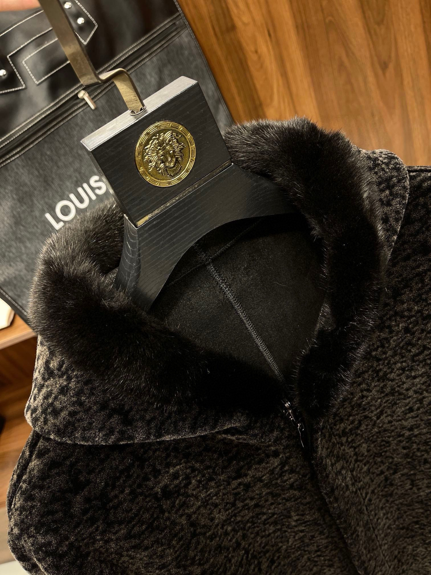 NIGO Louis Vuitton Men's Fall And Winter Mink Fur Collar Super Soft Delicate Leopard Lamb Wool Suede Long Coat Jacket #nigo75173