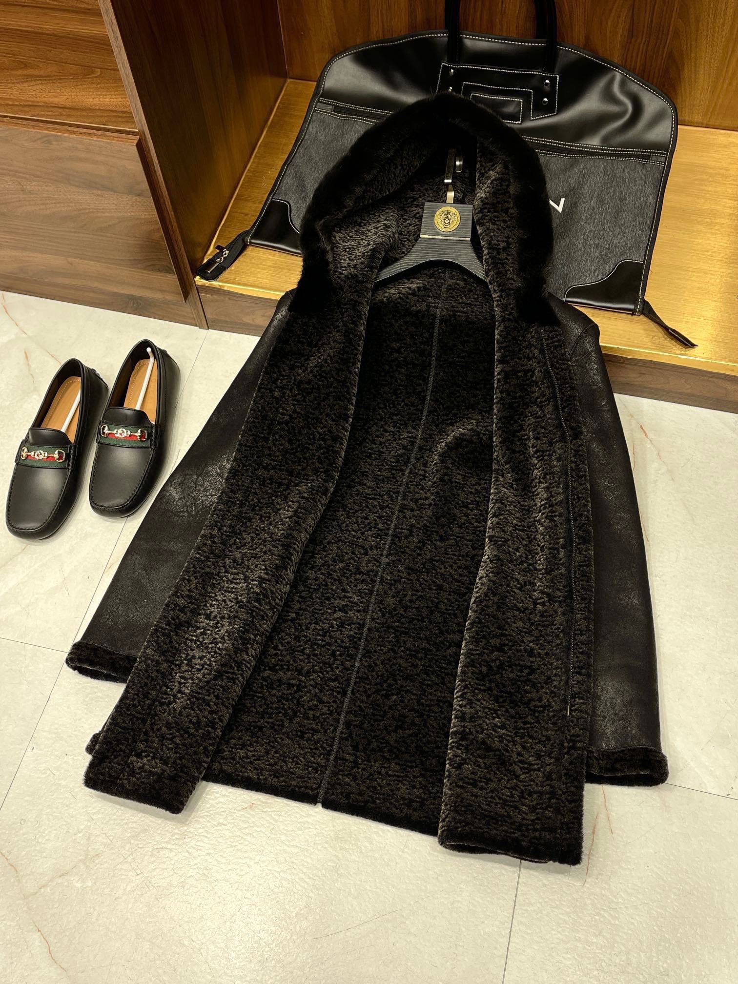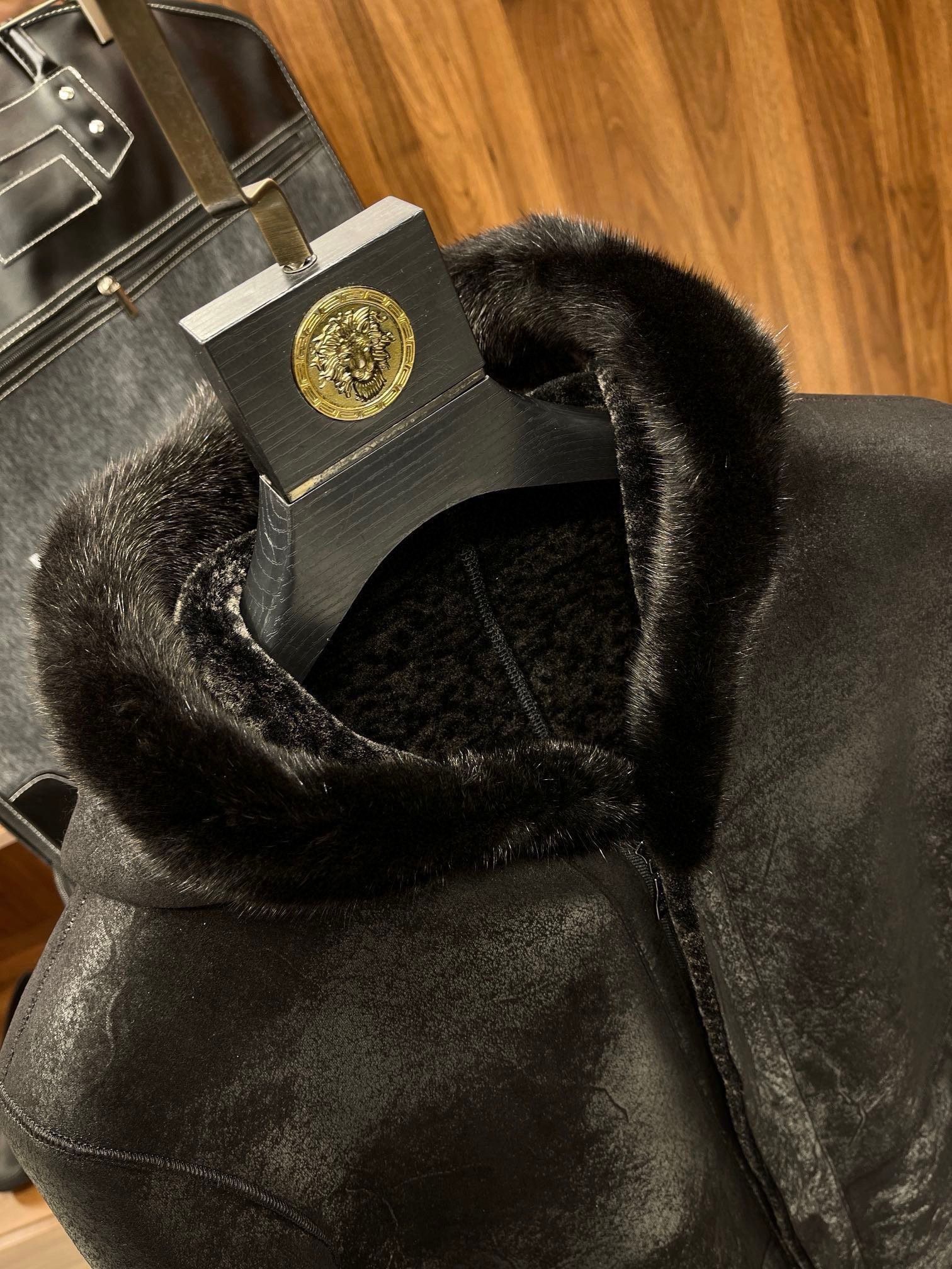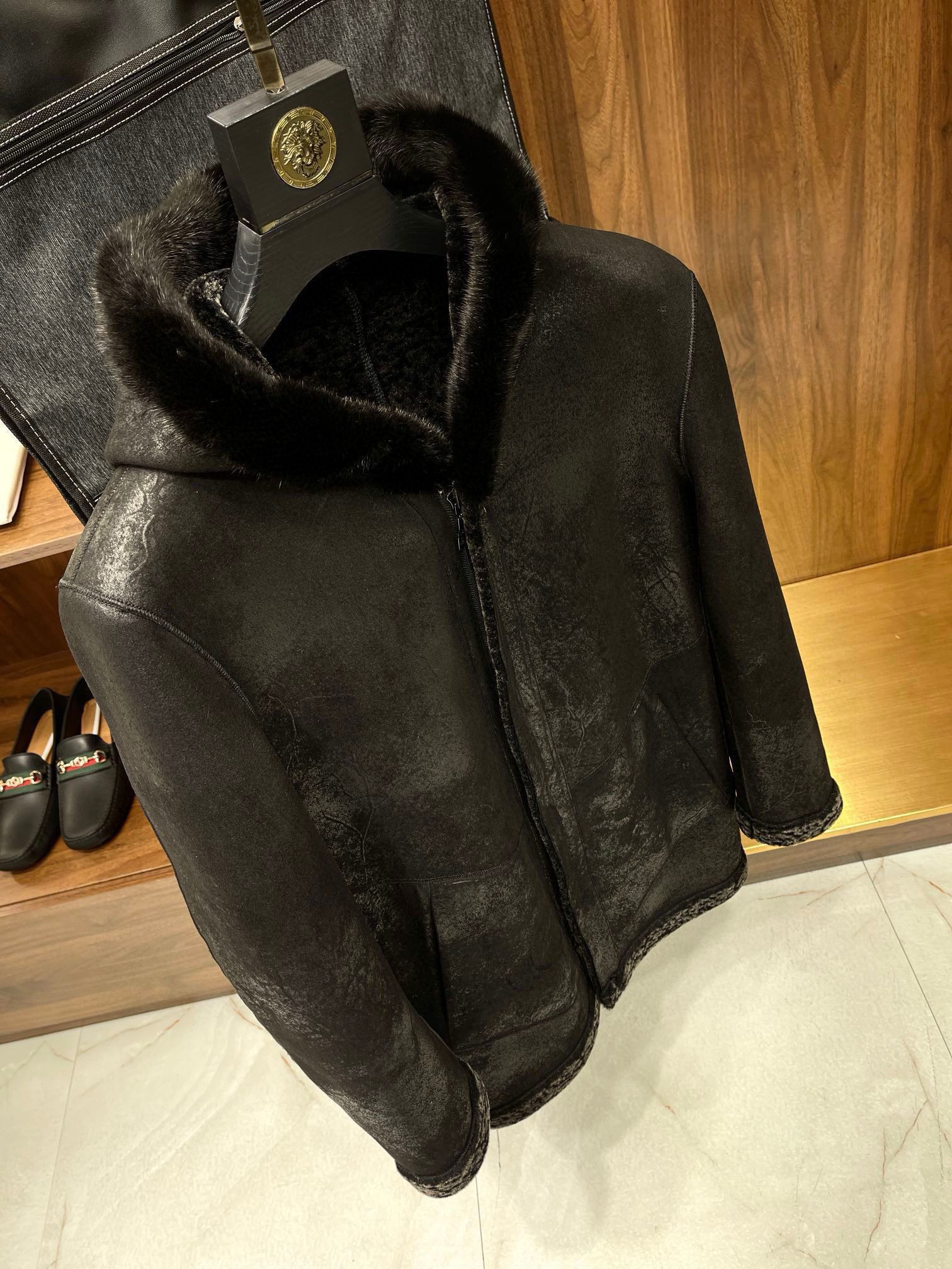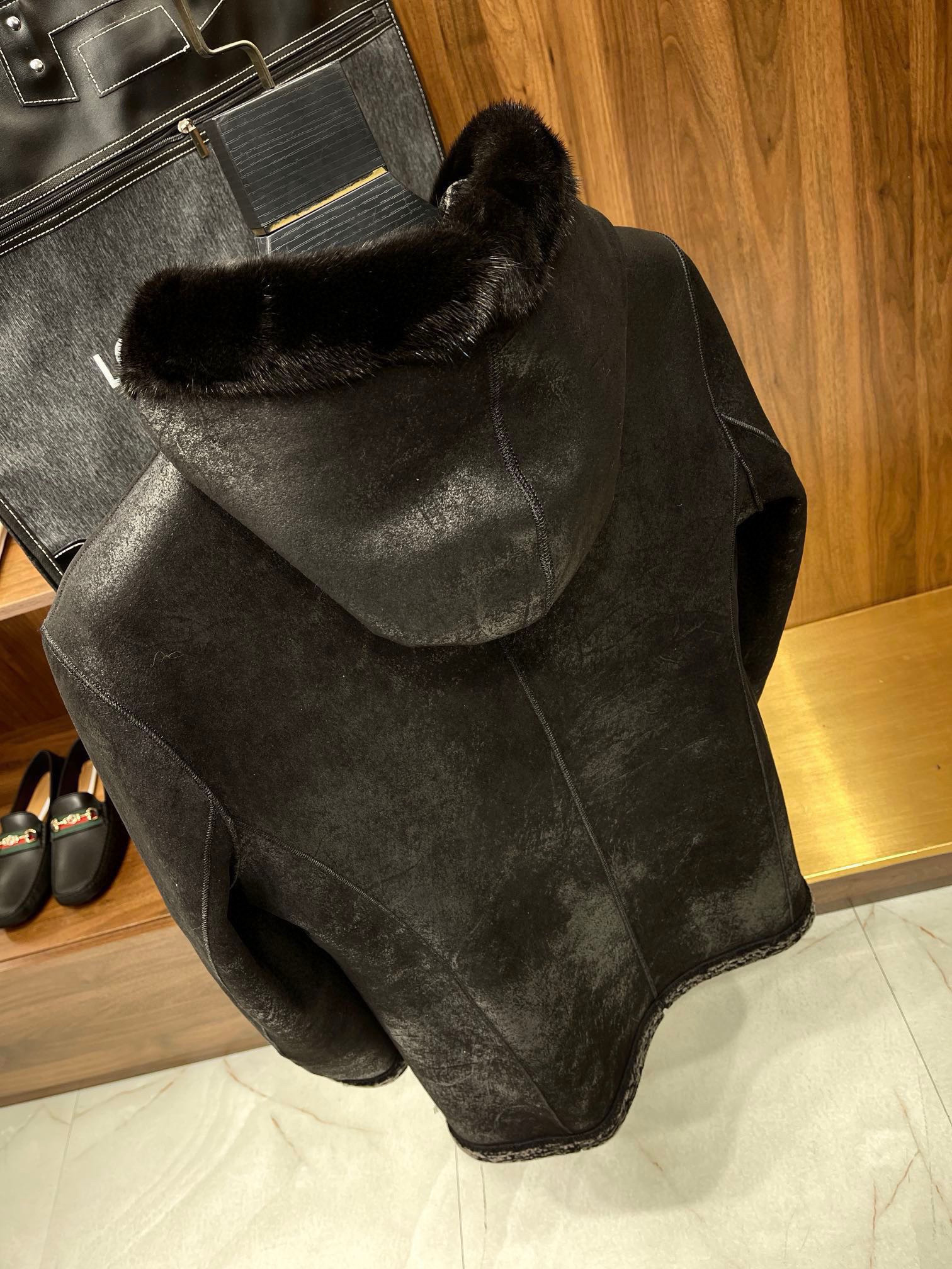 NIGO Louis Vuitton Men's Fall And Winter Mink Fur Collar Super Soft Delicate Leopard Lamb Wool Suede Long Coat Jacket #nigo75173