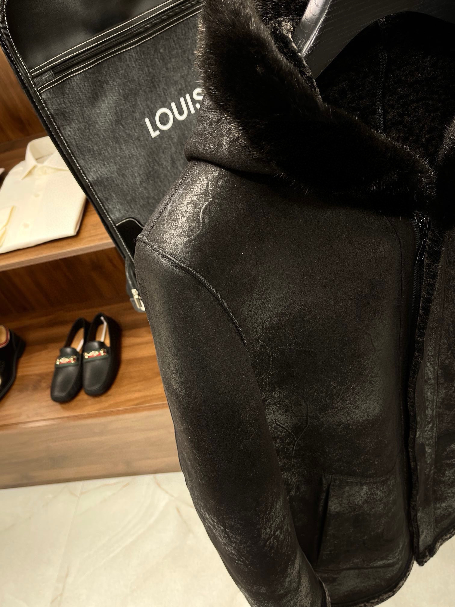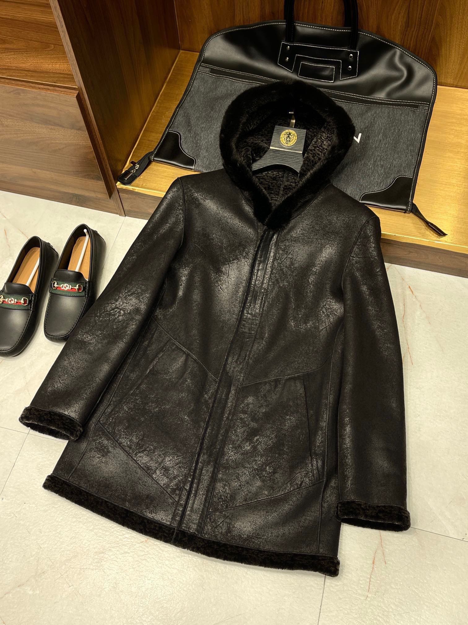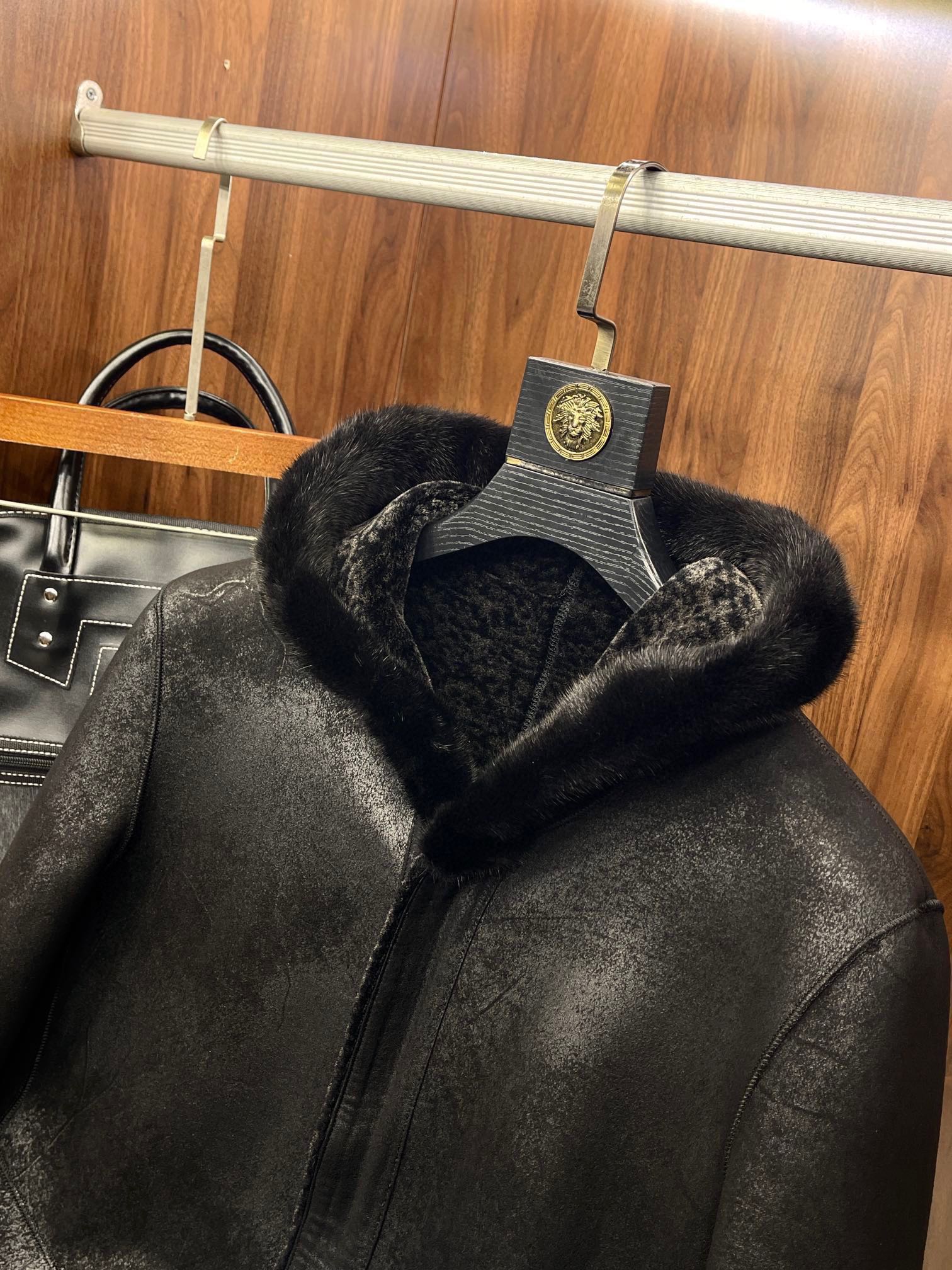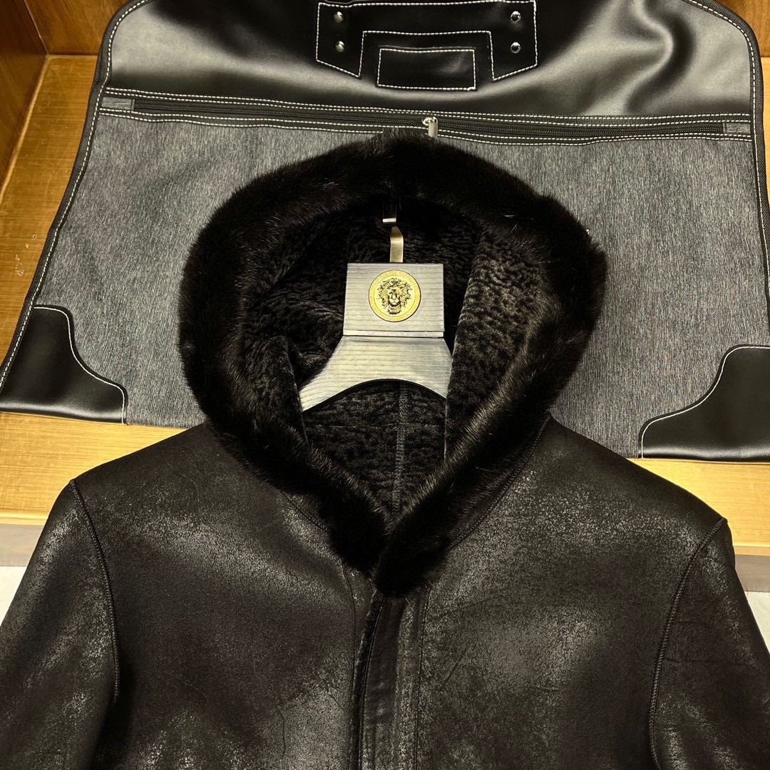 NIGO Louis Vuitton Men's Fall And Winter Mink Fur Collar Super Soft Delicate Leopard Lamb Wool Suede Long Coat Jacket #nigo75173