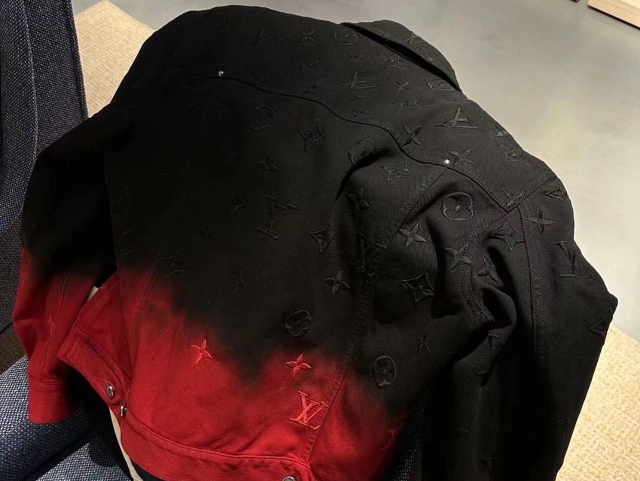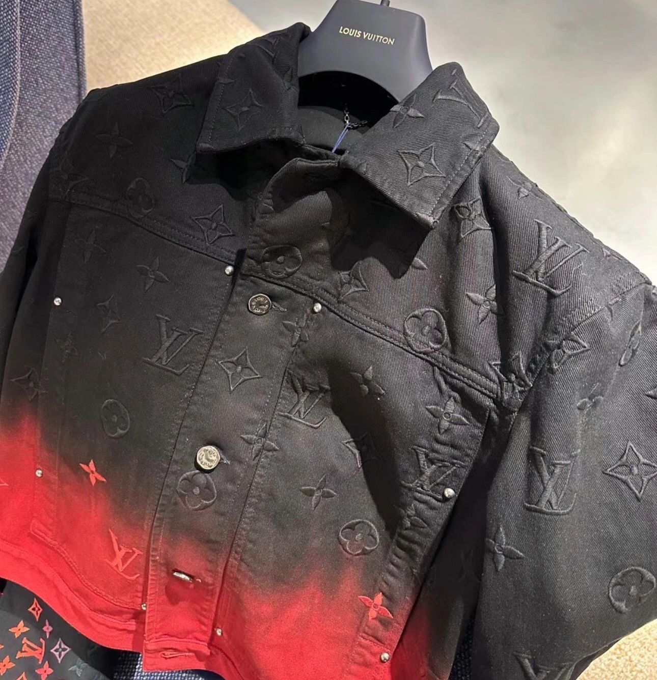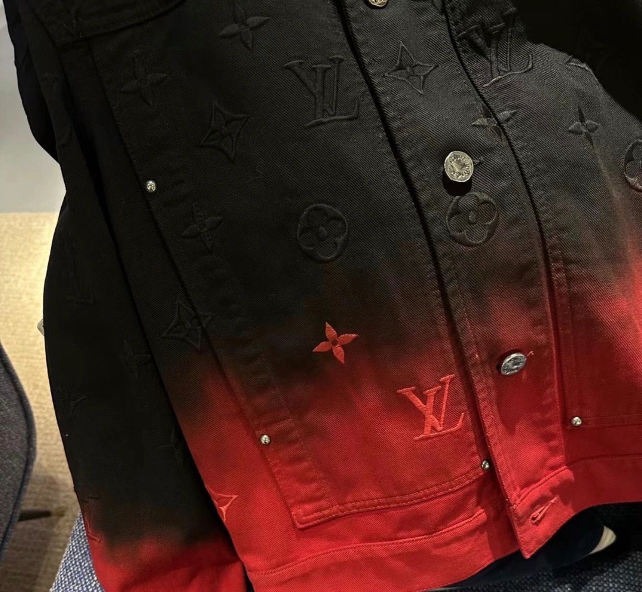 NIGO Louis Vuitton Men's Fall And Winter Models Black And Red Gradient Long Sleeved Denim Single Breasted Jacket #nigo98144
