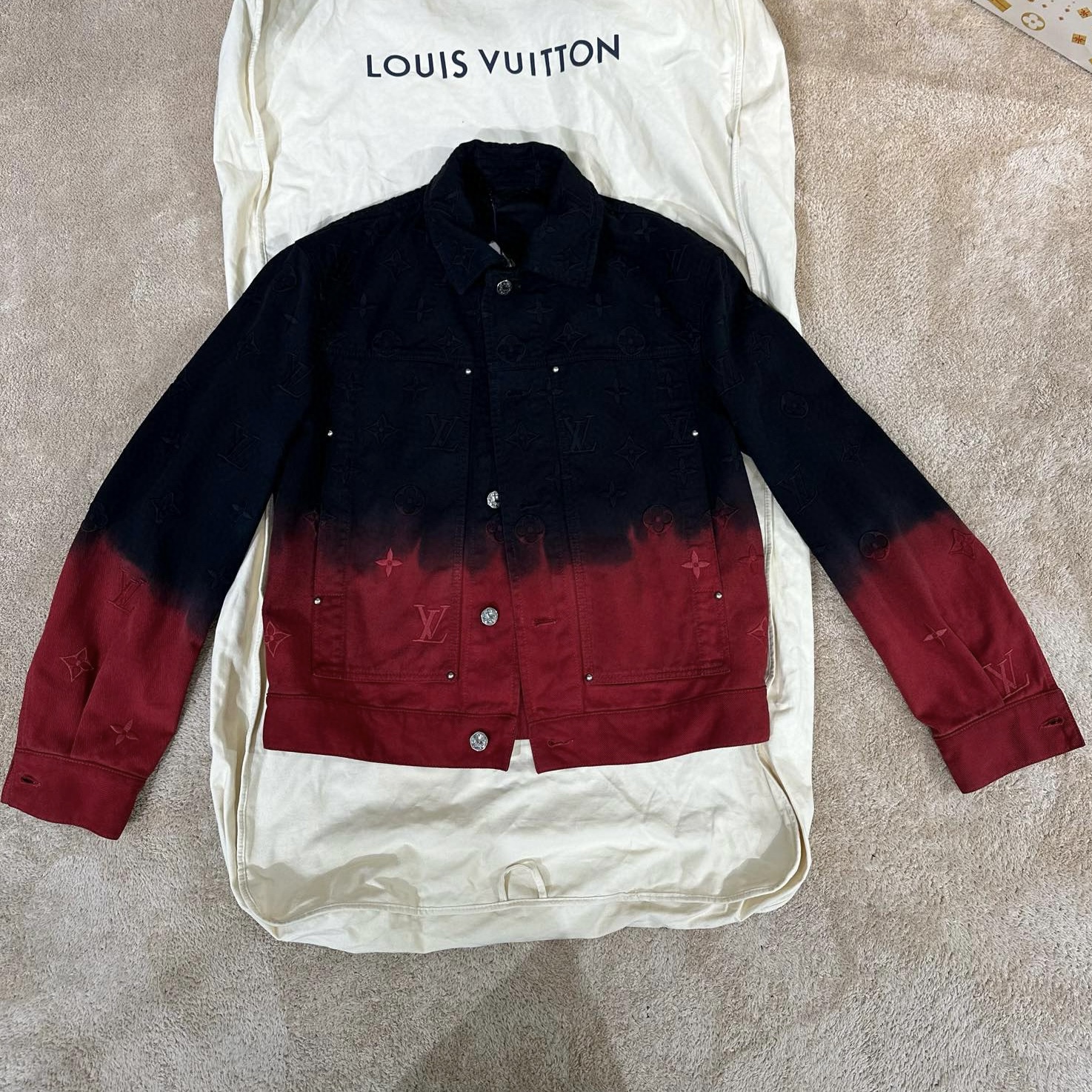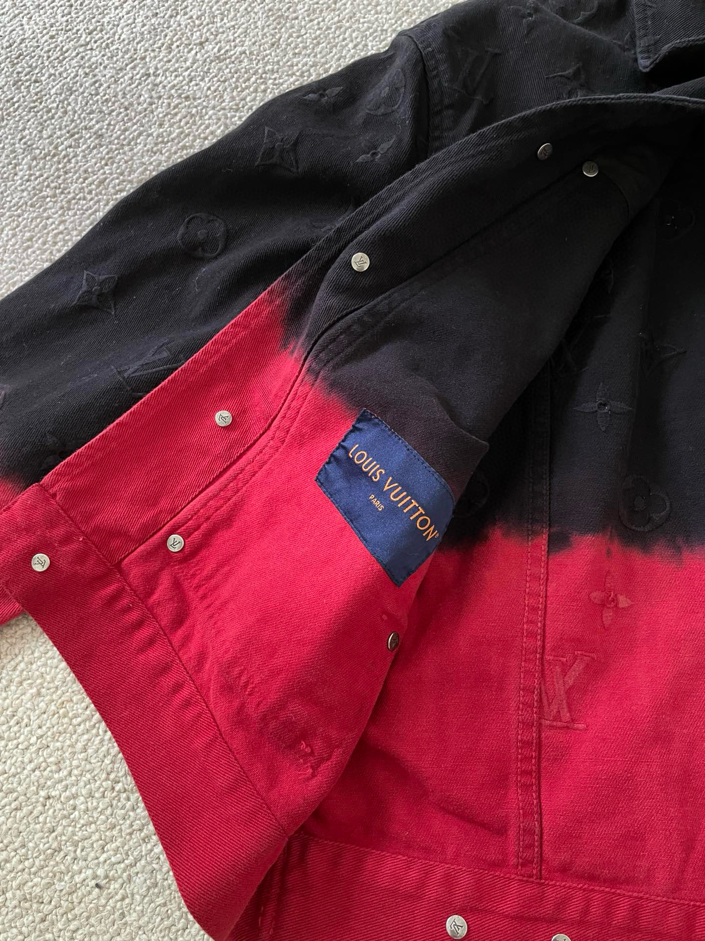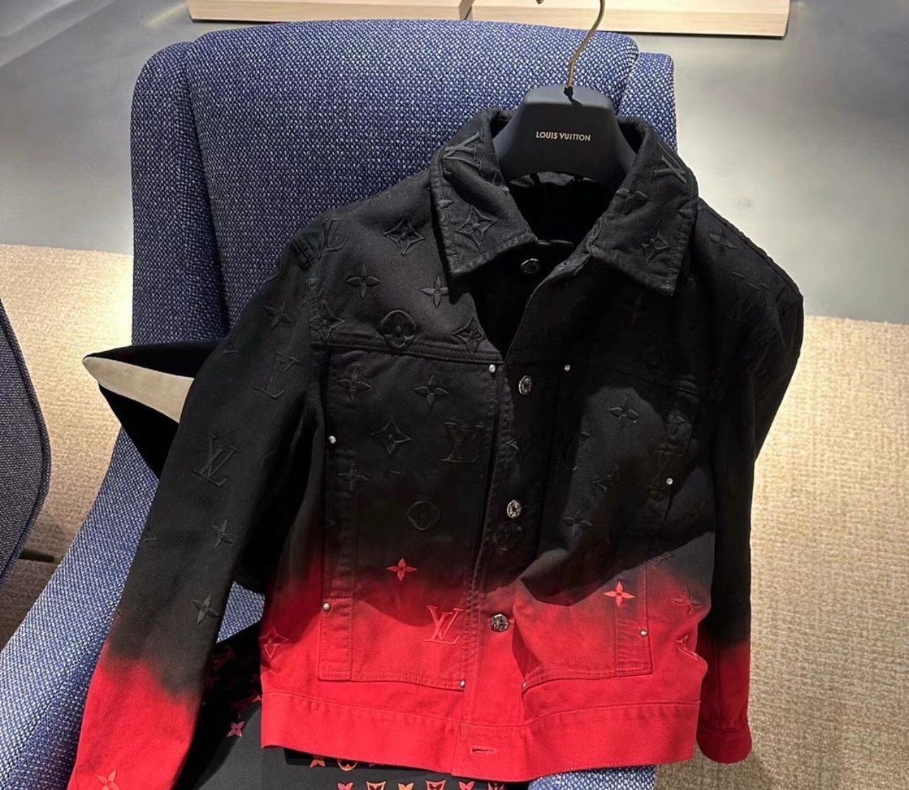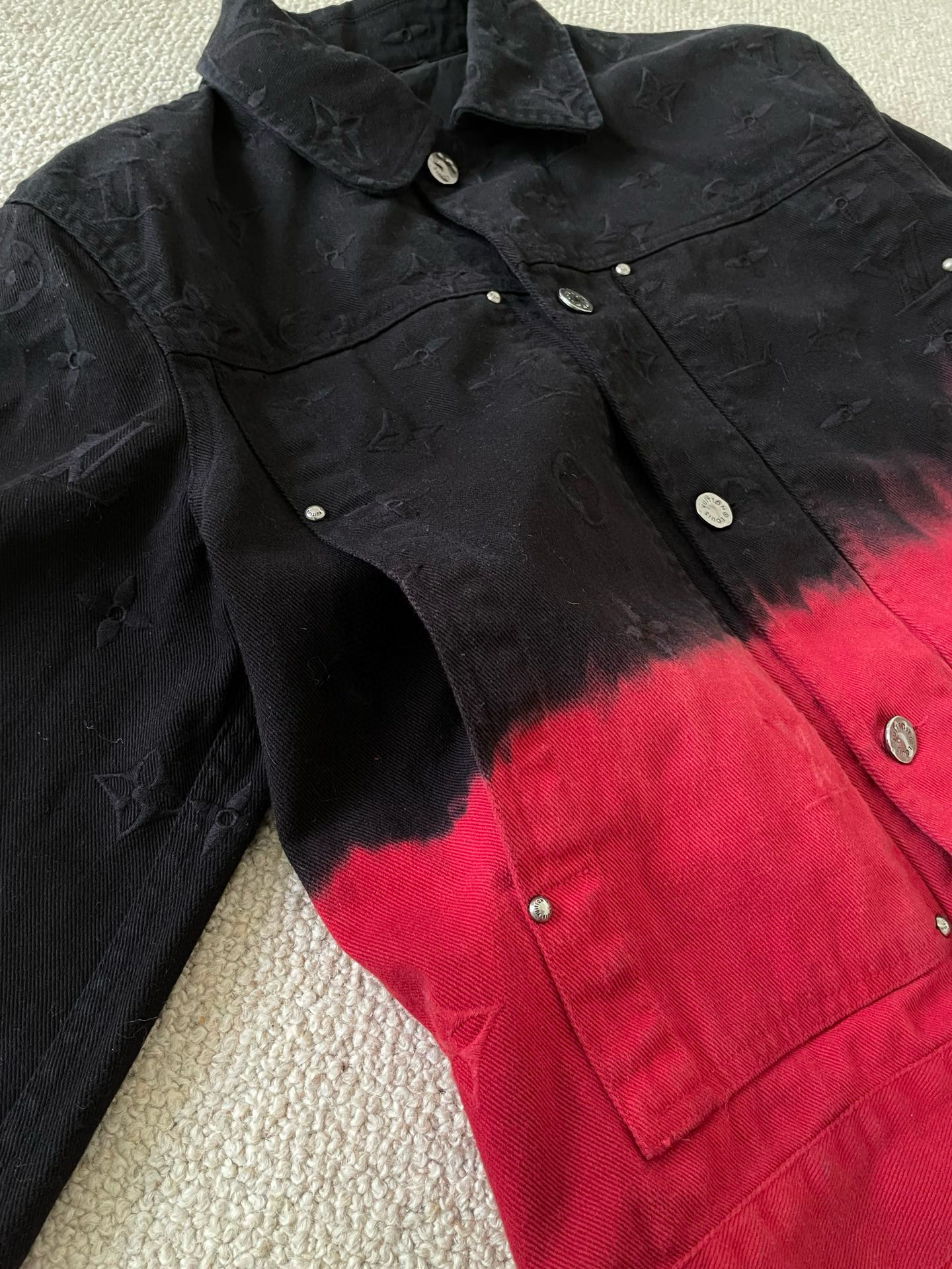 NIGO Louis Vuitton Men's Fall And Winter Models Black And Red Gradient Long Sleeved Denim Single Breasted Jacket #nigo98144