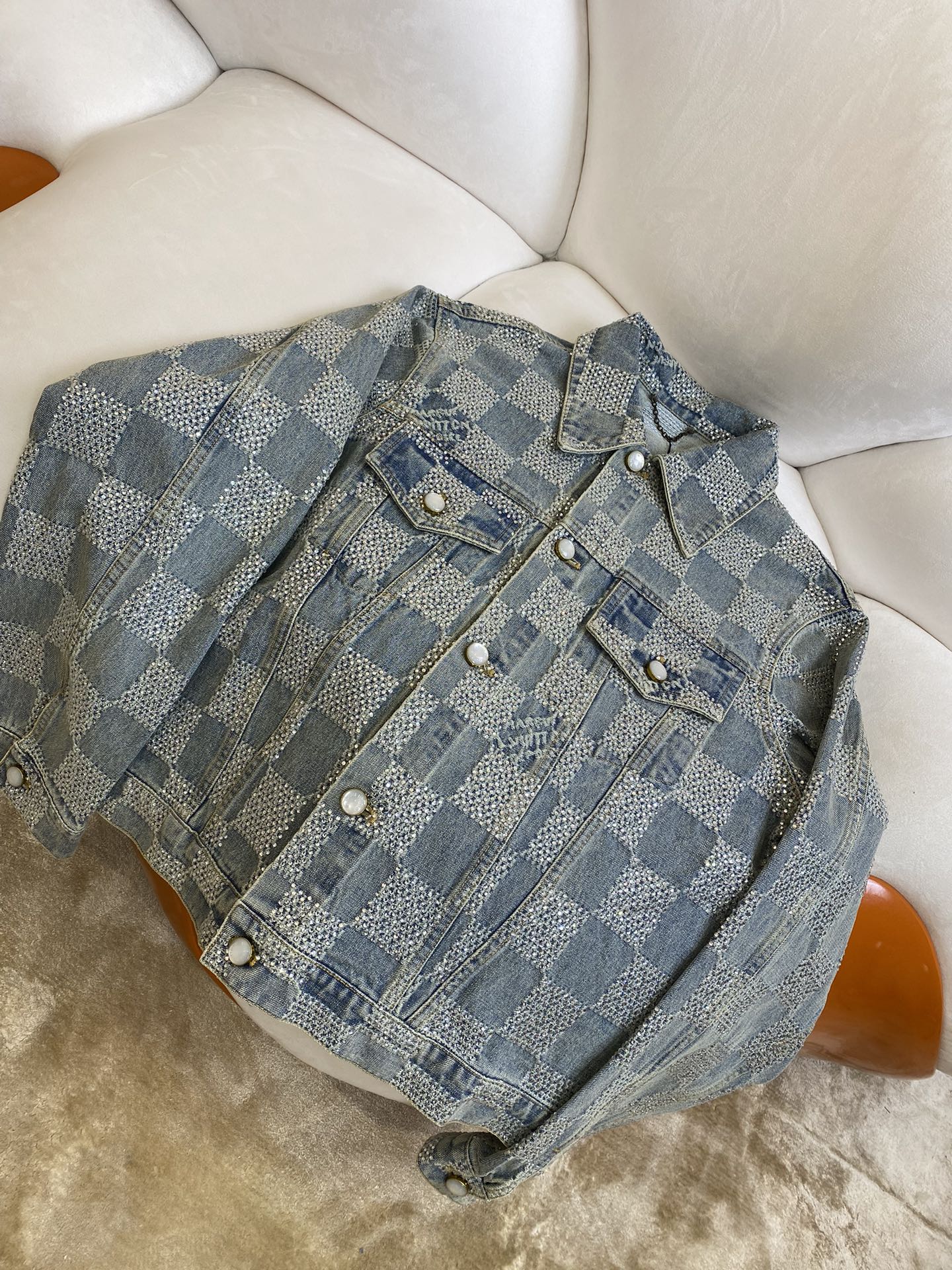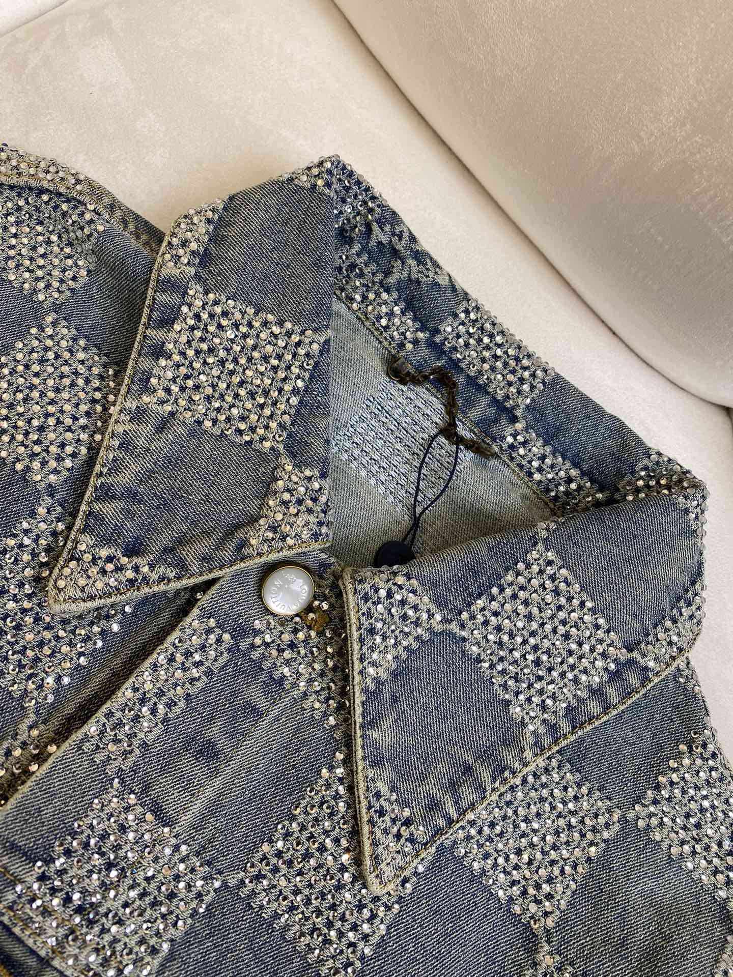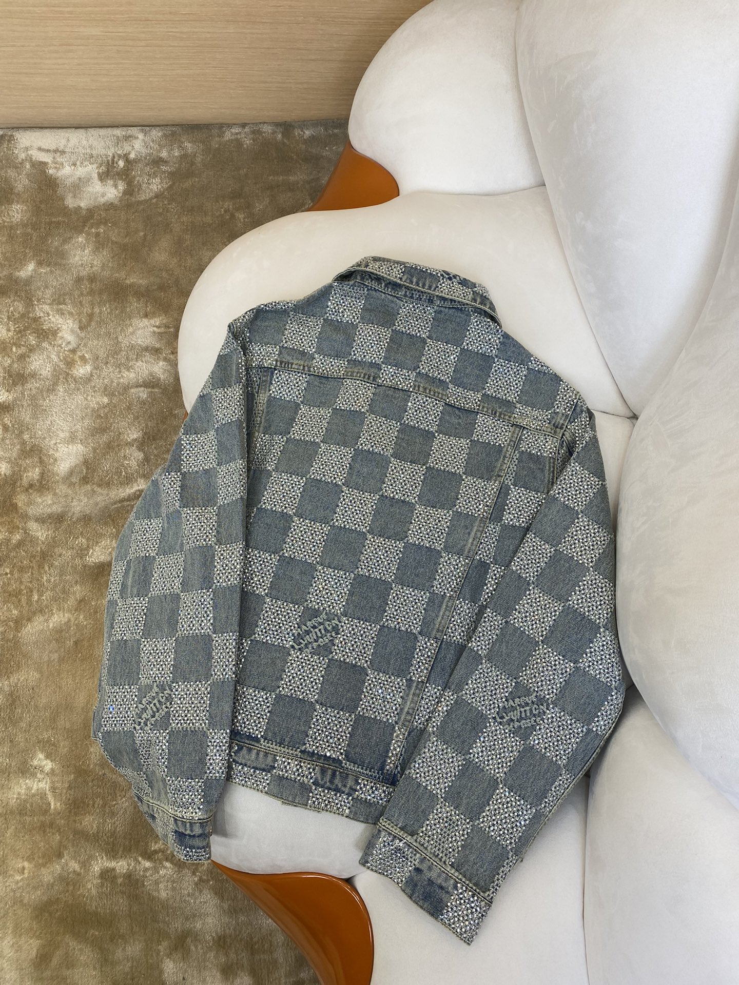 NIGO Louis Vuitton Men's Fall And Winter Mto Embellished Damier Denim Jacket Checkerboard Checkered Jacket With Diamonds Fashionable Versatile Jacket Ngvp #nigo9126