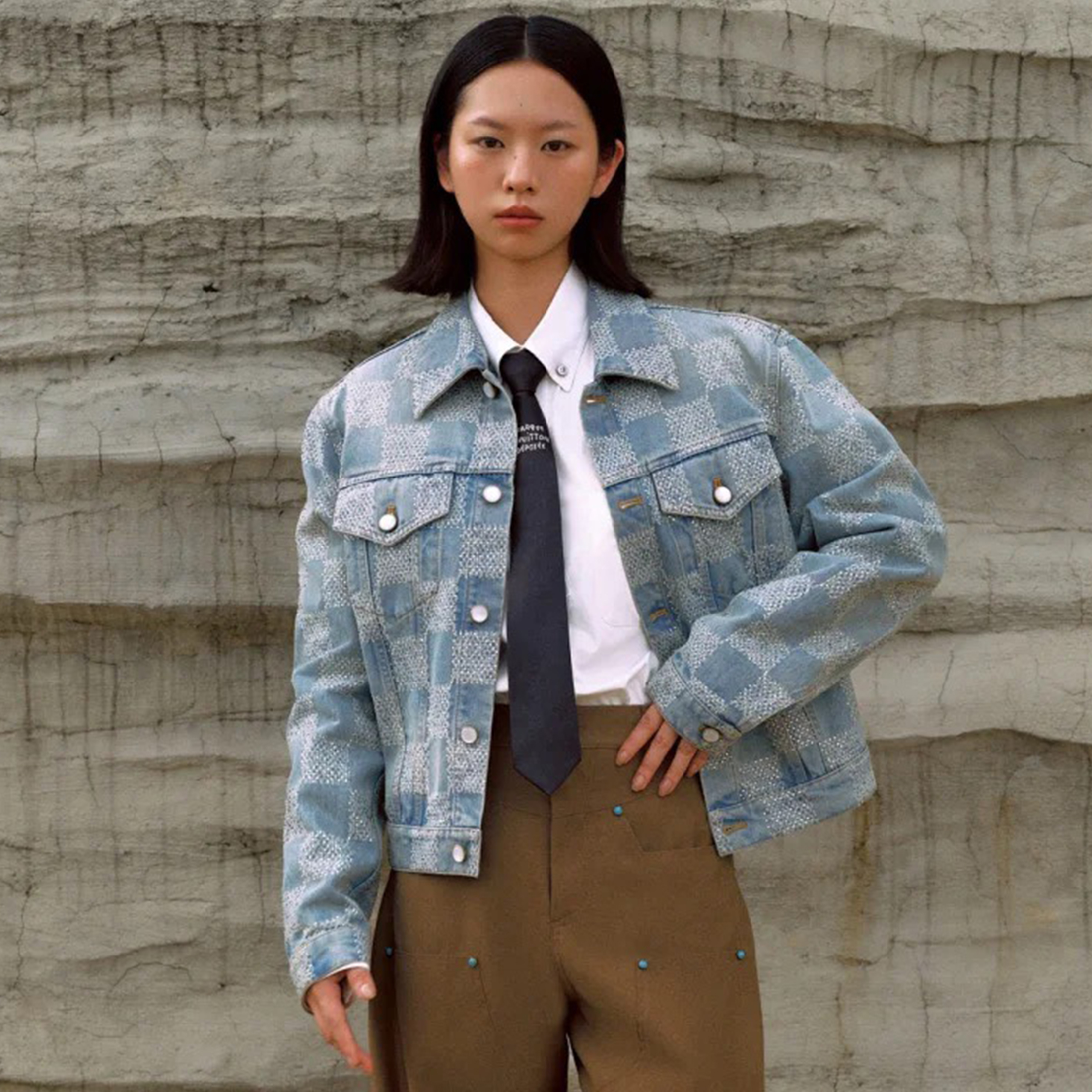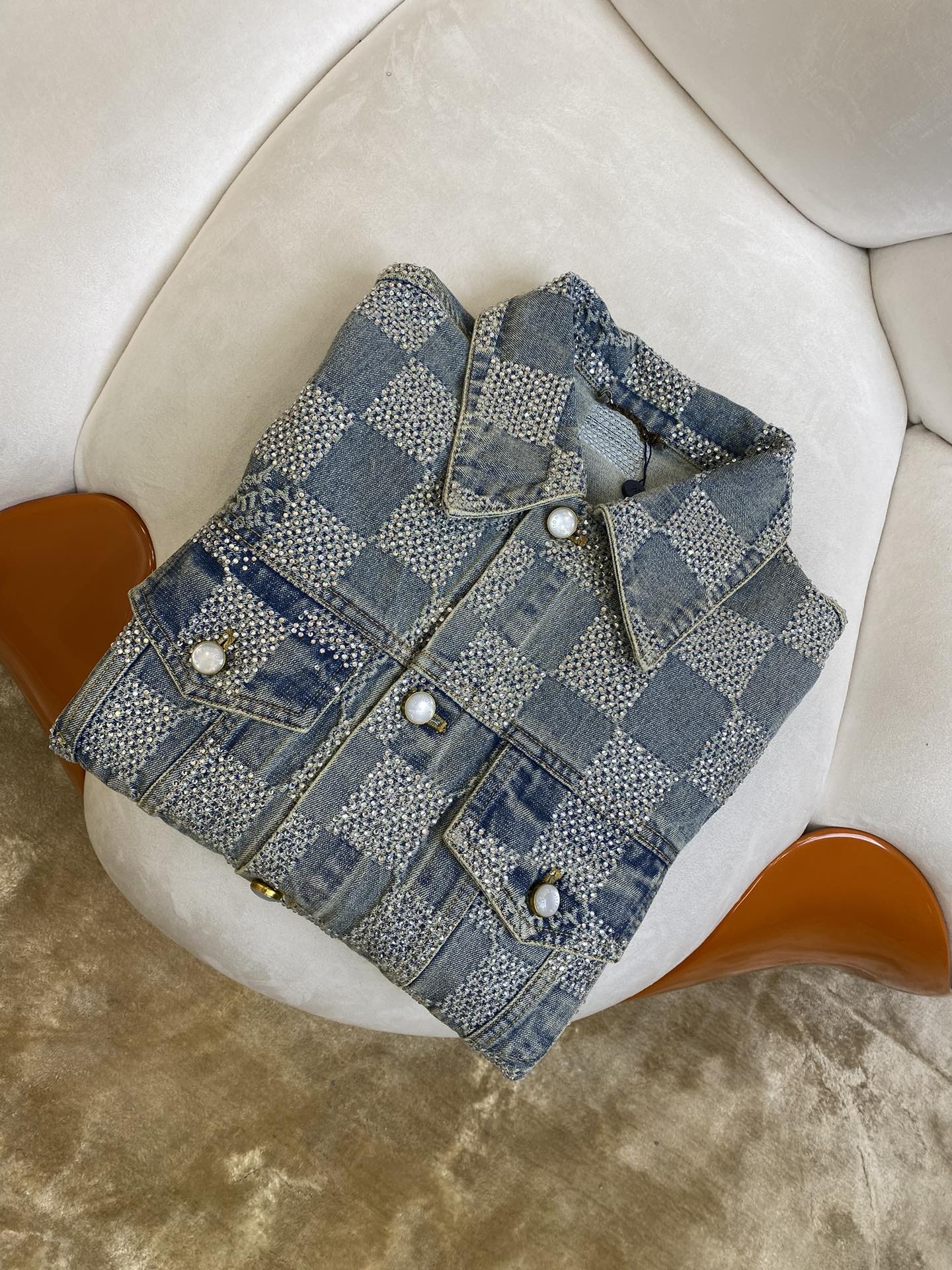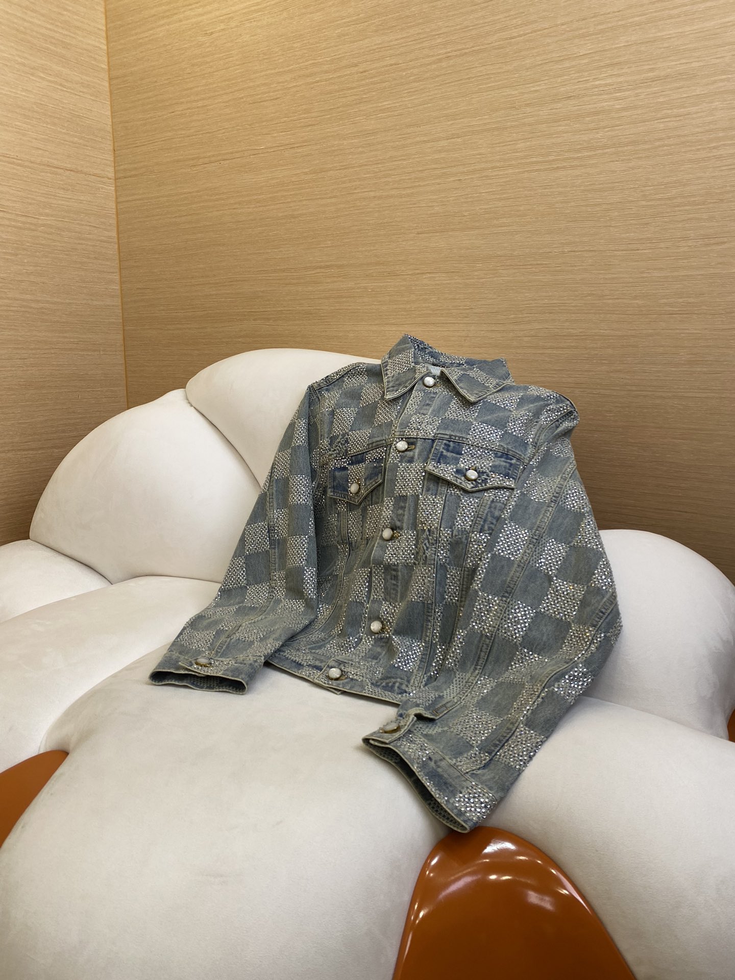 NIGO Louis Vuitton Men's Fall And Winter Mto Embellished Damier Denim Jacket Checkerboard Checkered Jacket With Diamonds Fashionable Versatile Jacket Ngvp #nigo9126