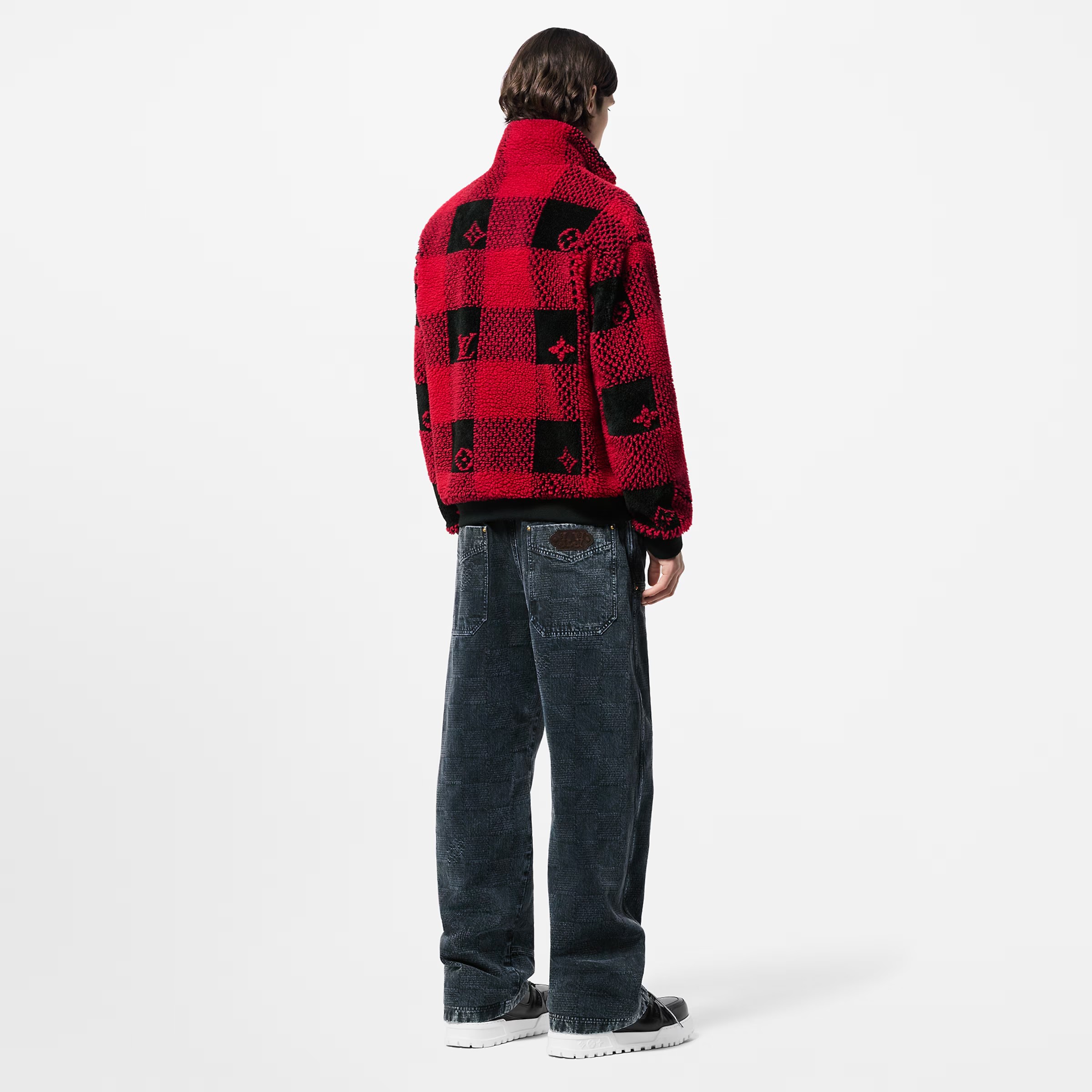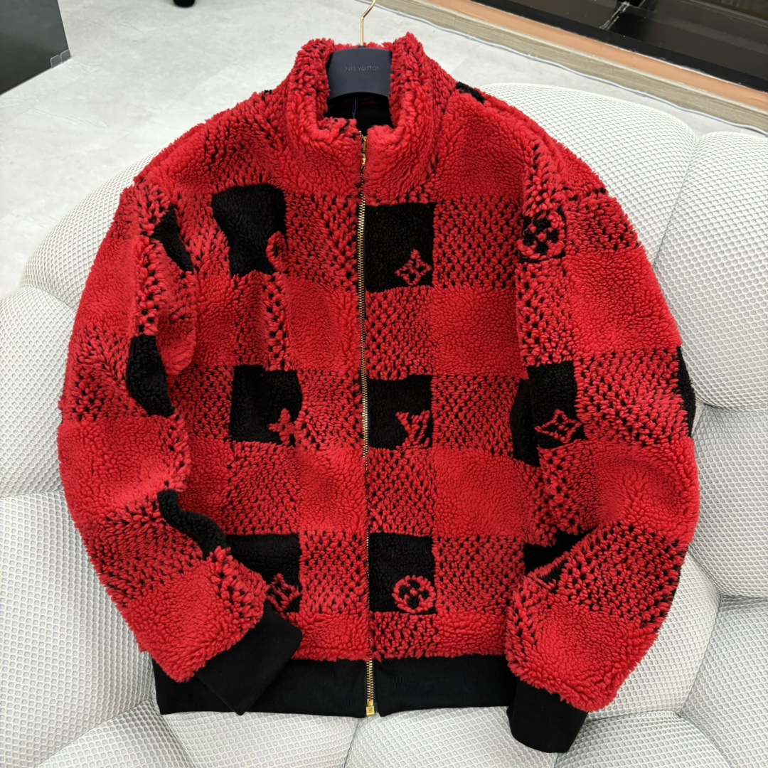 NIGO Louis Vuitton Men's Fall And Winter Plaid Lapel Zipper Fitted Damier Suede Drawstring Long Sleeve Waist Jacket #nigo71538