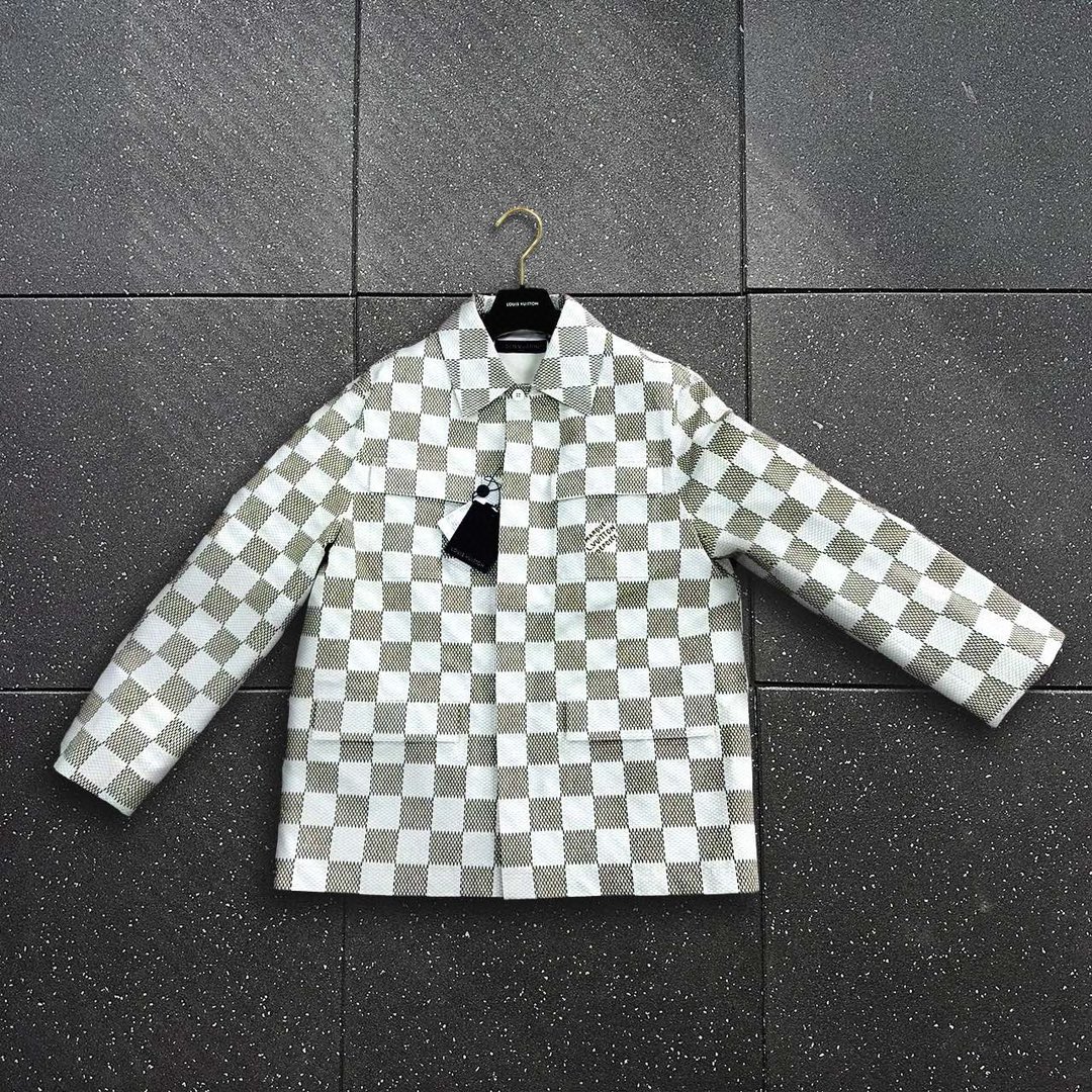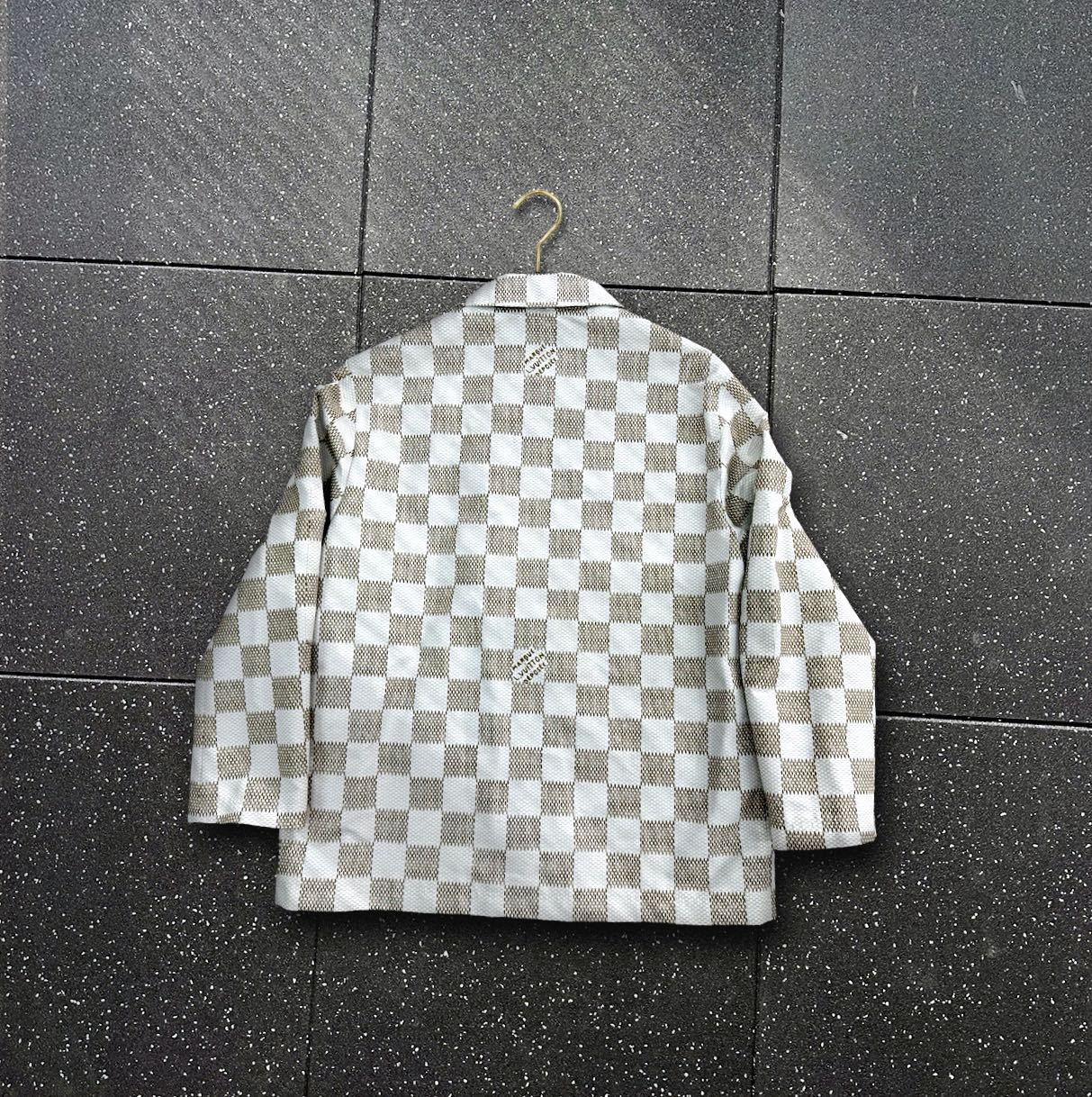 NIGO Louis Vuitton Men's Fall And Winter White Checkered Lapel Single Breasted Pocket Long Sleeved Jacket #nigo72775