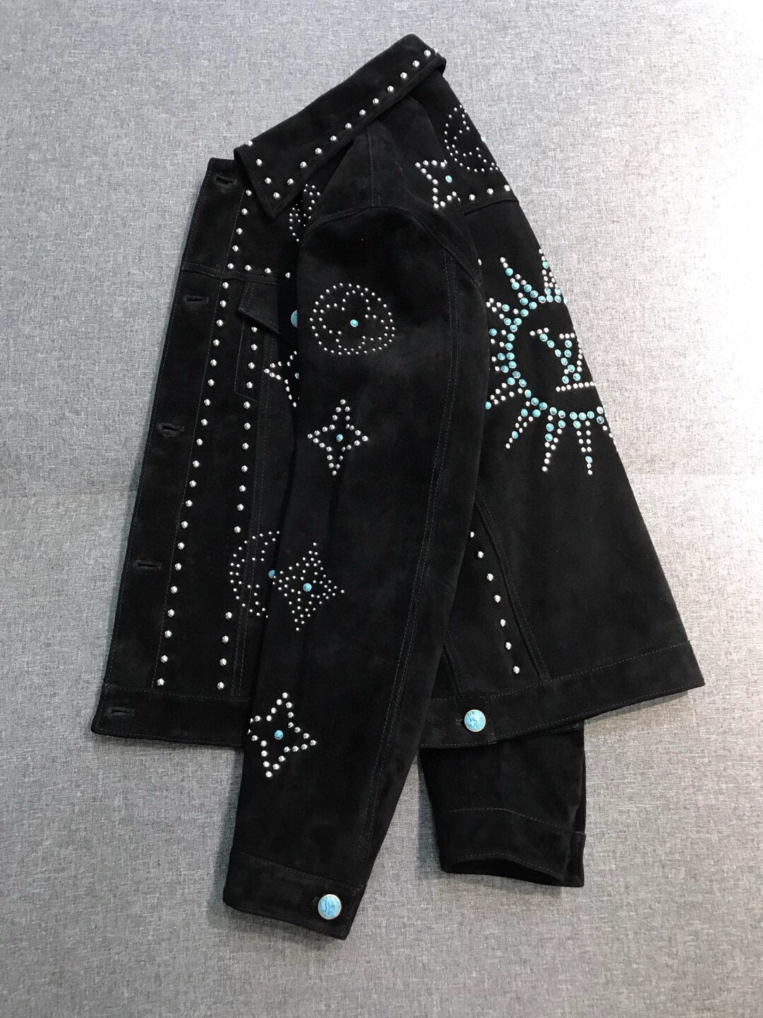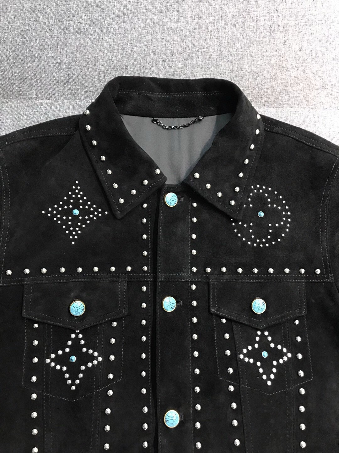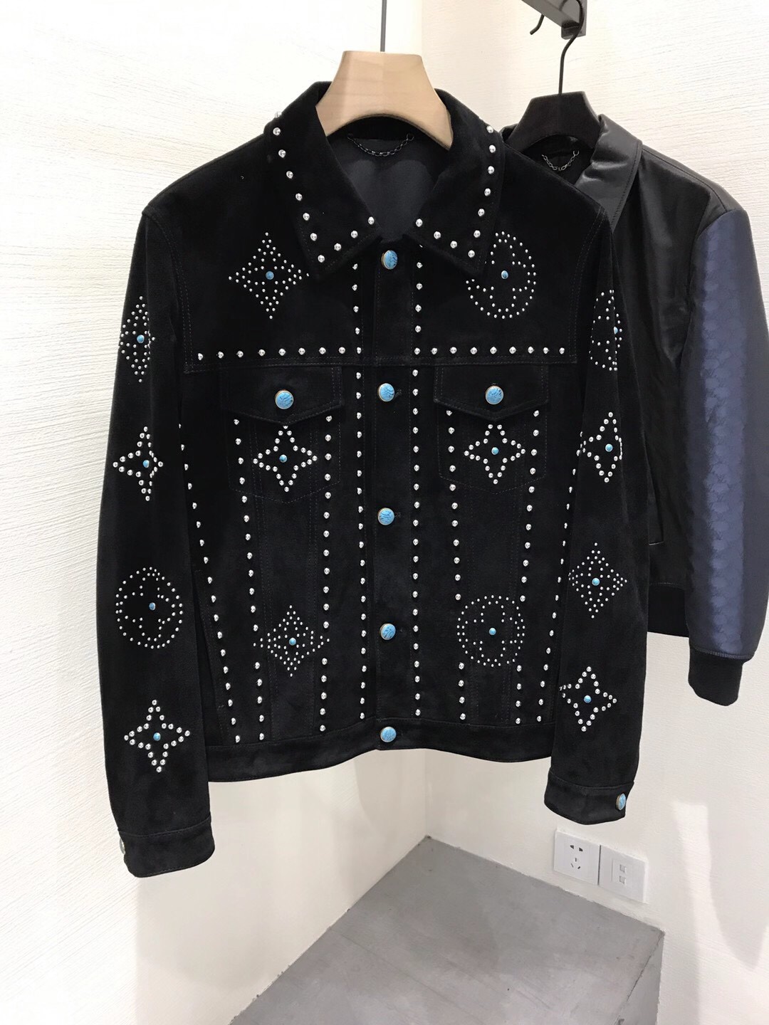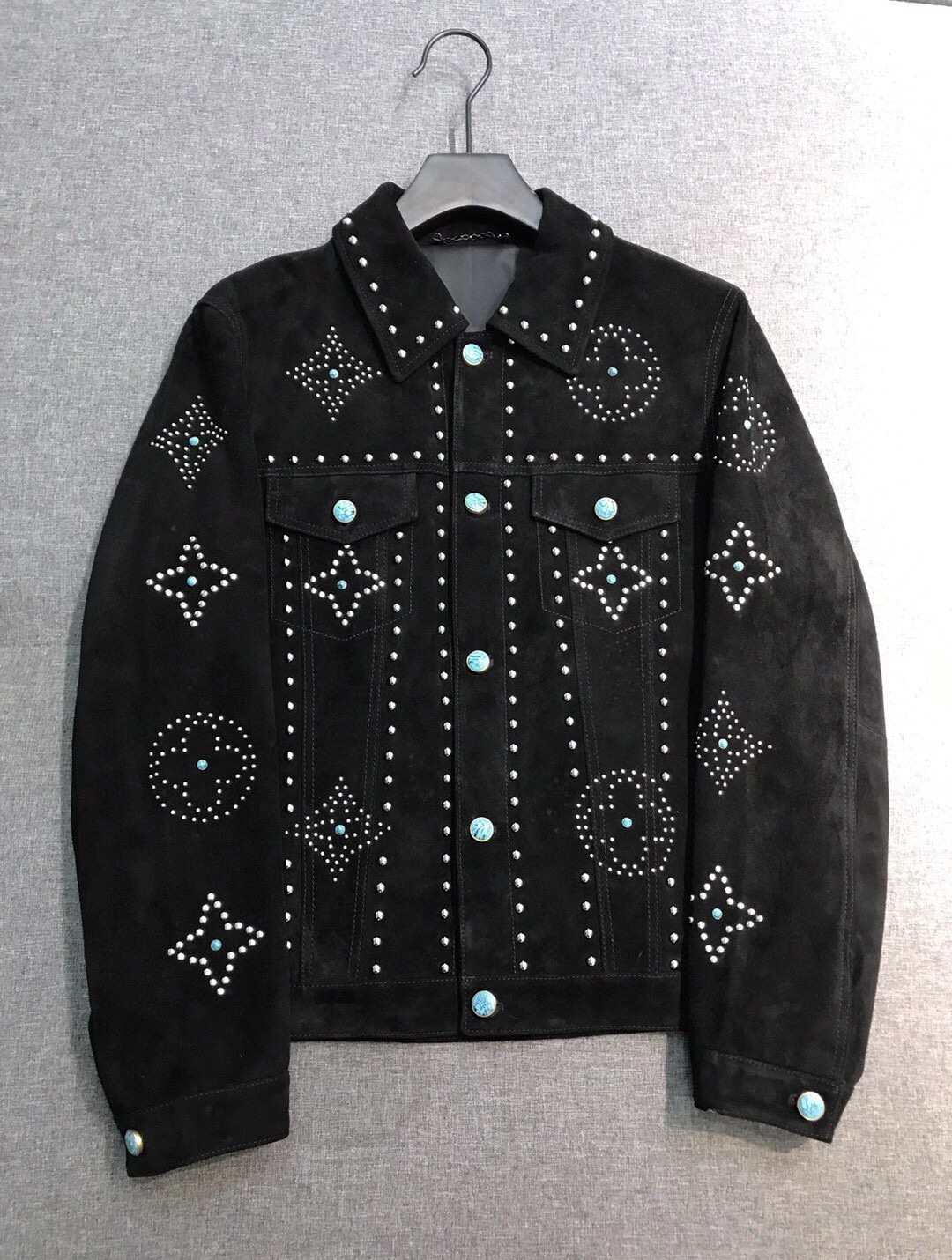NIGO Louis Vuitton Men's Fall/Winter Black Logo Pattern Embroidery Lapel Long Sleeve Denim Jacket #nigo73291