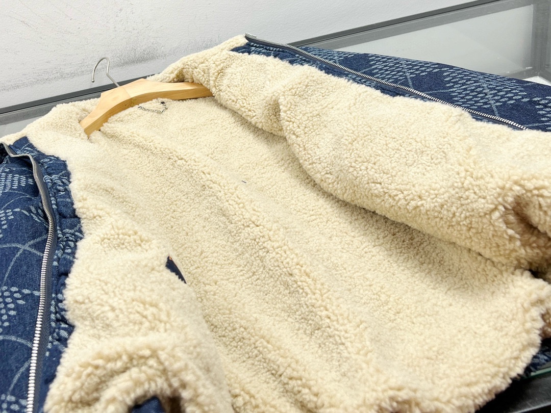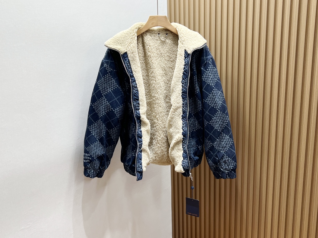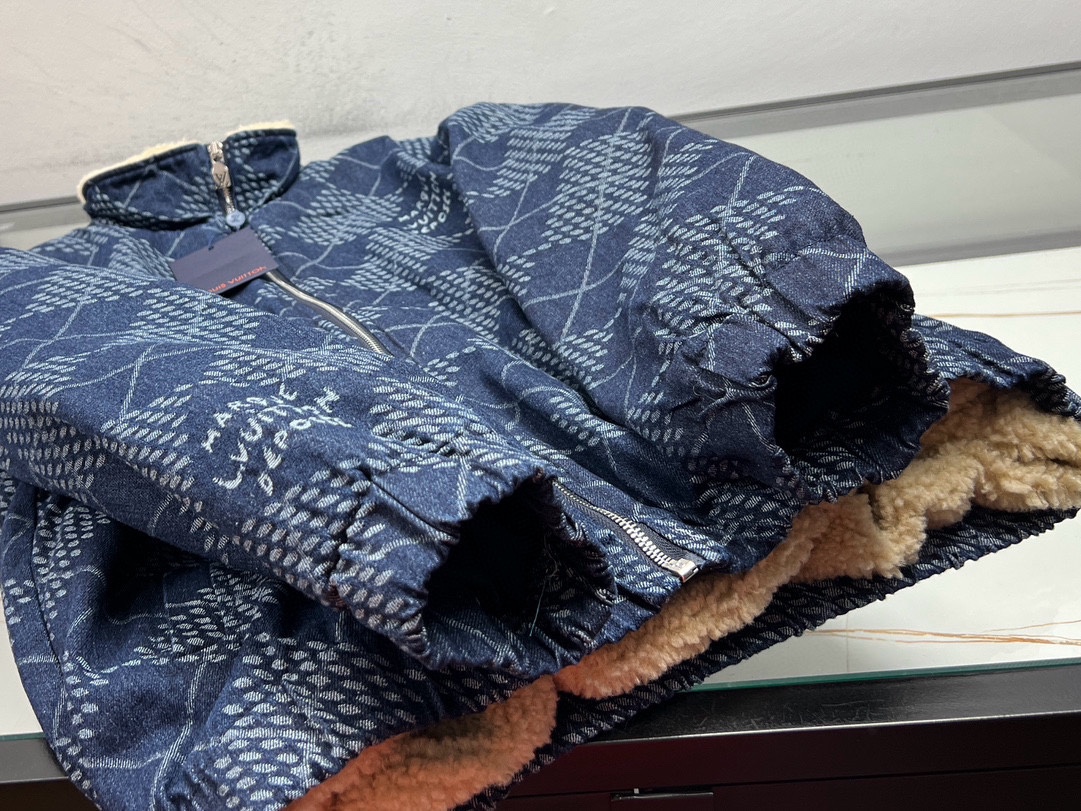 NIGO Louis Vuitton Men's Fall/Winter Blue Checkered Printed Denim Fabric Cashmere Lined Zipper Long Sleeve Jacket #nigo74439