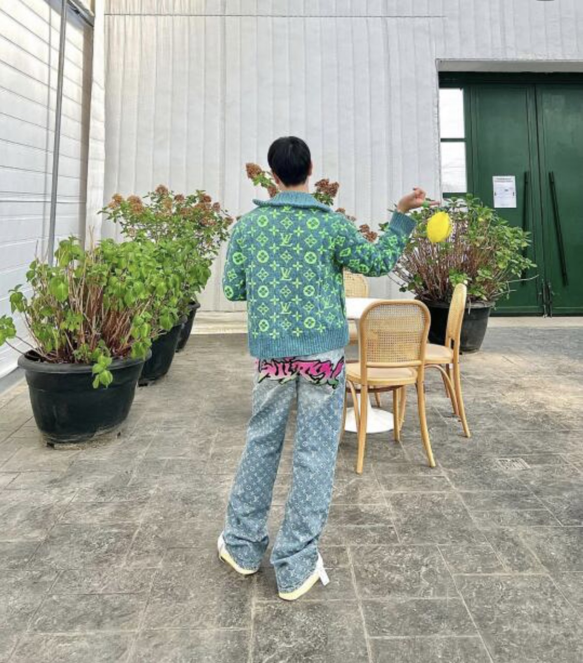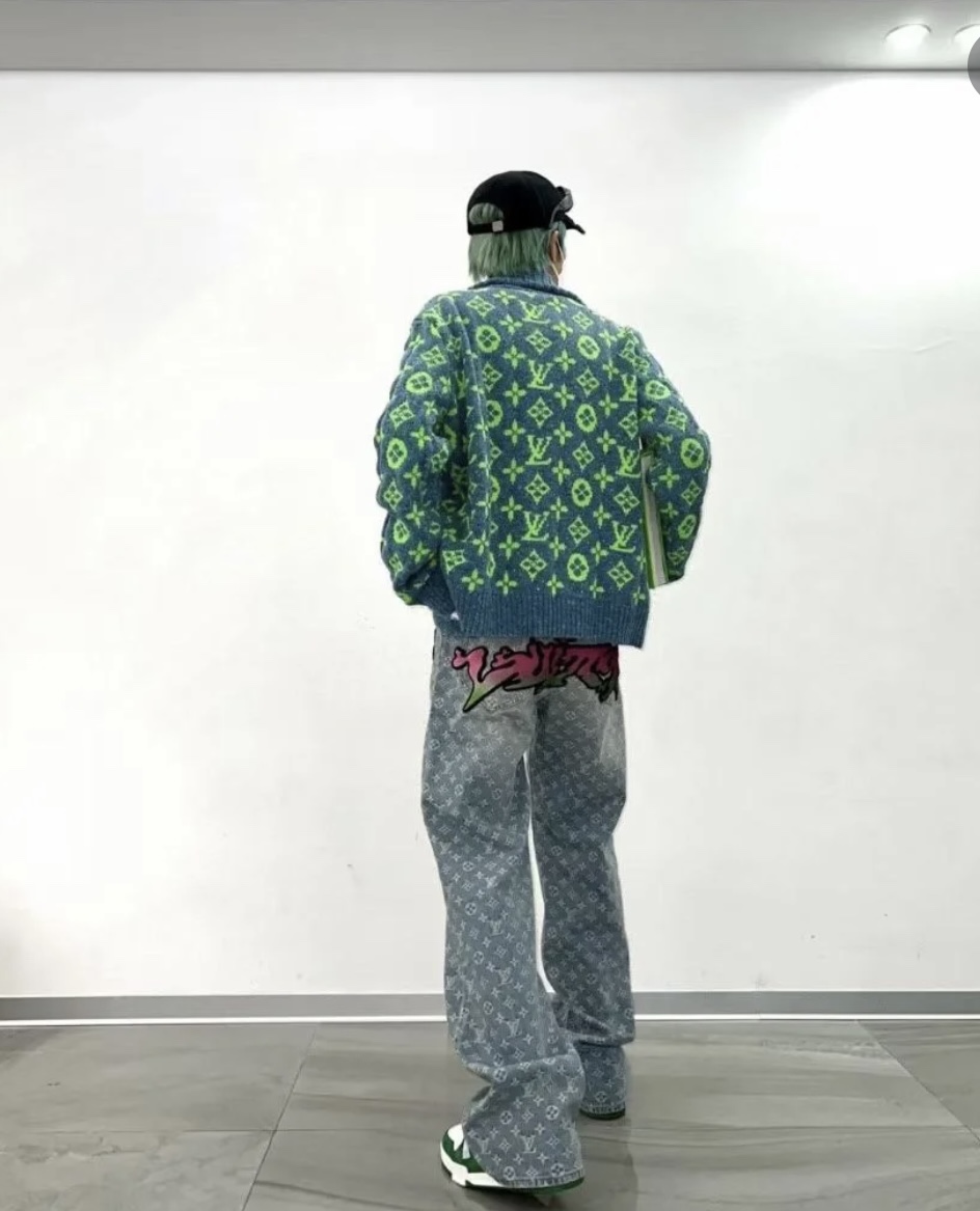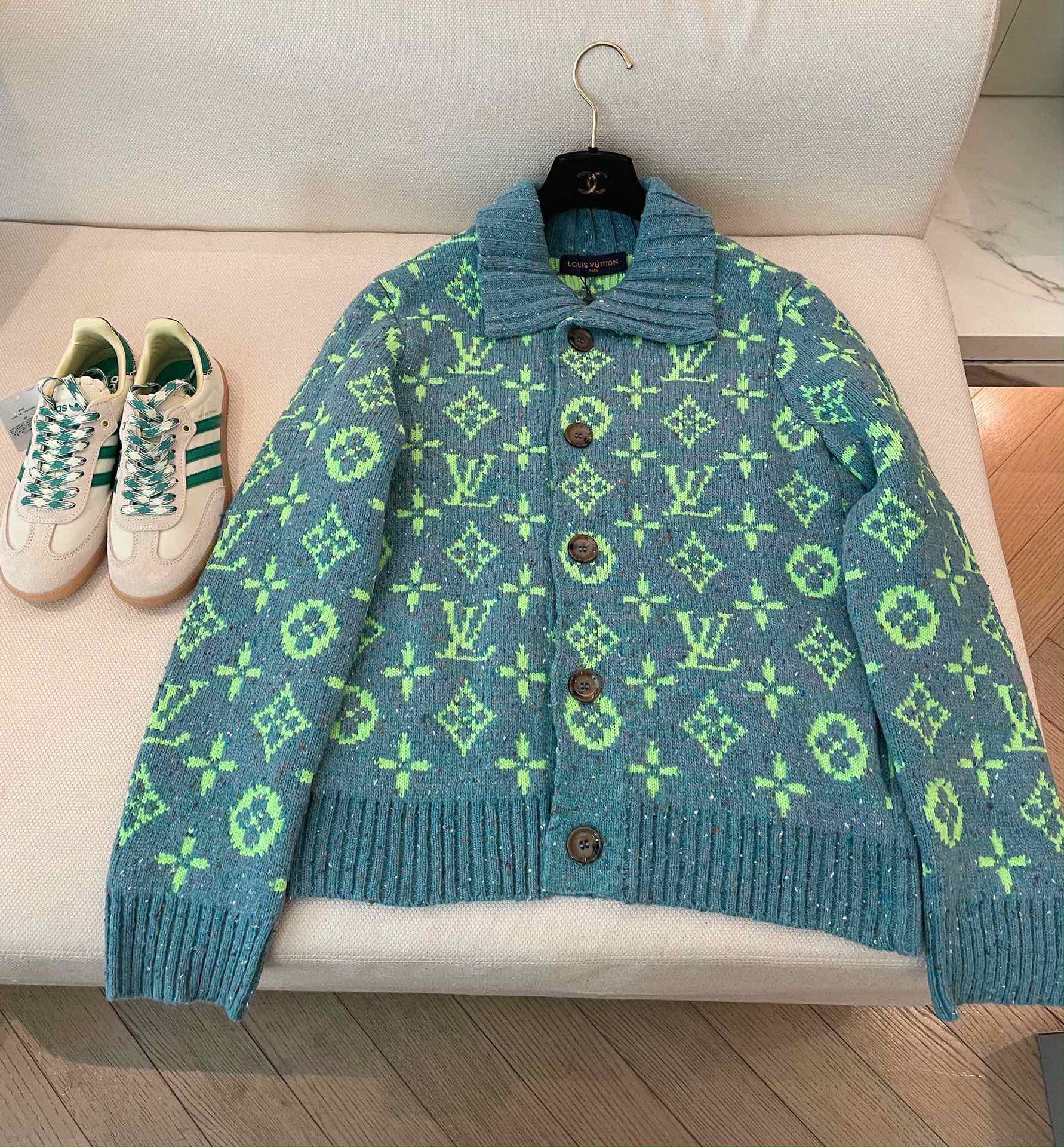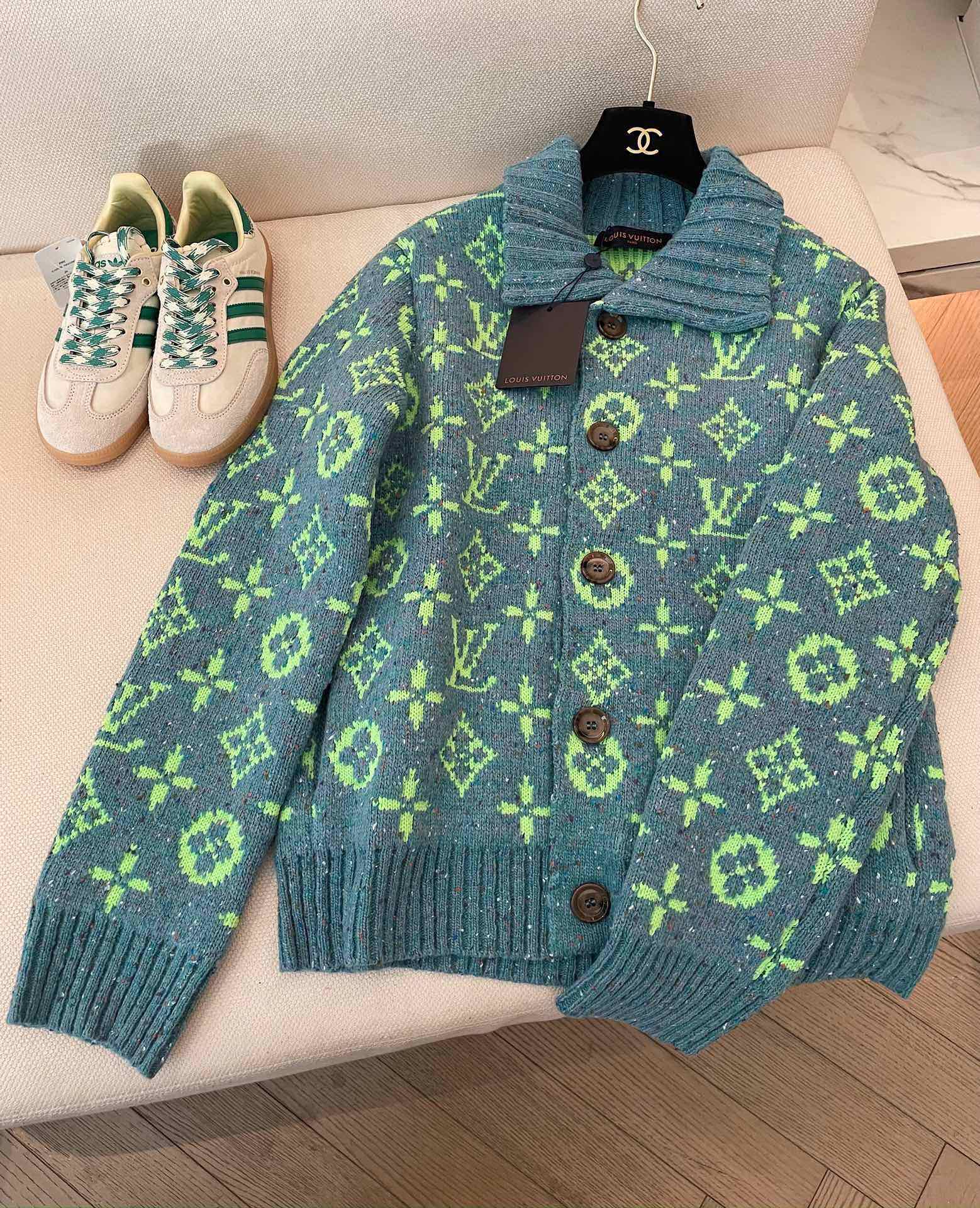 NIGO Louis Vuitton Men's Fall/Winter Green Monogrammed Pattern Knit Single Breasted Sweater Jacket #nigo72785