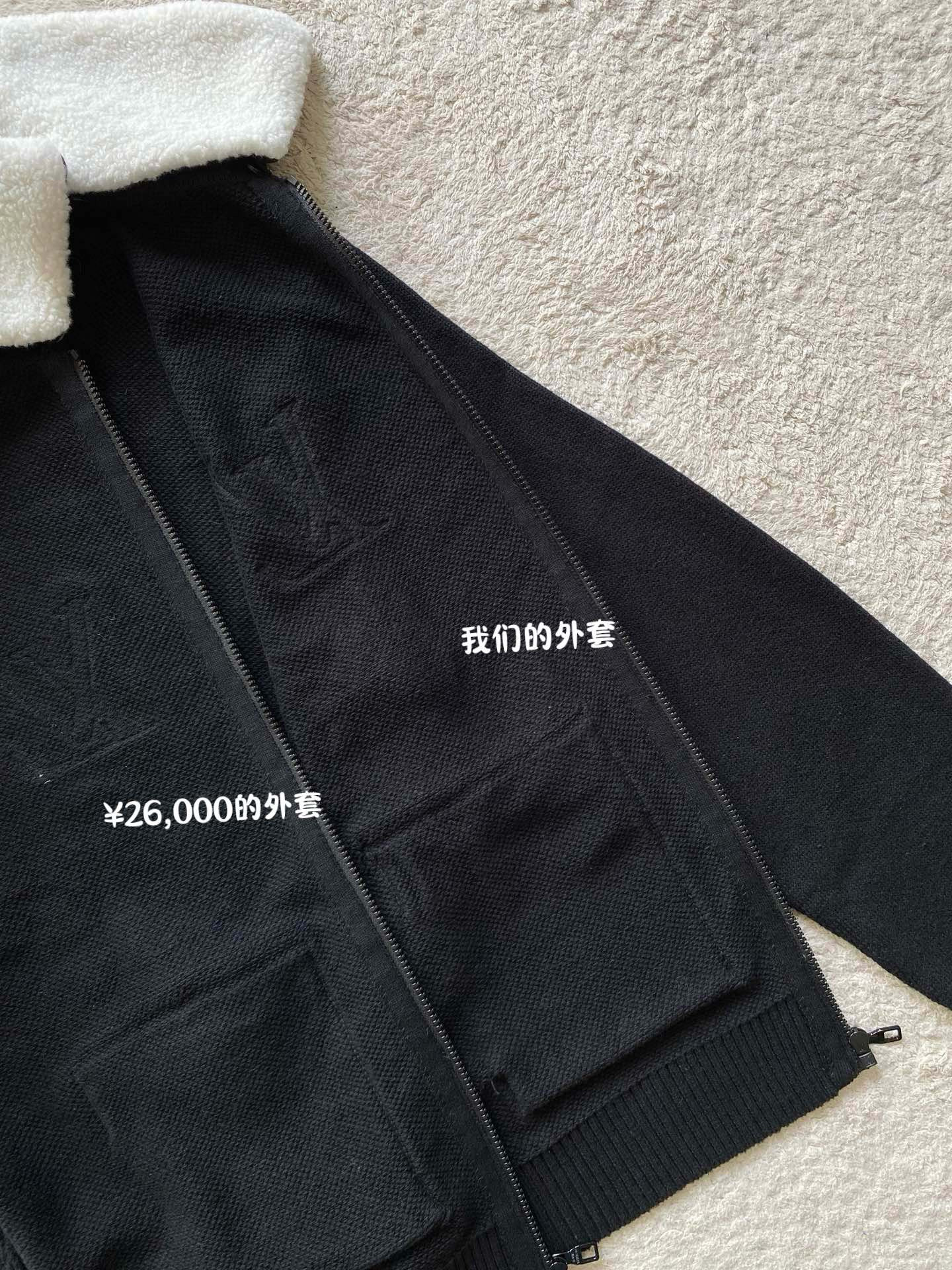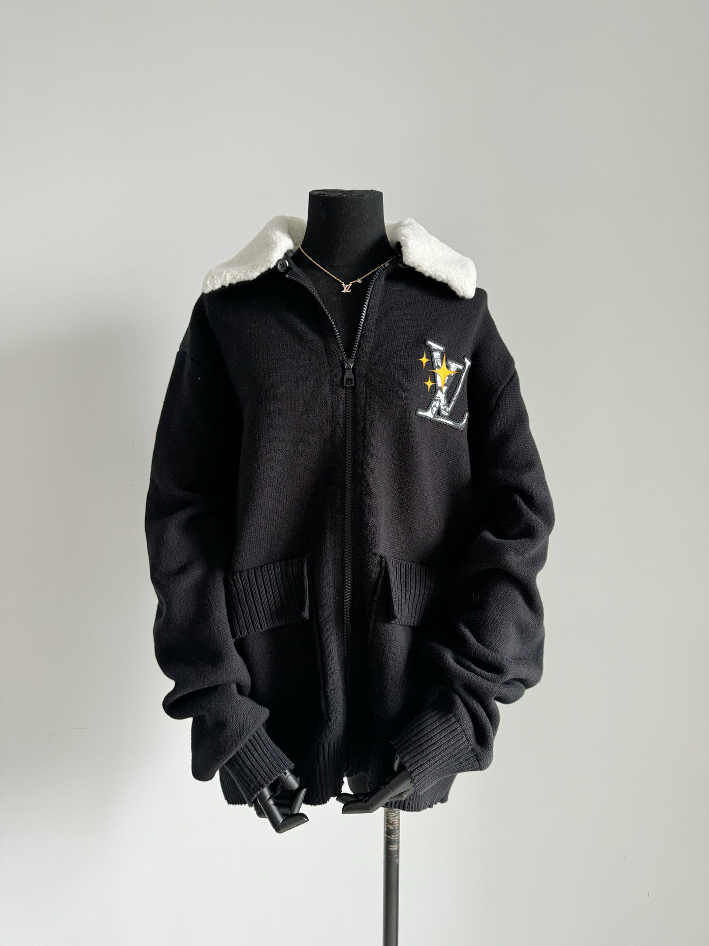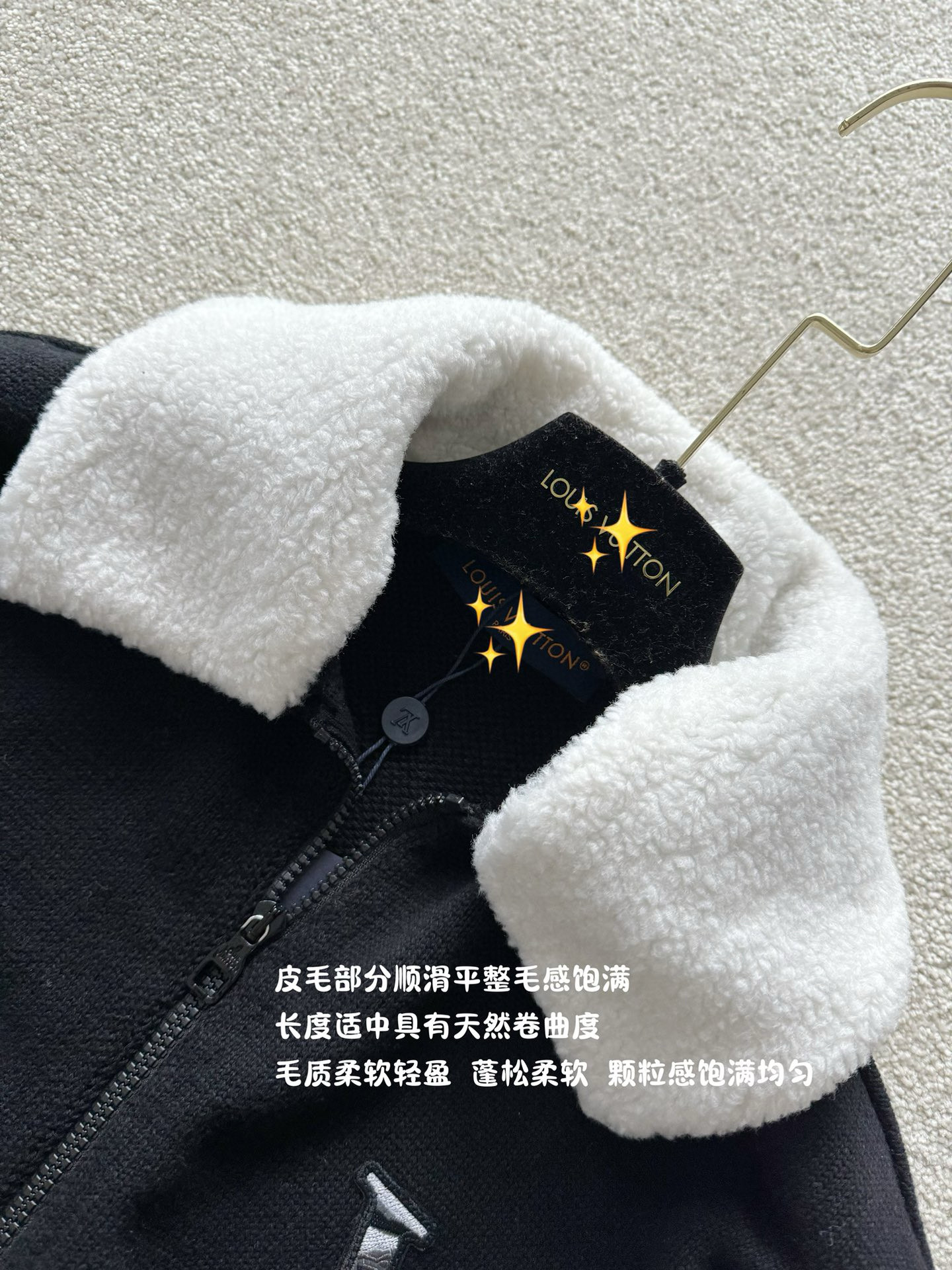 NIGO Louis Vuitton Men's Fall/Winter Wool Blouson With Shearling Collar Black Logo Pattern Jacquard Lapel Sheep Zipper Jacket #nigo98114