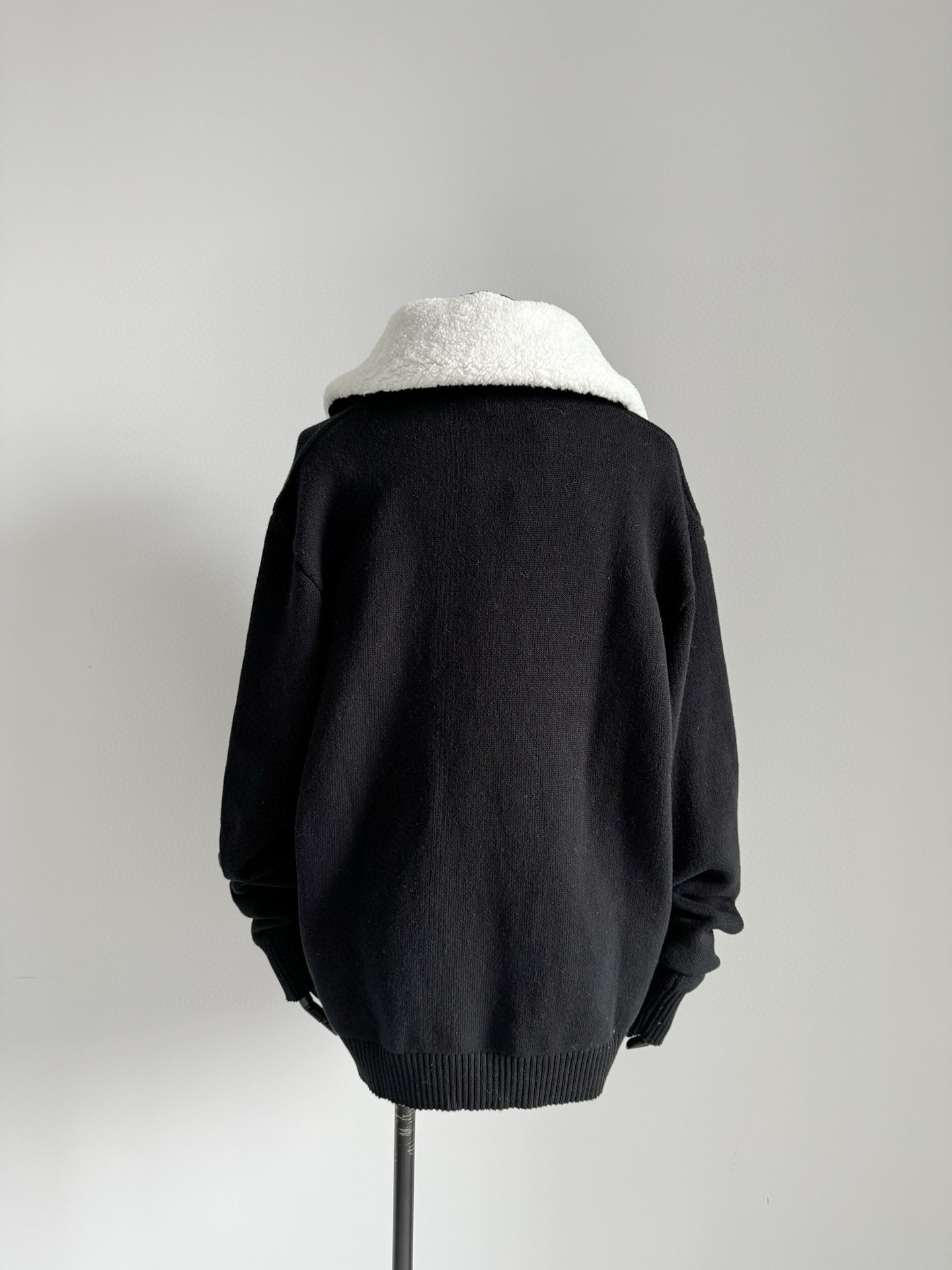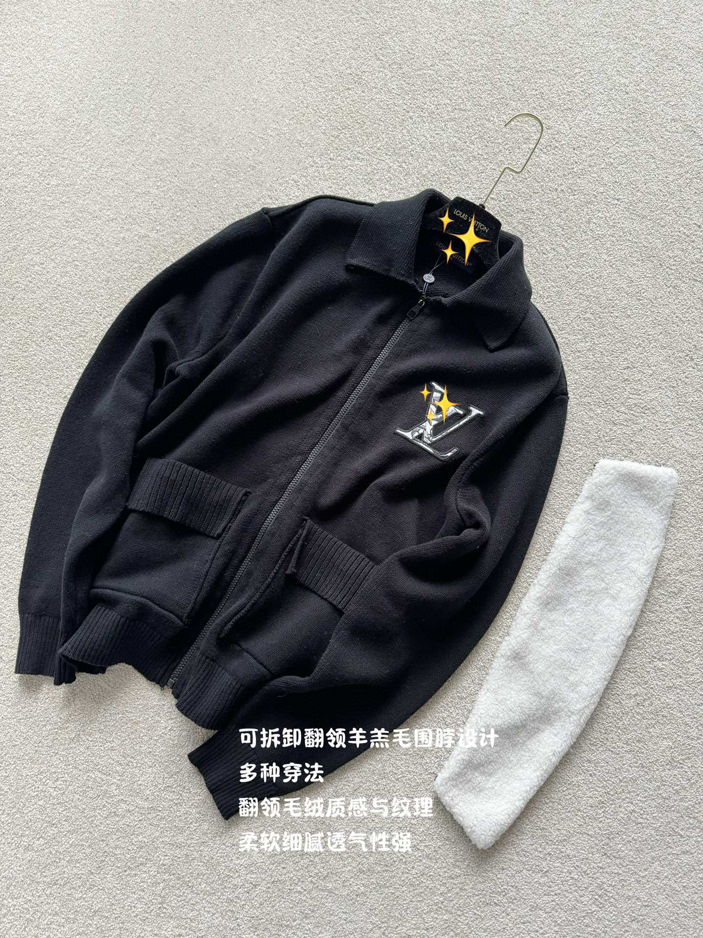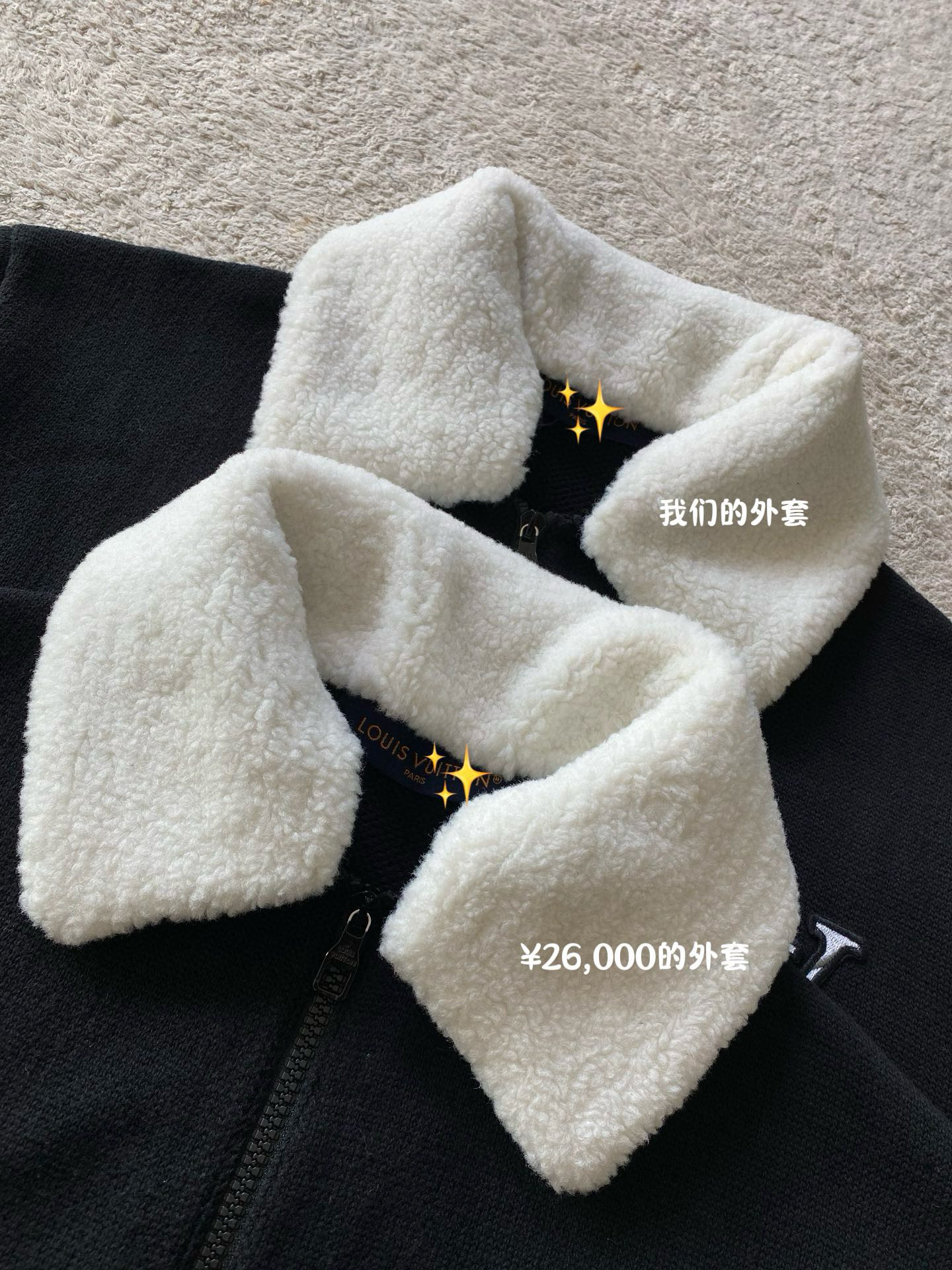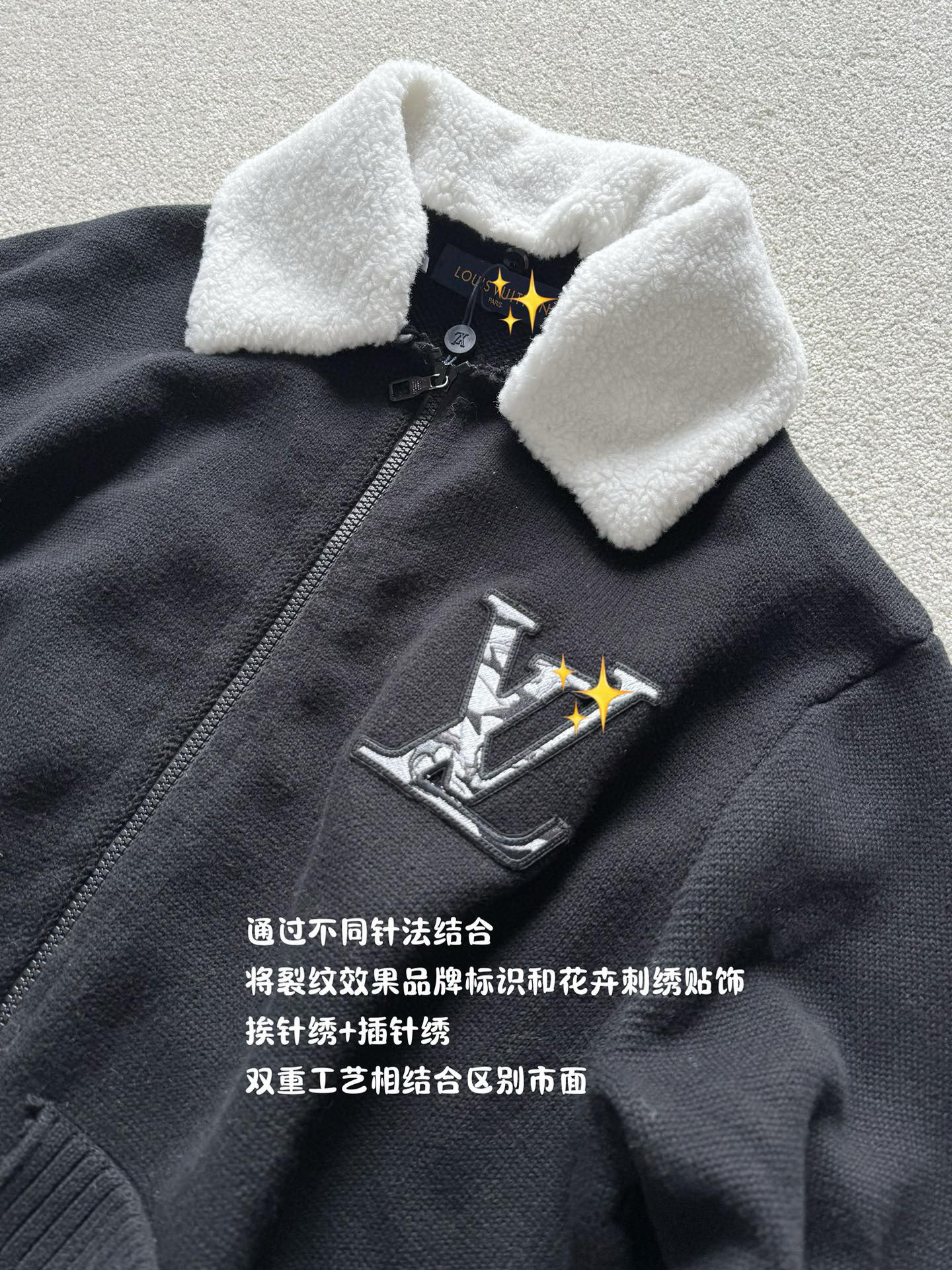 NIGO Louis Vuitton Men's Fall/Winter Wool Blouson With Shearling Collar Black Logo Pattern Jacquard Lapel Sheep Zipper Jacket #nigo98114
