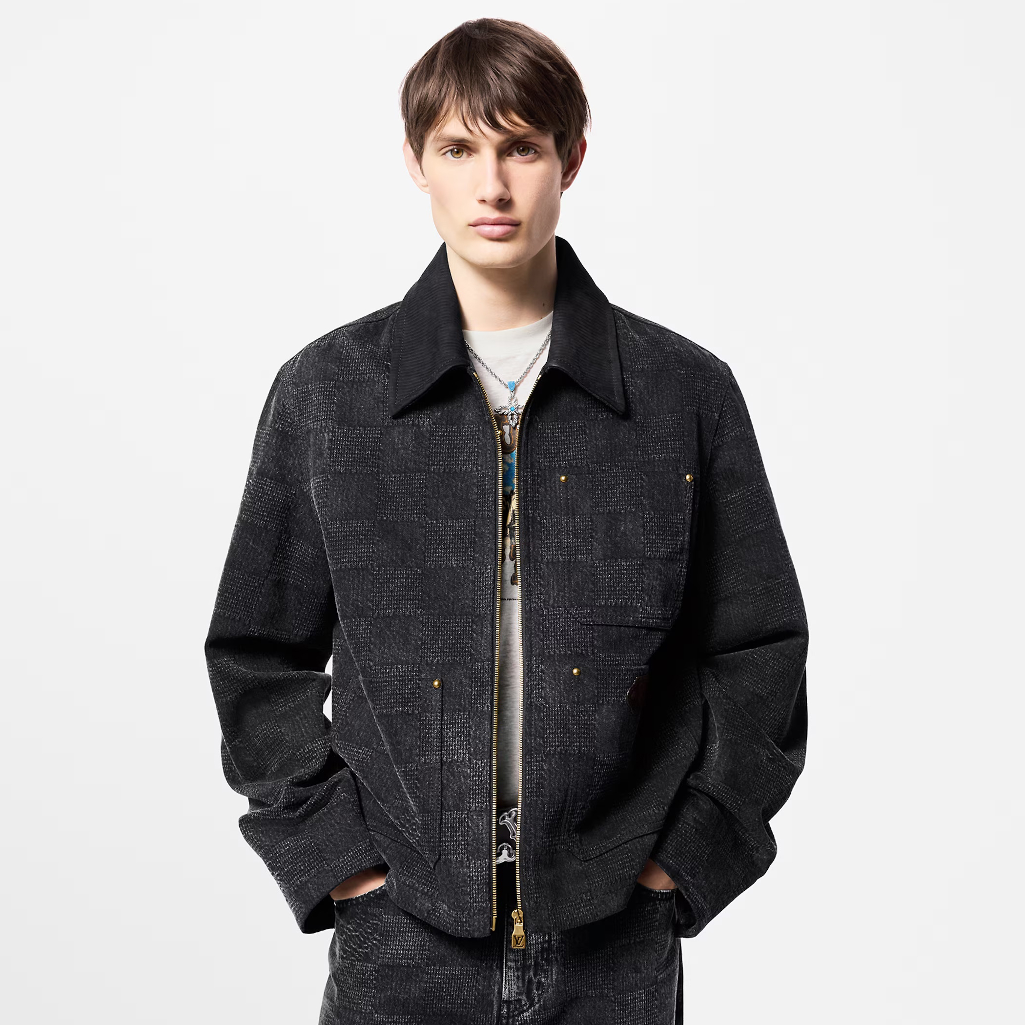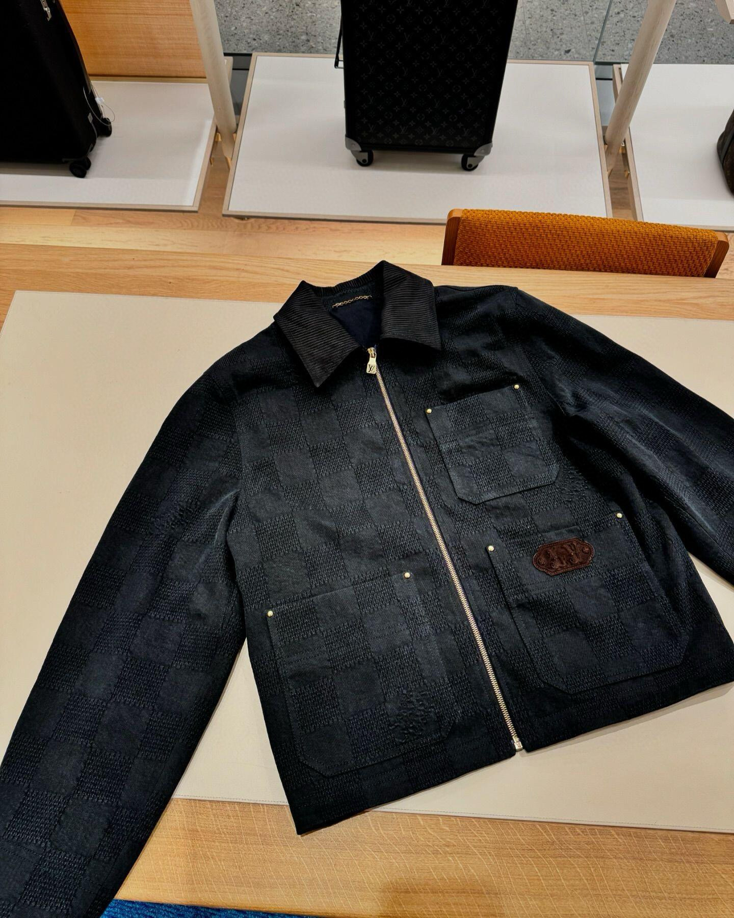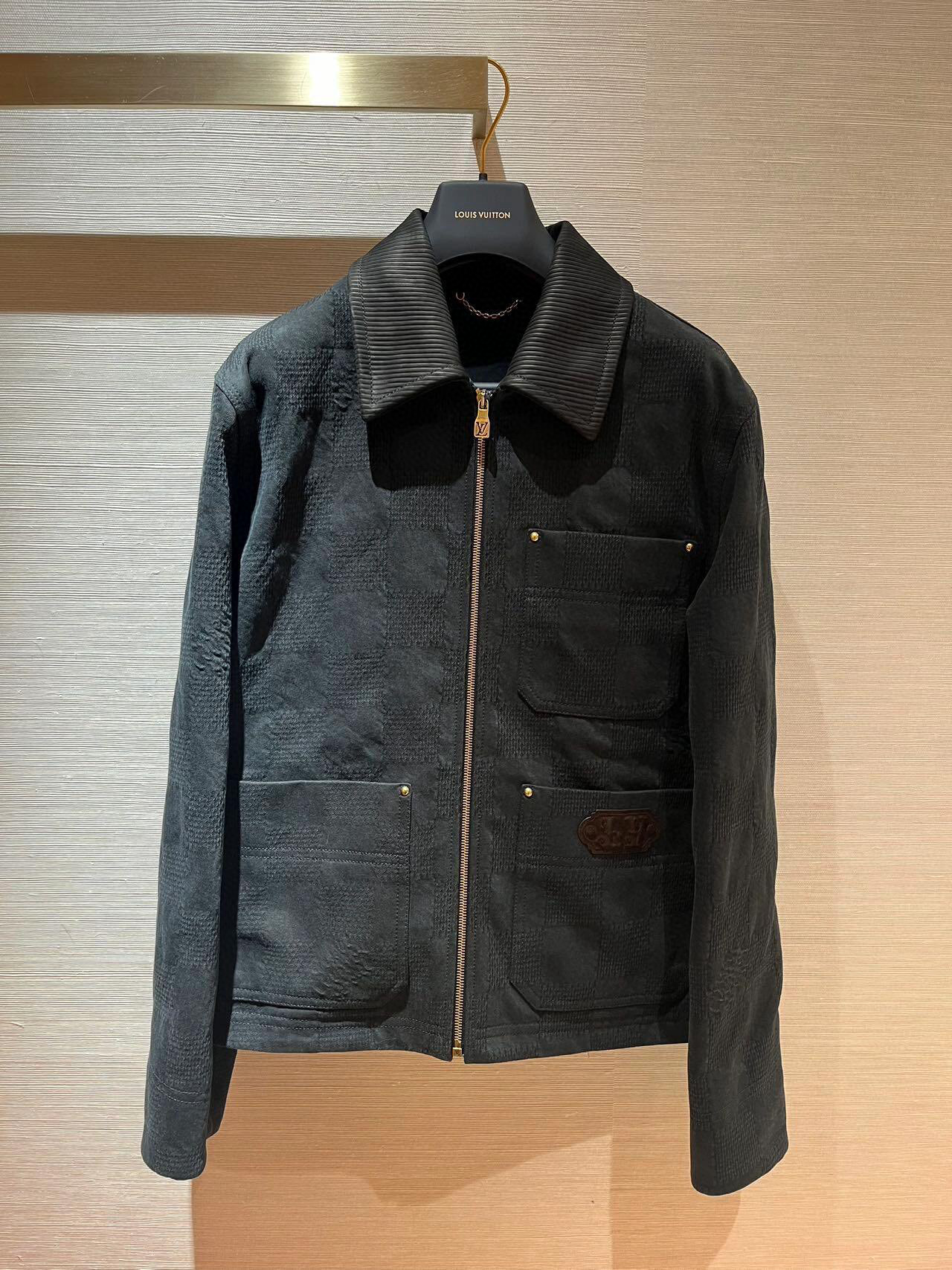 NIGO Louis Vuitton Men's Spring and Fall Black Embossed Pattern Spliced Zipper Long Sleeve Jacket #nigo74969