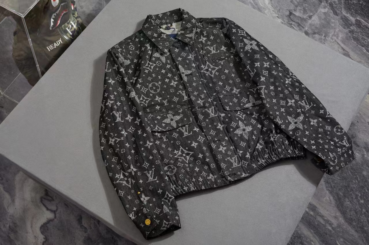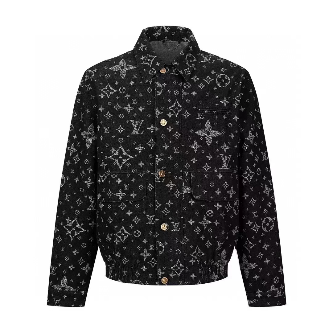 NIGO Louis Vuitton Men's Spring And Fall Logo Full Print Single-Breasted Lapel Long-Sleeved Black Denim Jacket Jacket #nigo98262