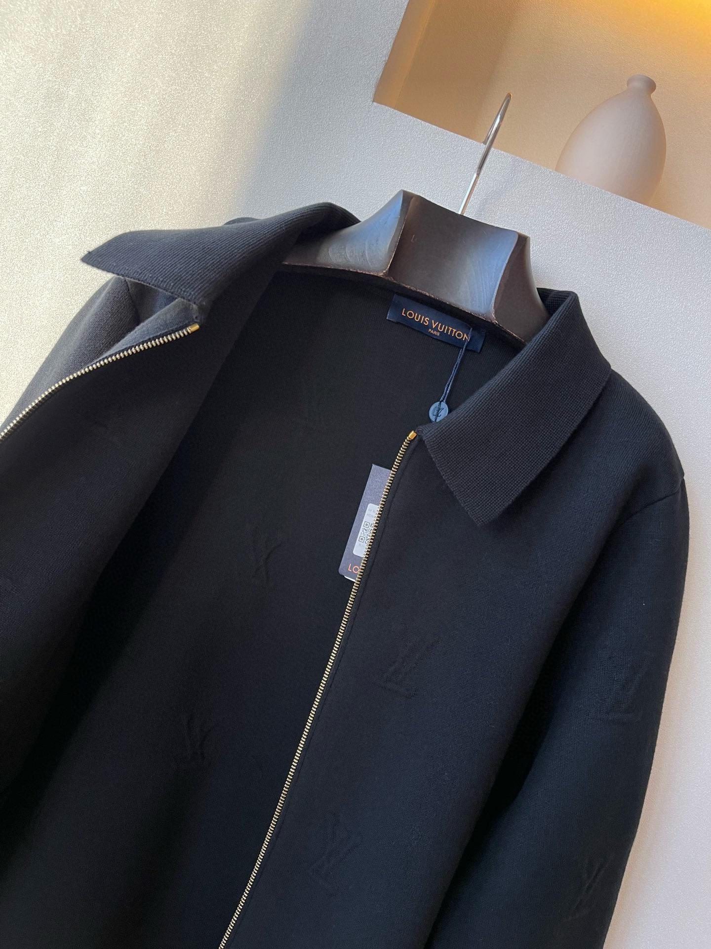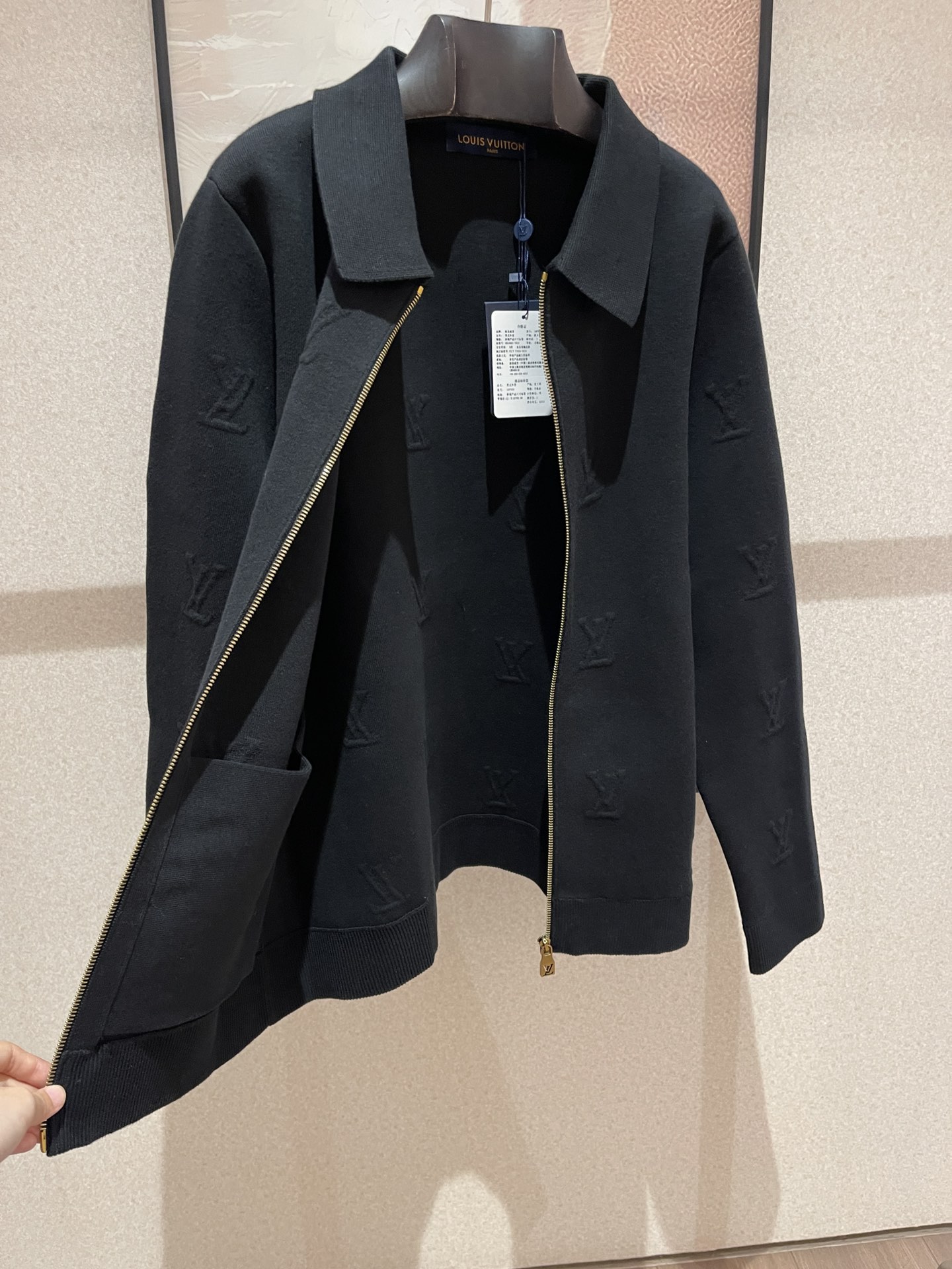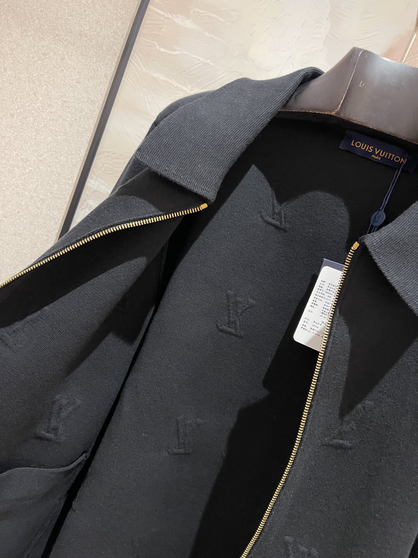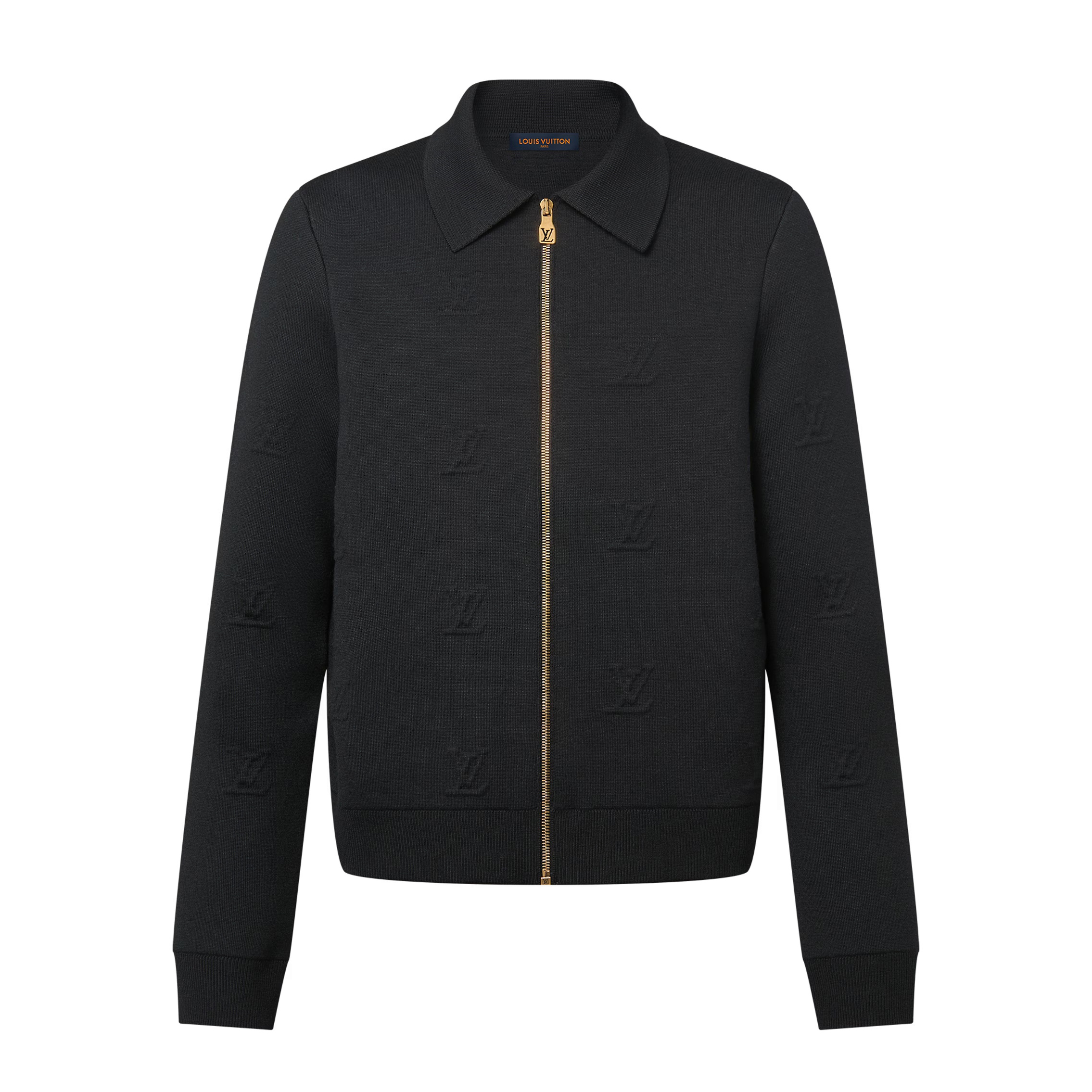 NIGO Louis Vuitton Men's Spring/Autumn Black Logo Embossed Pattern Sheep Wool Zipper Long Sleeve Jacket #nigo74112
