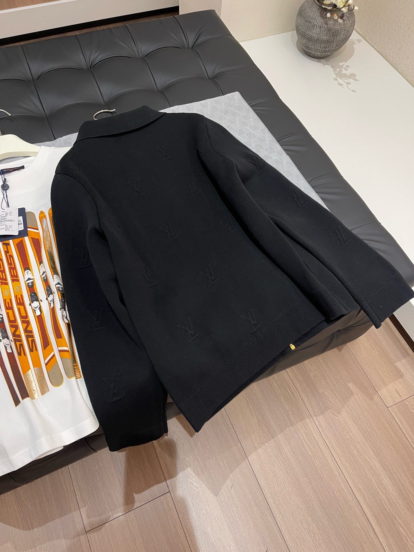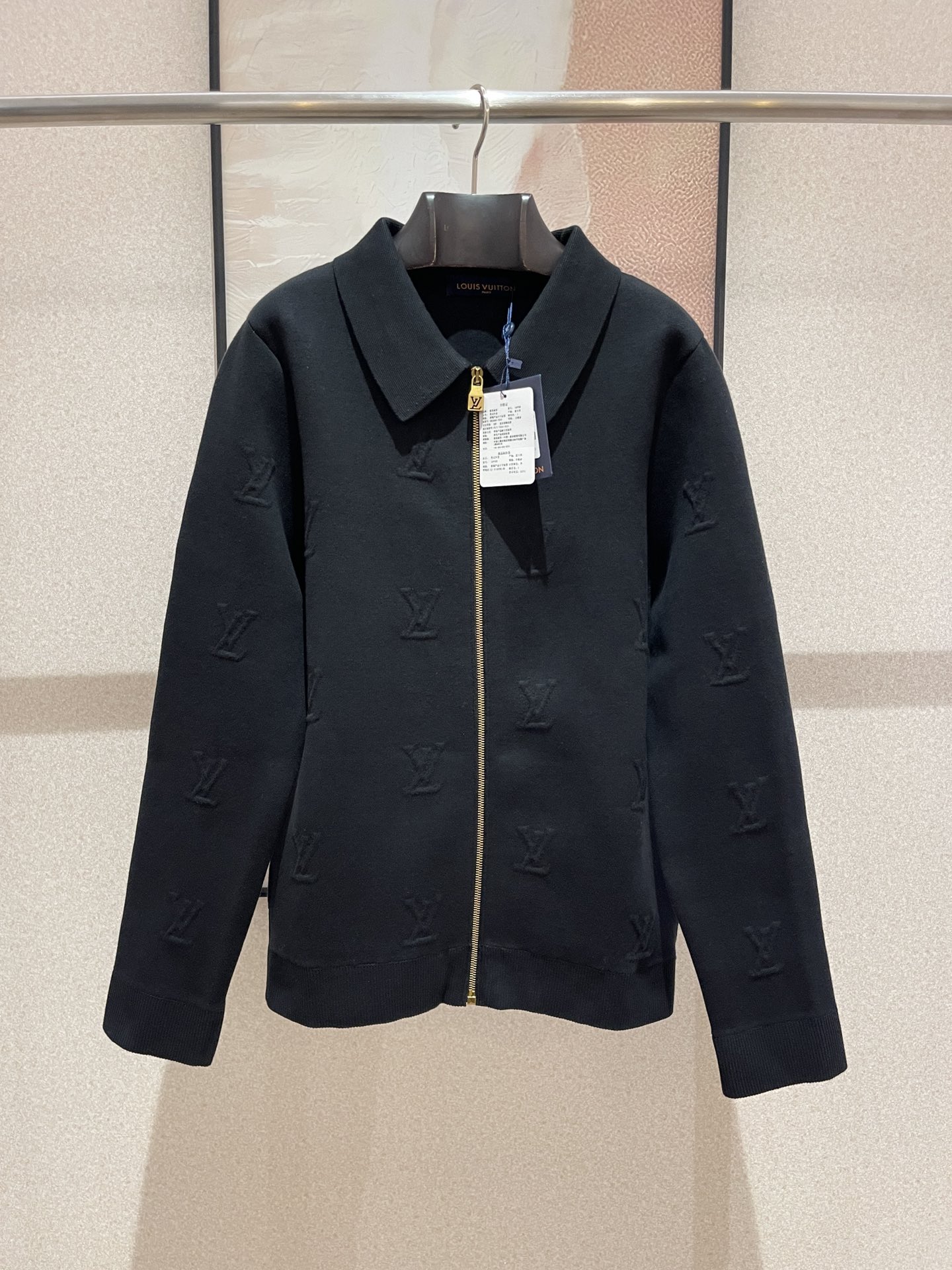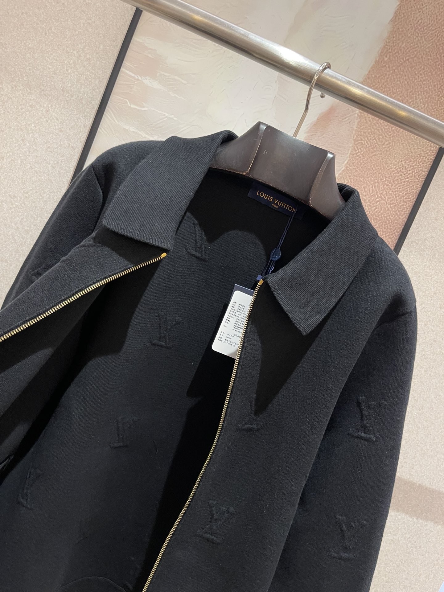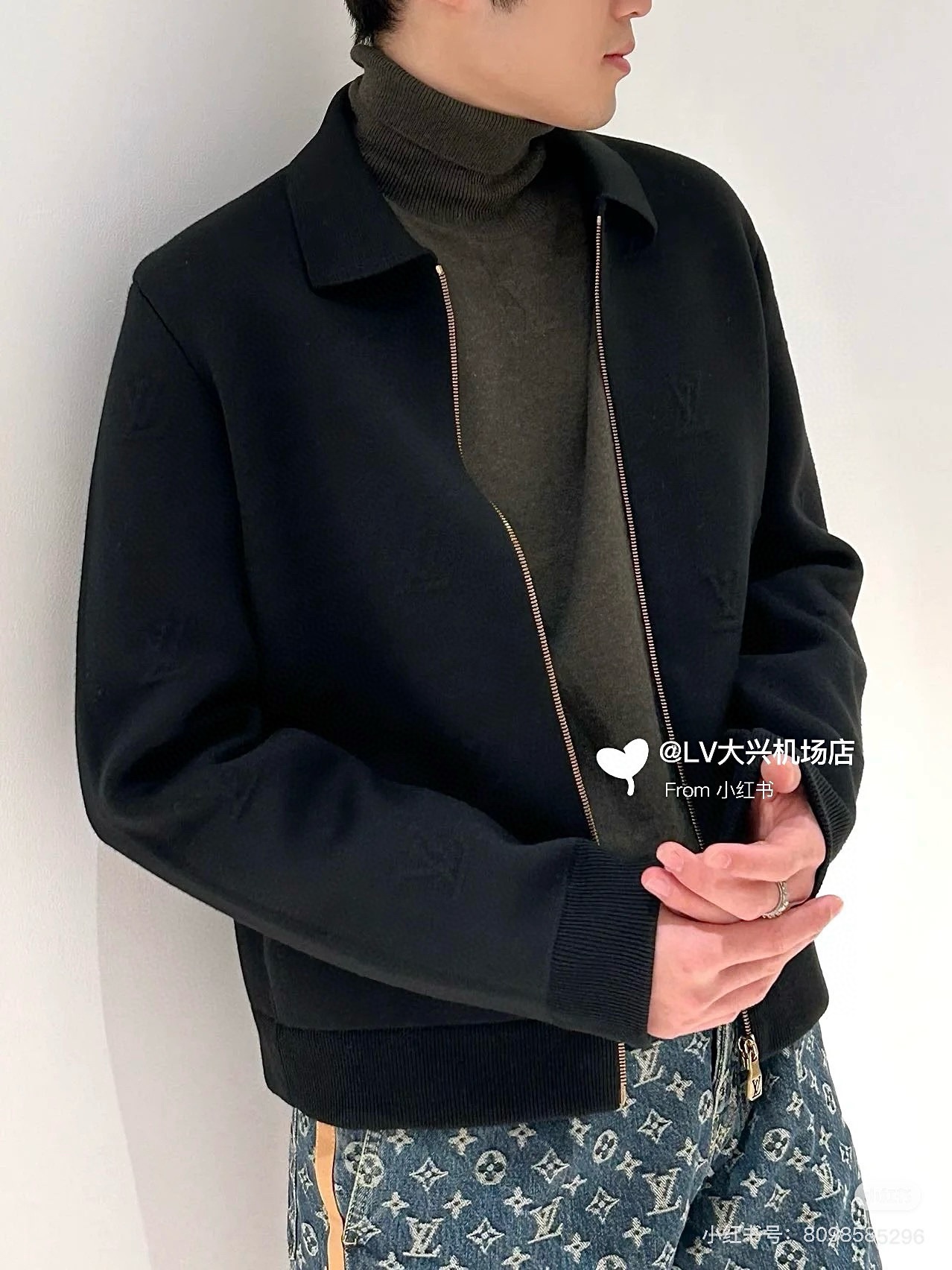 NIGO Louis Vuitton Men's Spring/Autumn Black Logo Embossed Pattern Sheep Wool Zipper Long Sleeve Jacket #nigo74112