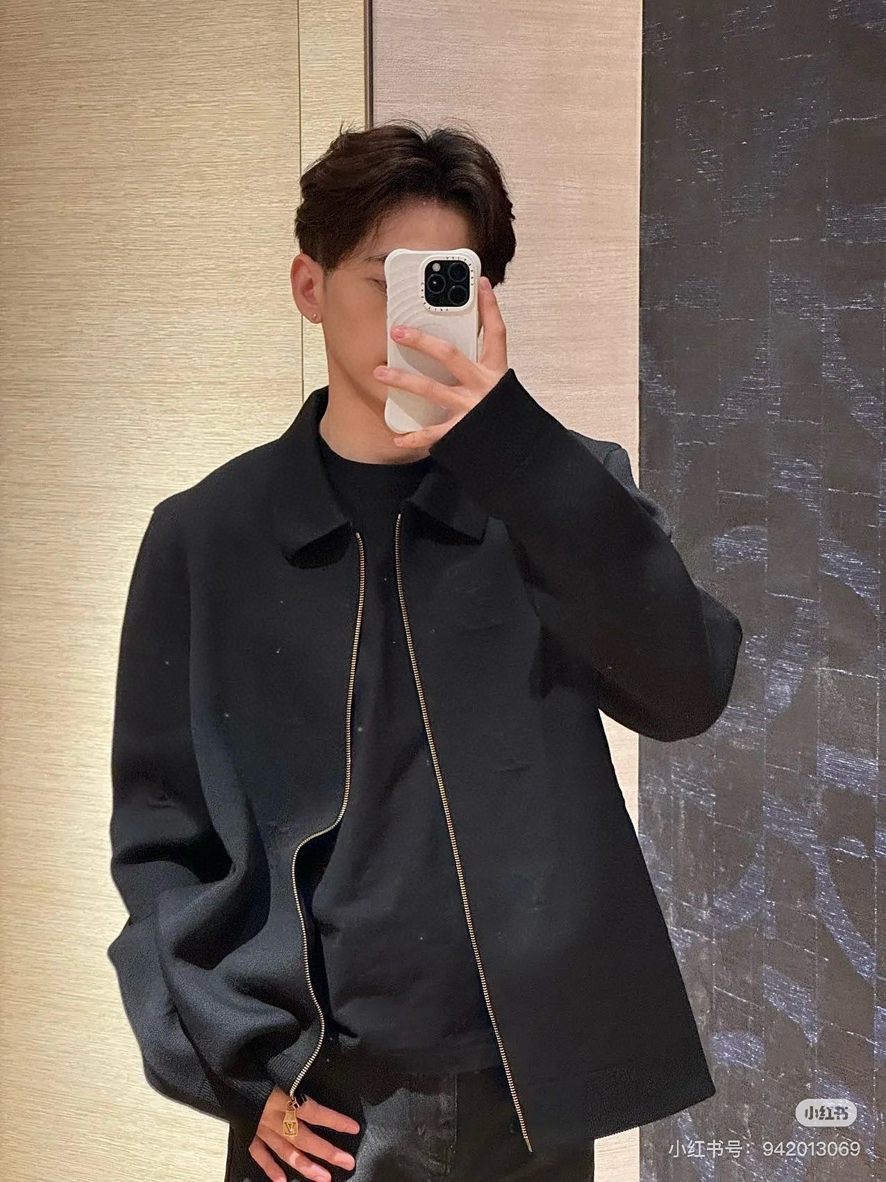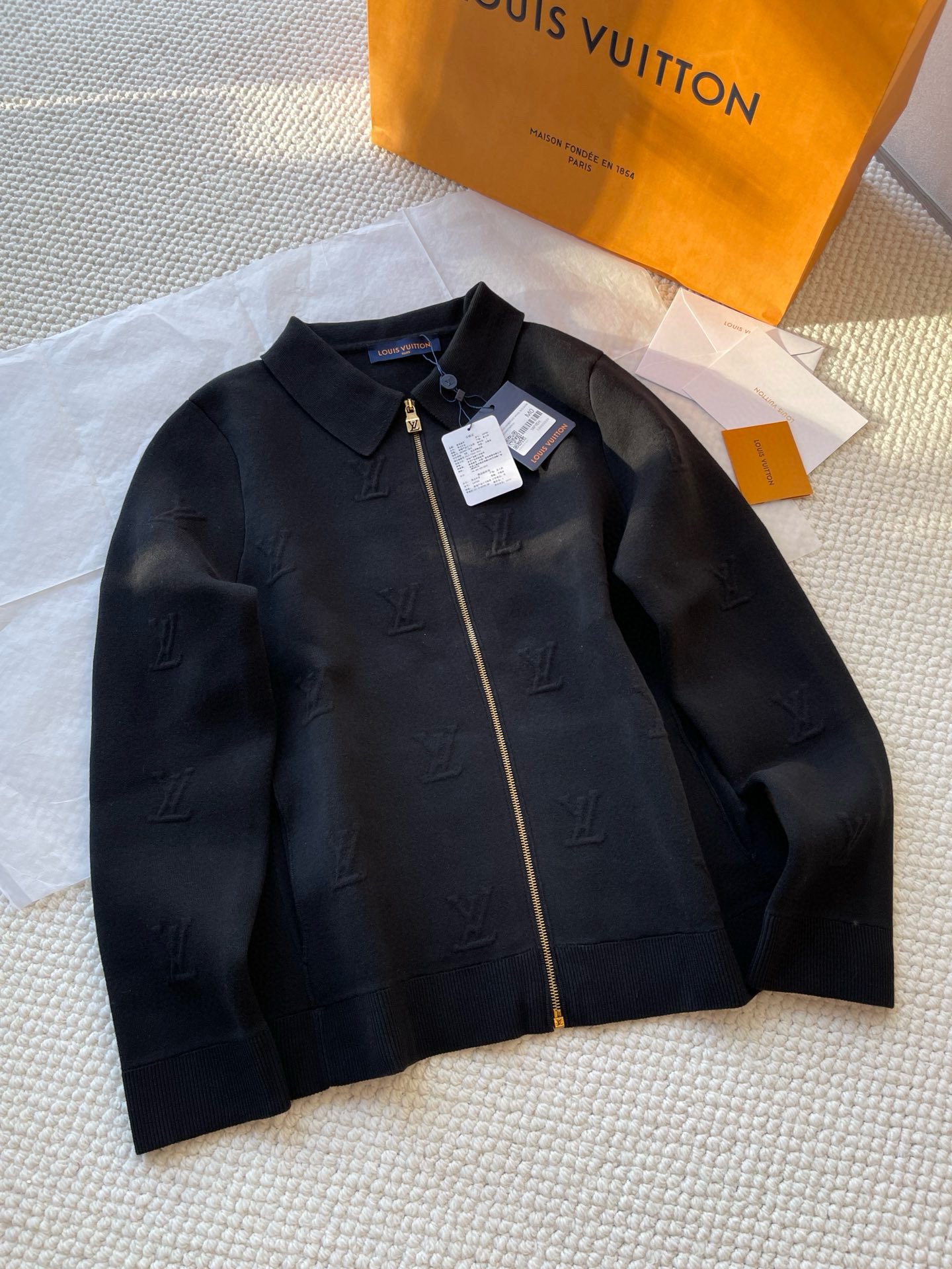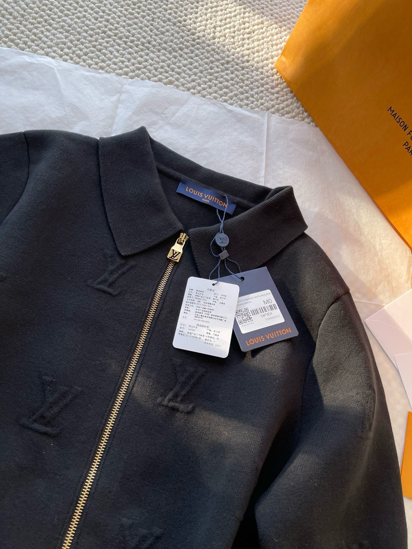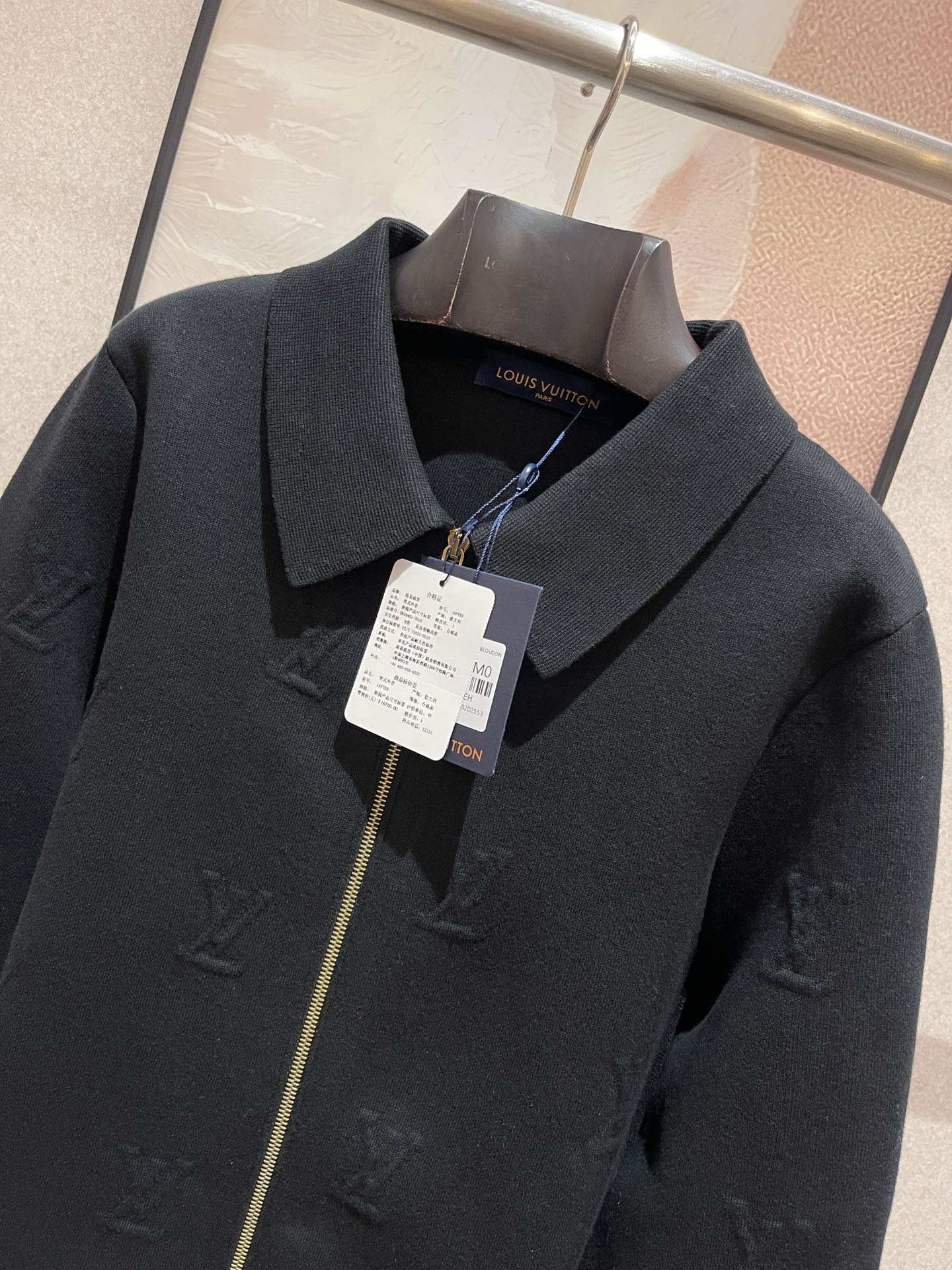 NIGO Louis Vuitton Men's Spring/Autumn Black Logo Embossed Pattern Sheep Wool Zipper Long Sleeve Jacket #nigo74112