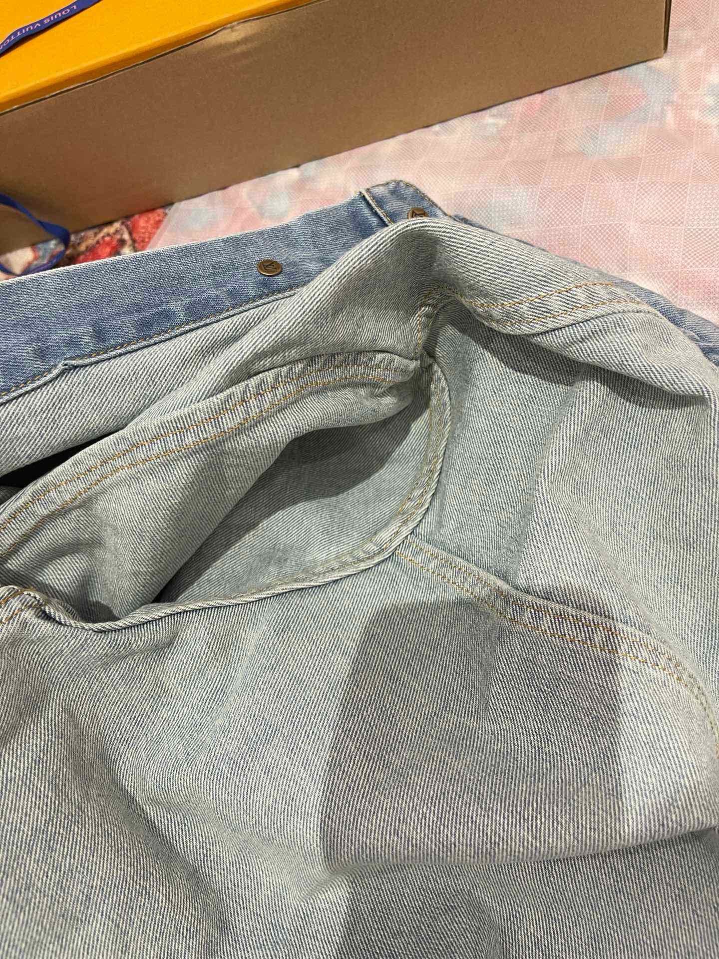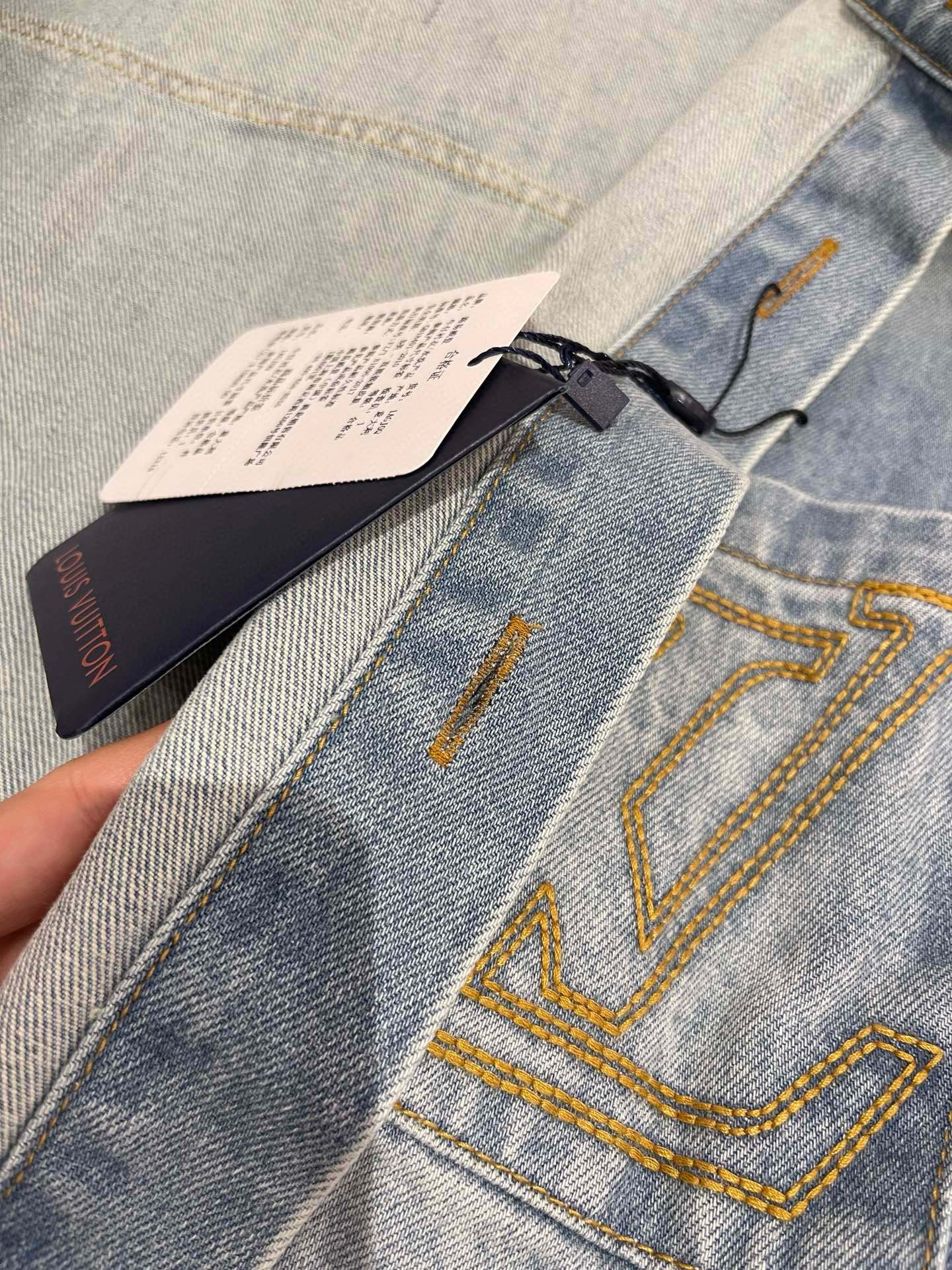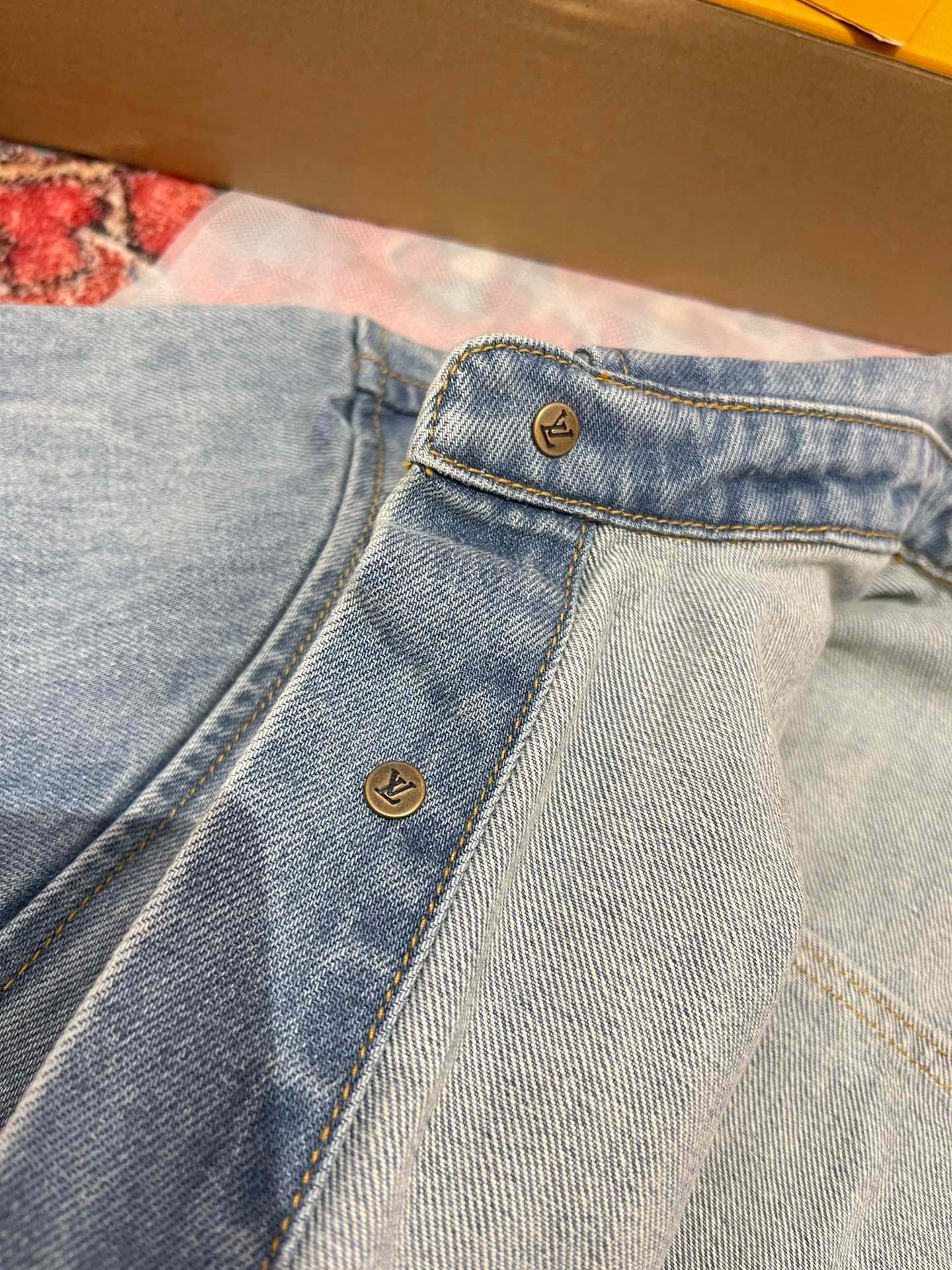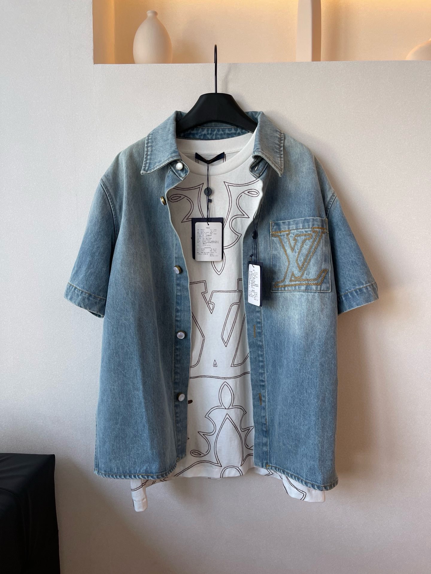 NIGO Louis Vuitton Men's Summer Blue Logo Letter Printed Pocket Single Breasted Short Sleeve Denim Shirt #nigo74716