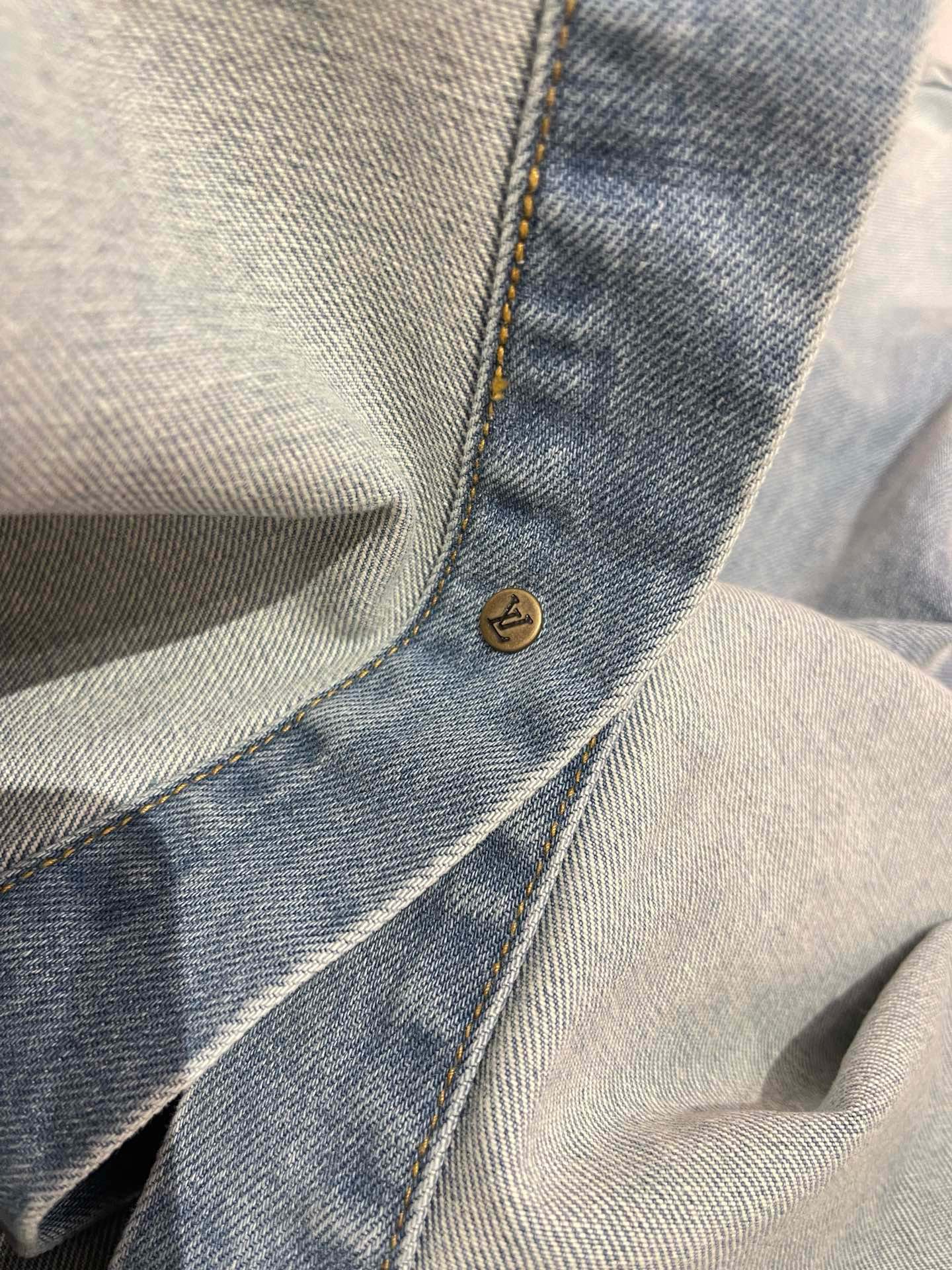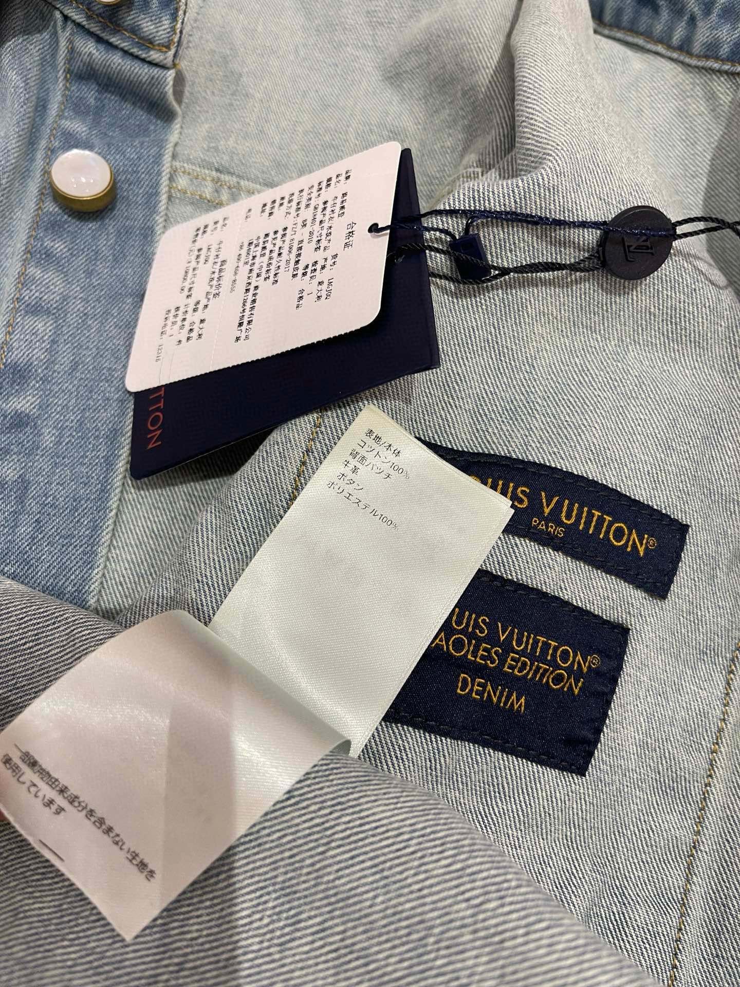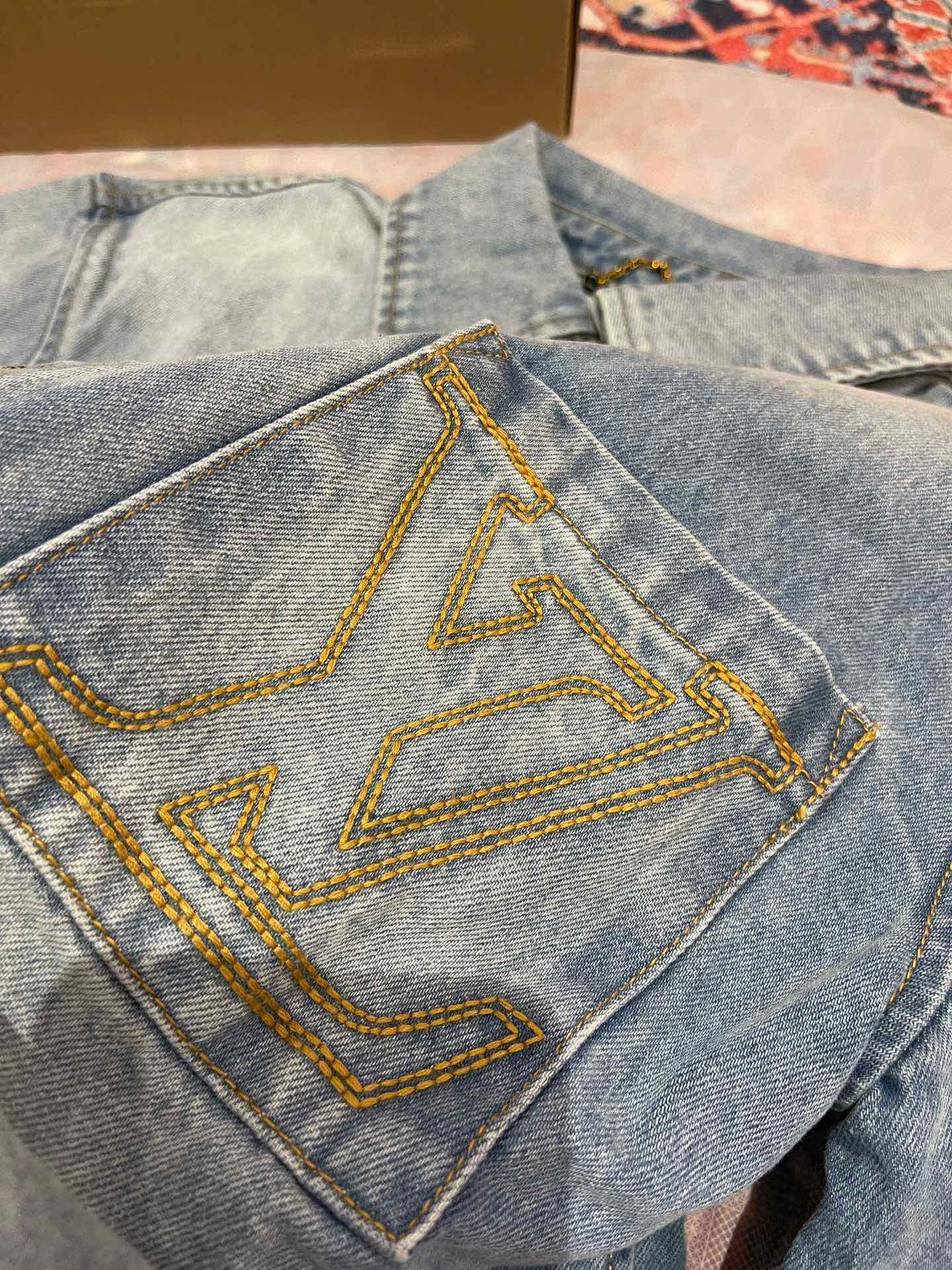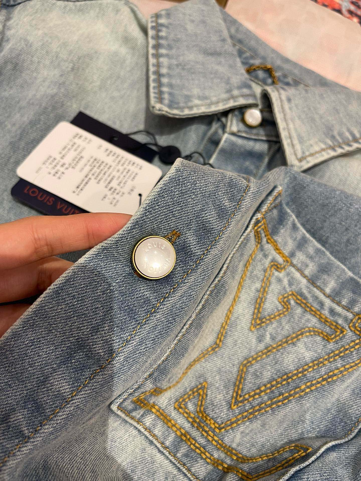 NIGO Louis Vuitton Men's Summer Blue Logo Letter Printed Pocket Single Breasted Short Sleeve Denim Shirt #nigo74716