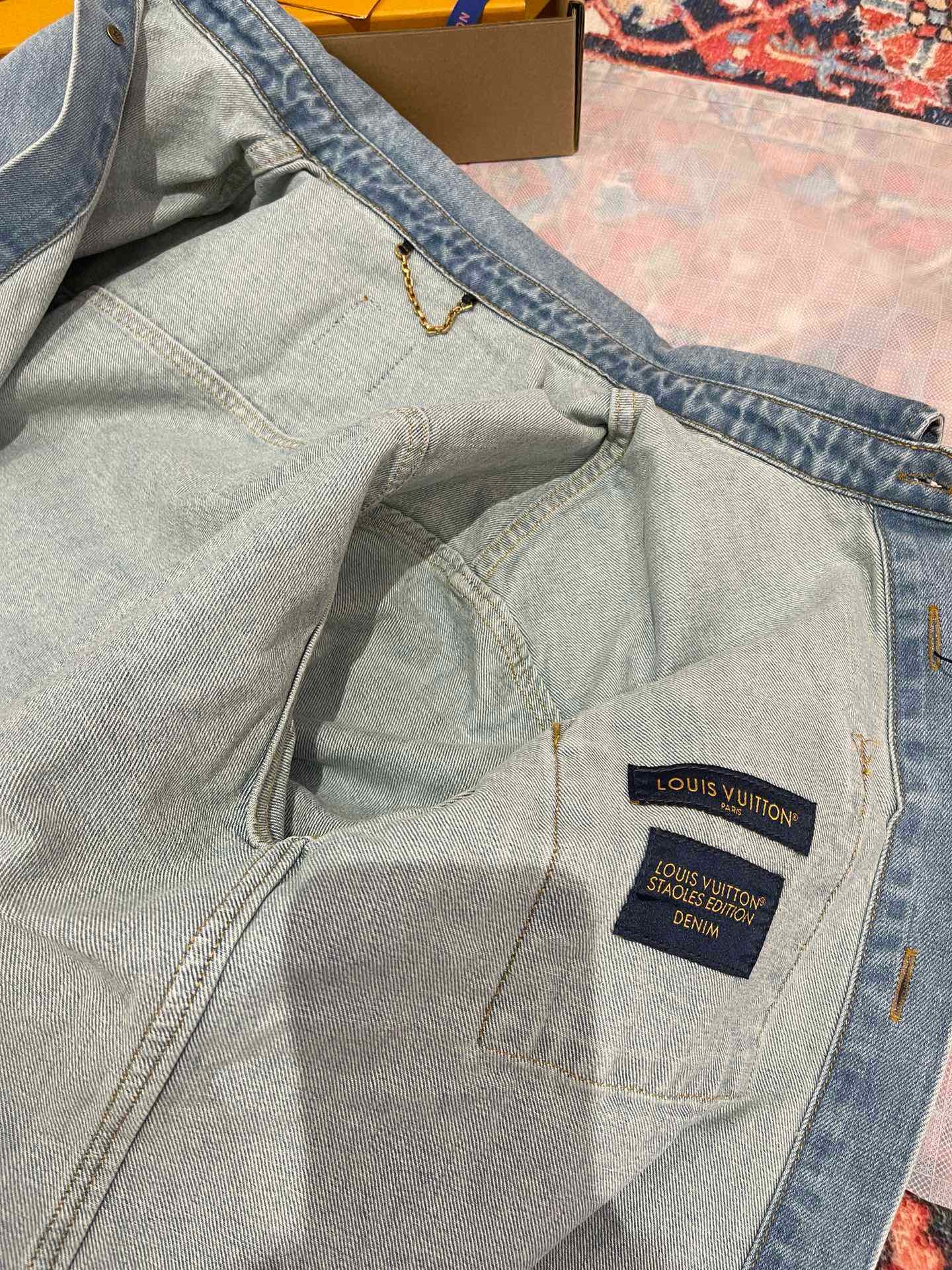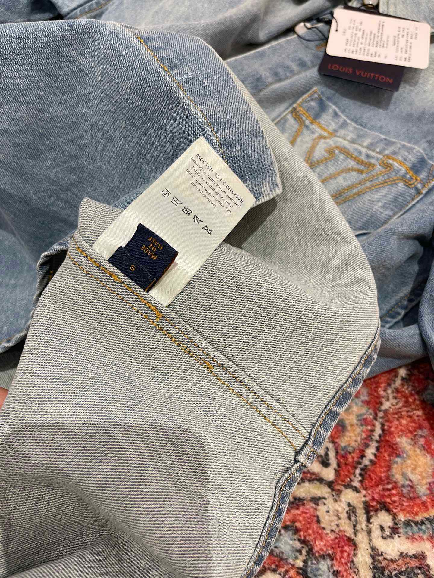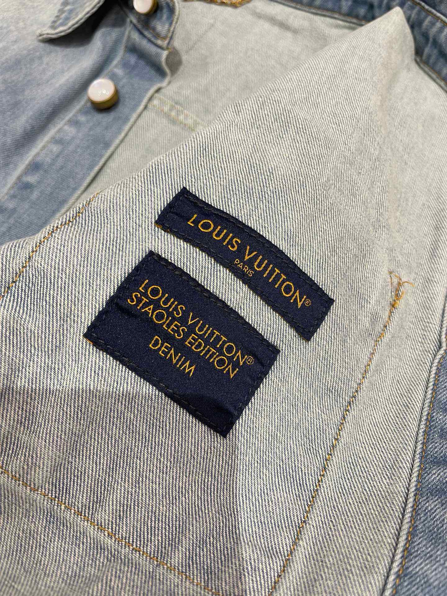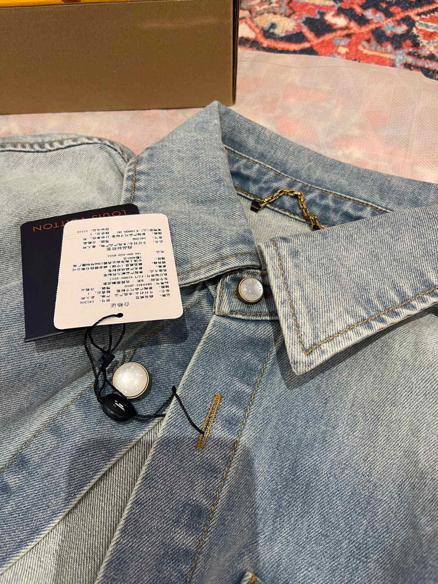 NIGO Louis Vuitton Men's Summer Blue Logo Letter Printed Pocket Single Breasted Short Sleeve Denim Shirt #nigo74716