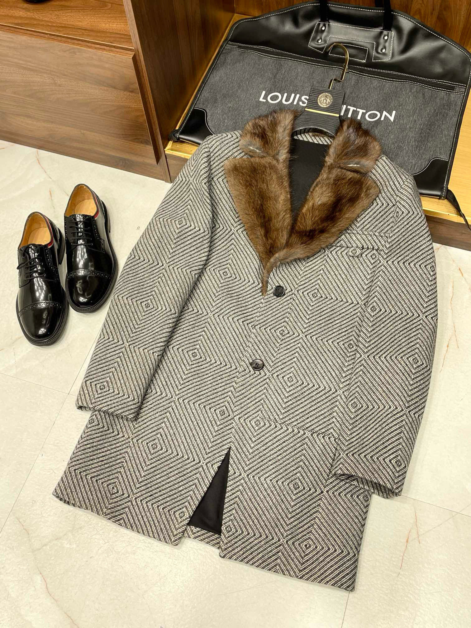 NIGO Louis Vuitton Men's Winter Cashmere Collar Wool Geometric Pattern Single-Breasted Jacket Coat #nigo97436