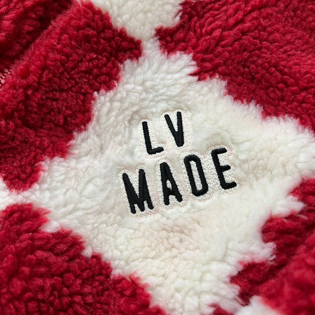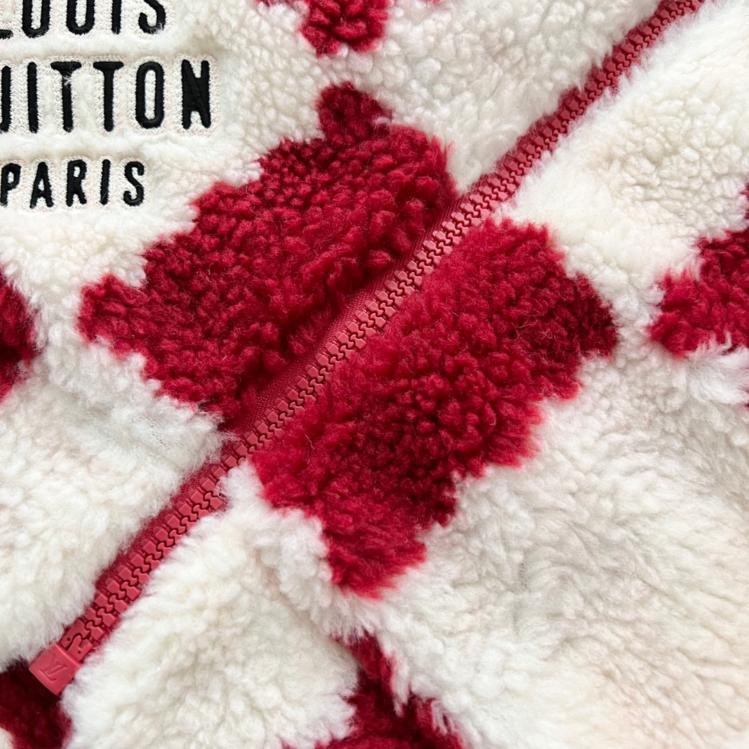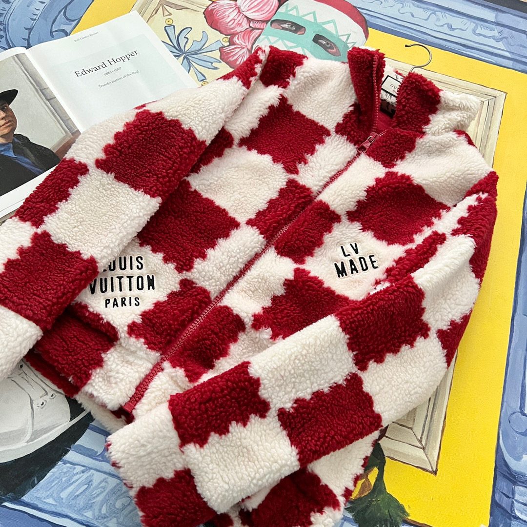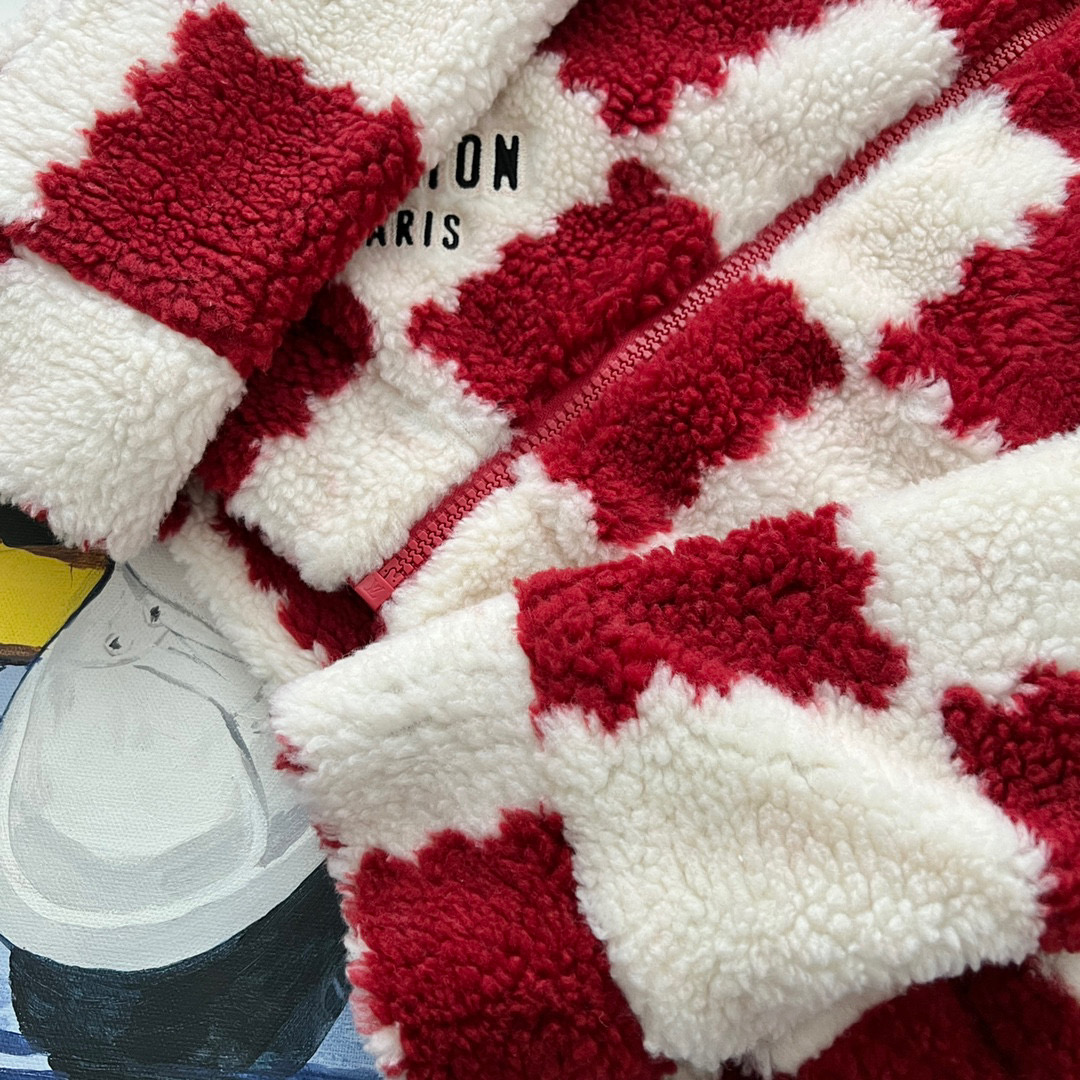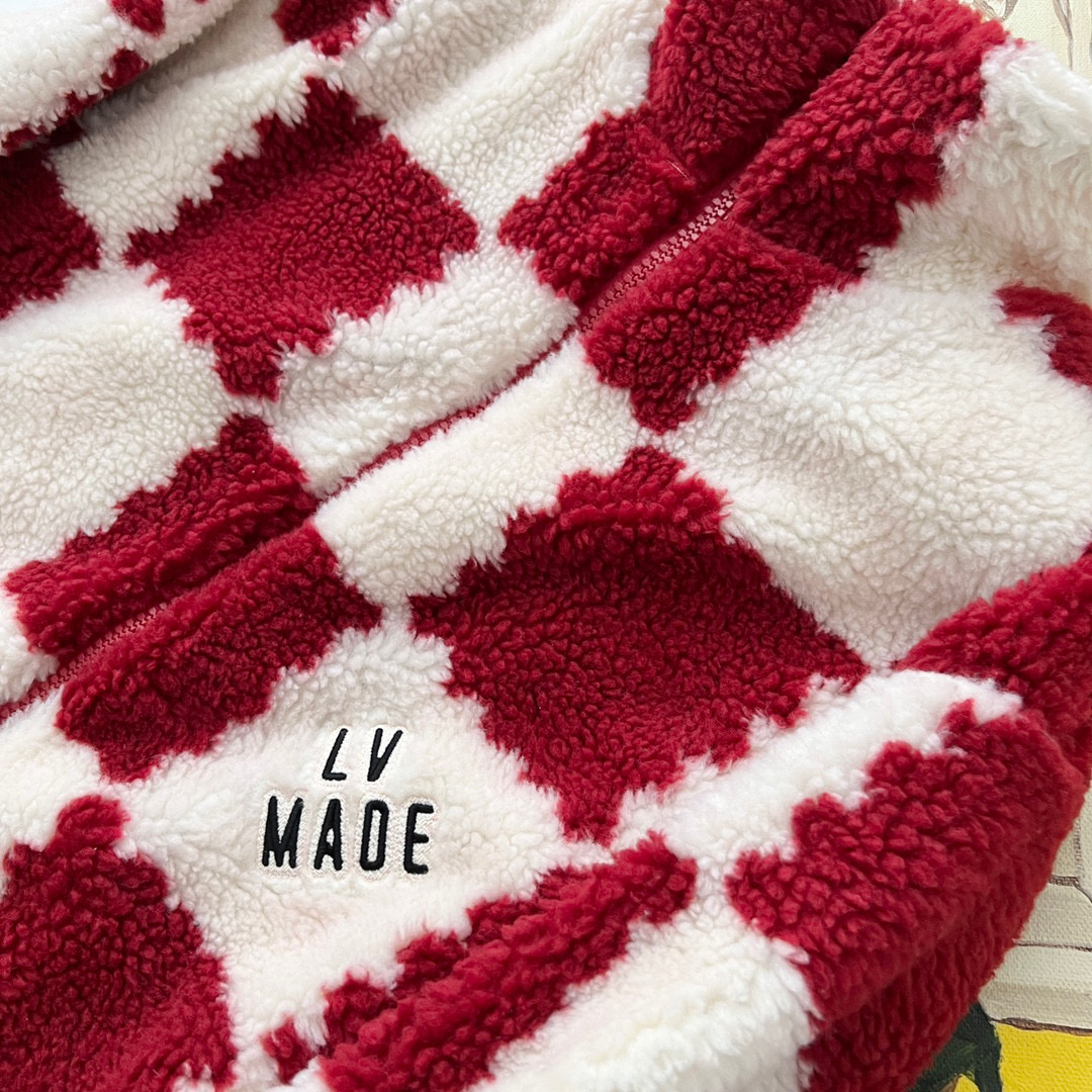NIGO Louis Vuitton Men's Winter Red and White Plaid Lamb's Wool Zipper Jacket #nigo96984