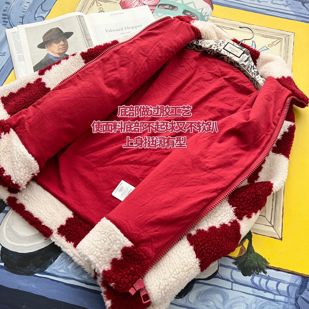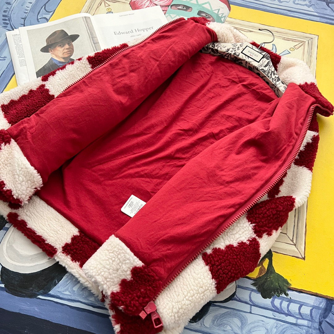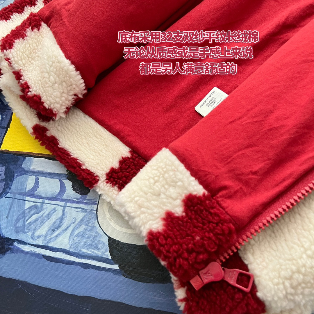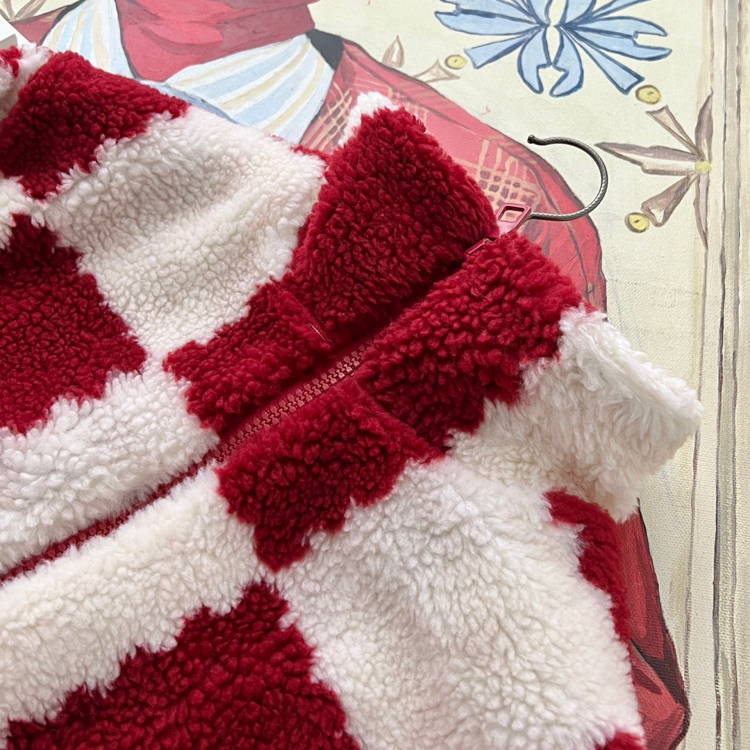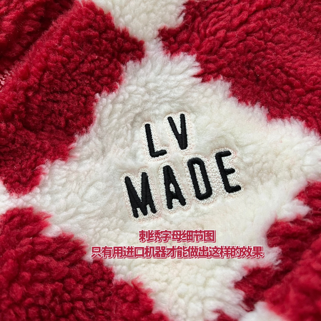 NIGO Louis Vuitton Men's Winter Red and White Plaid Lamb's Wool Zipper Jacket #nigo96984