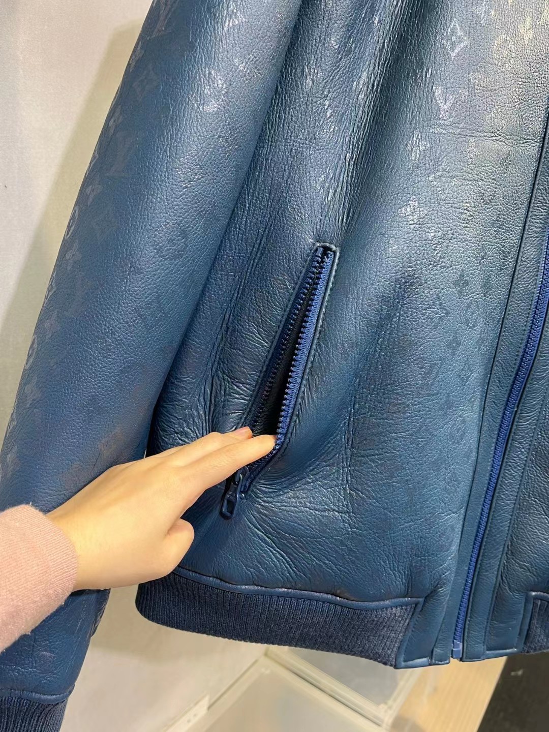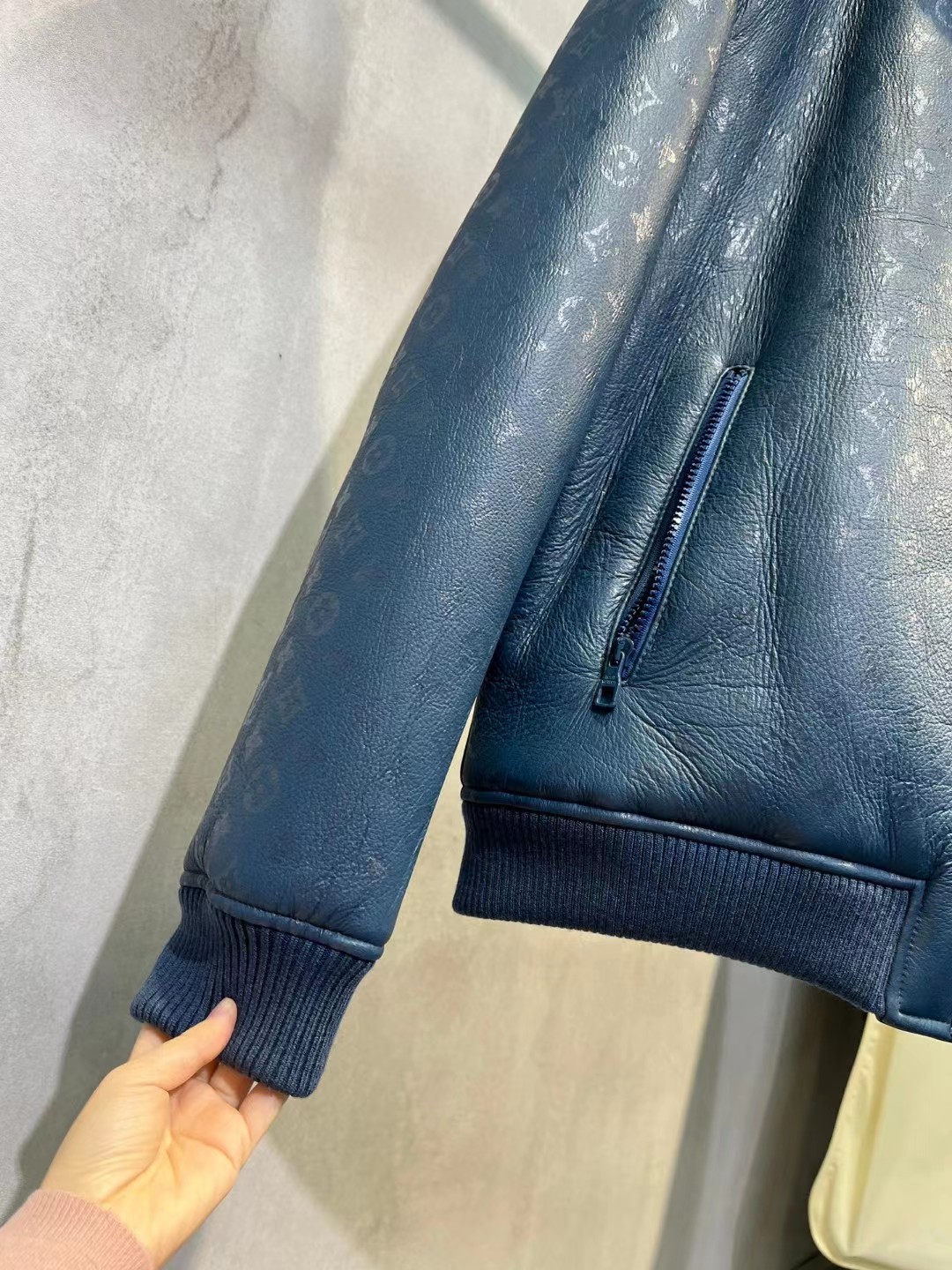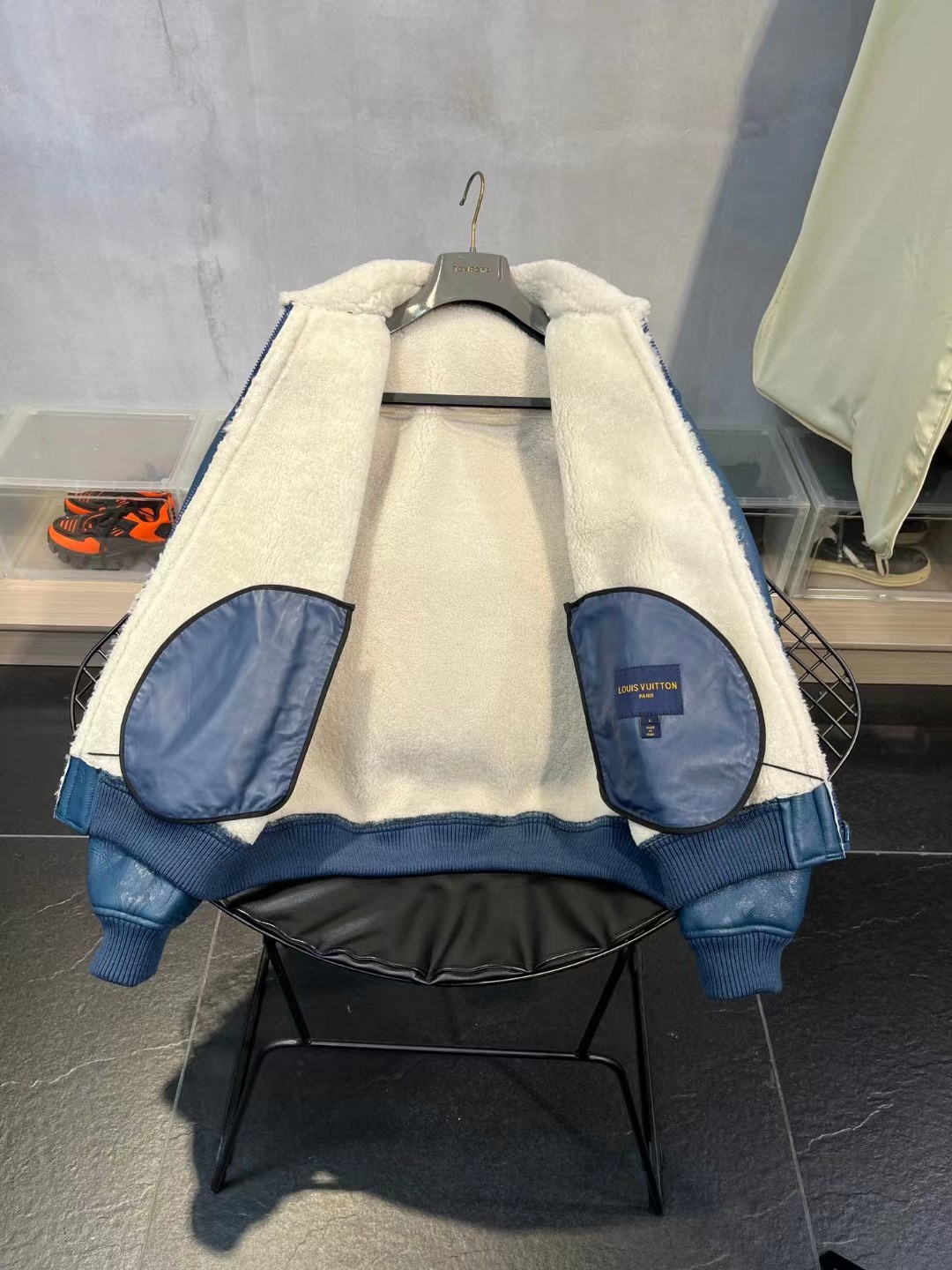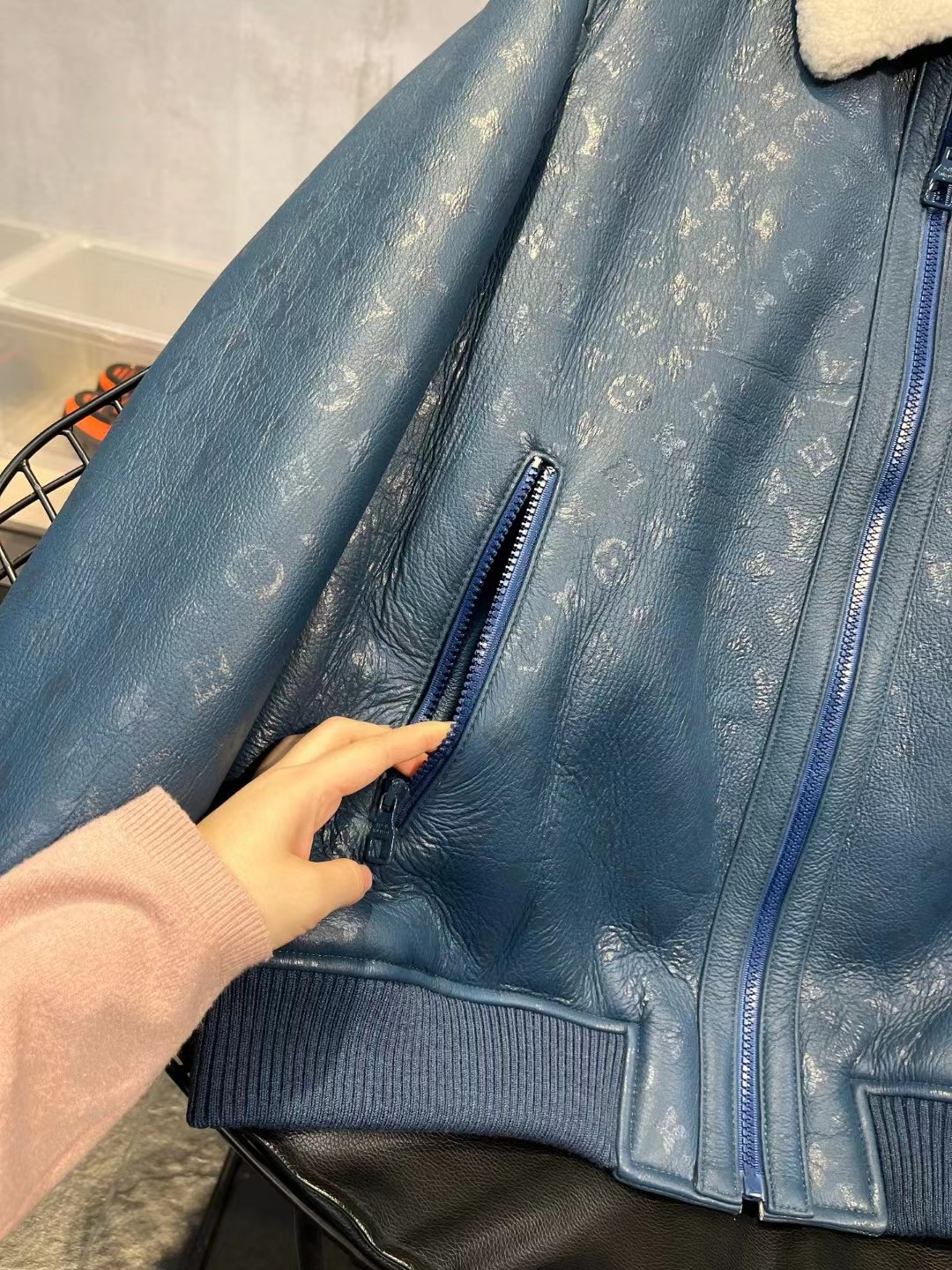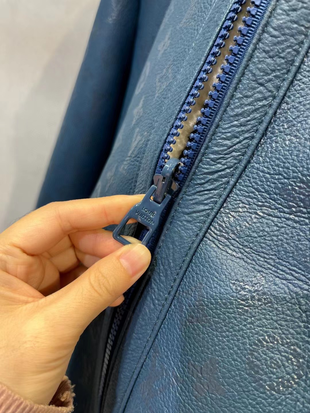 NIGO Louis Vuitton Men's Winter Wool Lining Blue Dark Logo Print Leather Zip Jacket #nigo97752