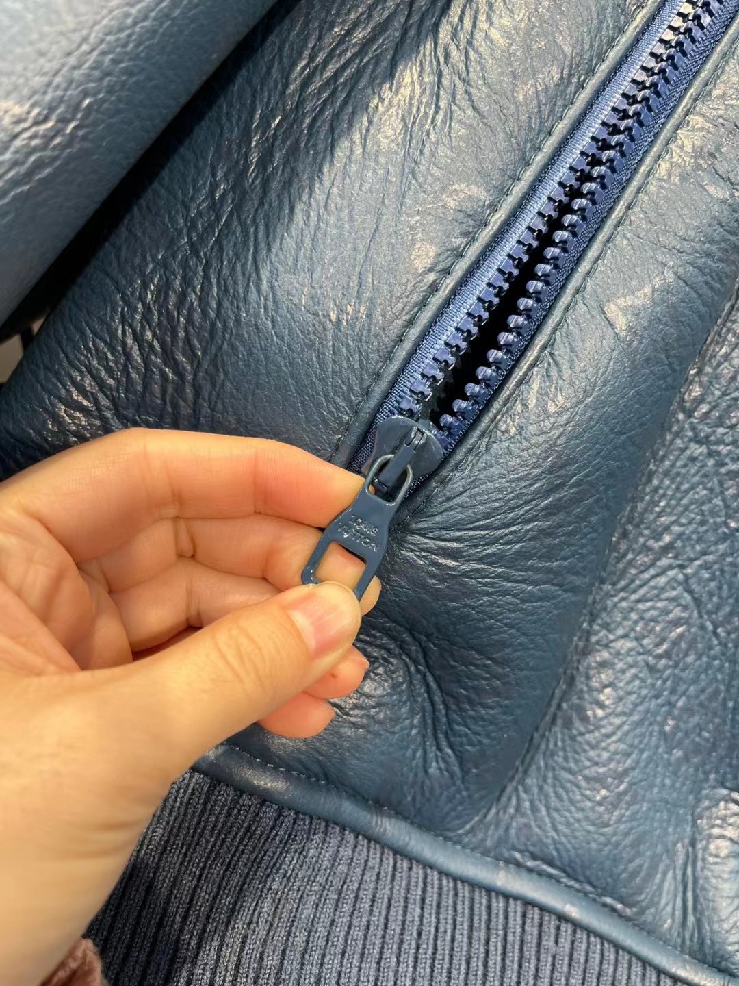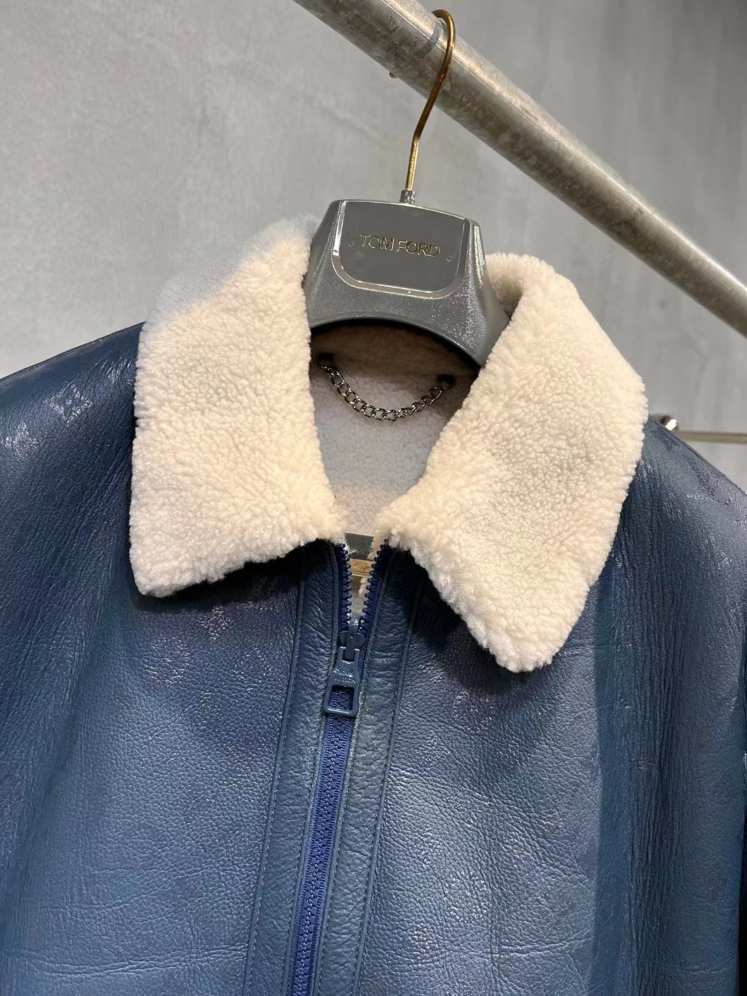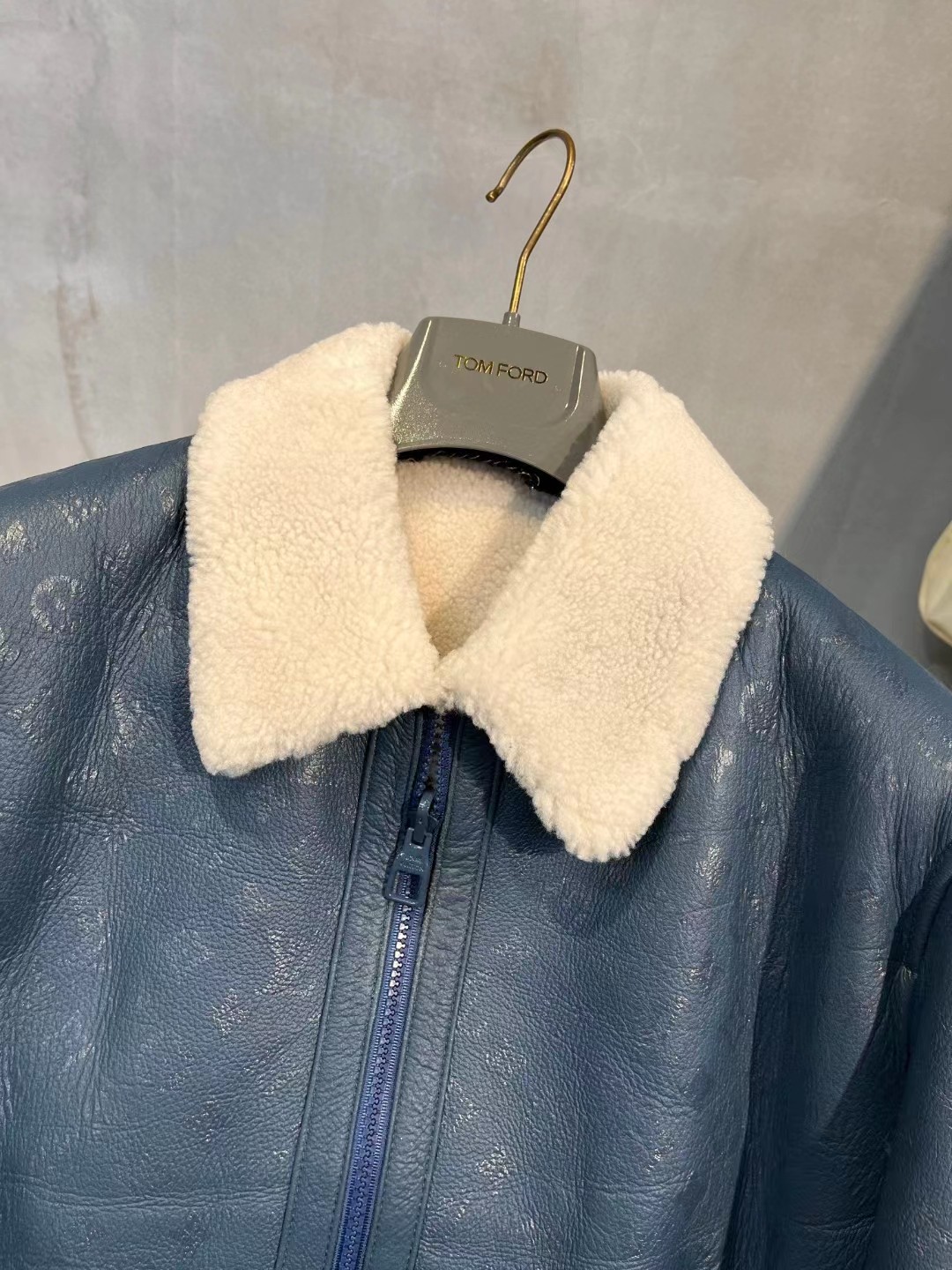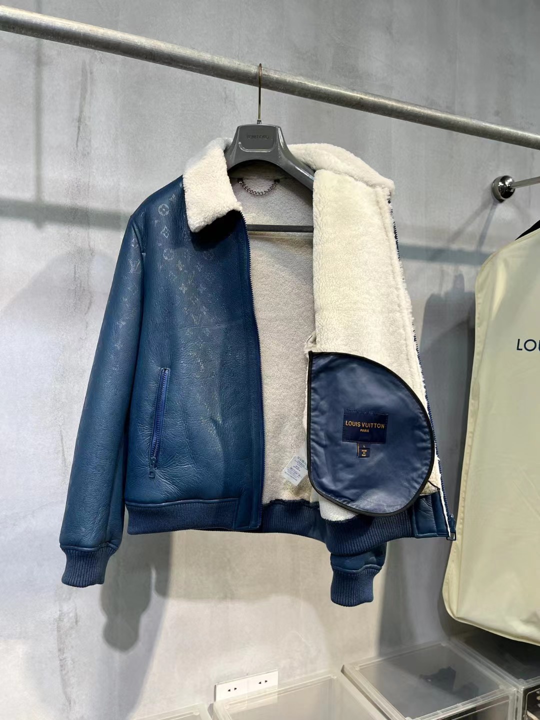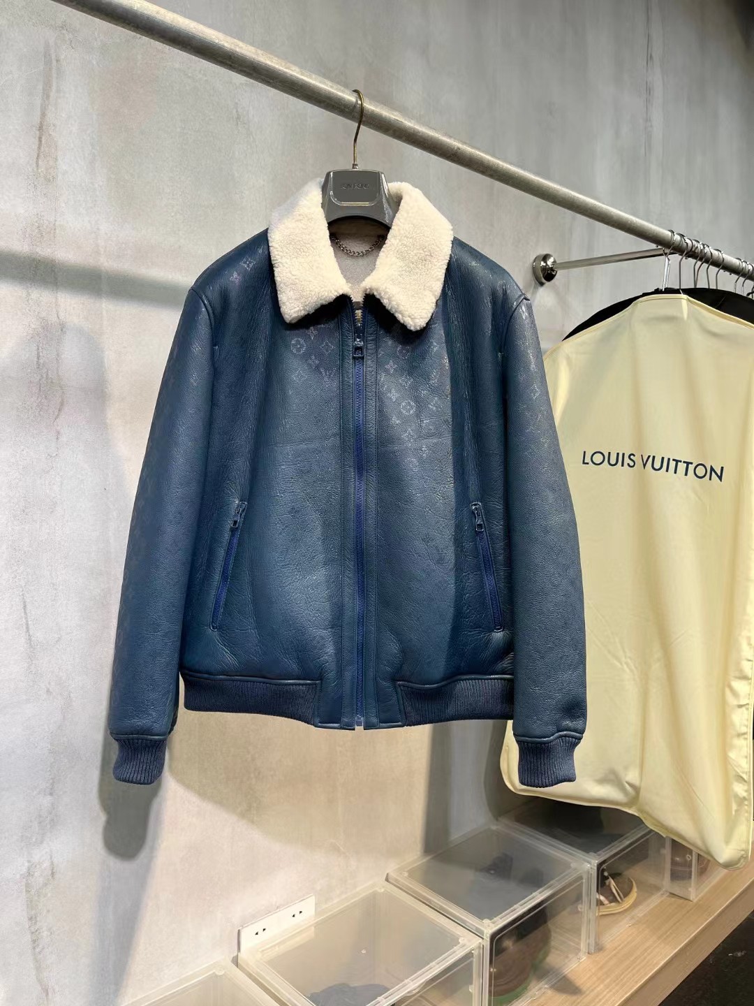 NIGO Louis Vuitton Men's Winter Wool Lining Blue Dark Logo Print Leather Zip Jacket #nigo97752