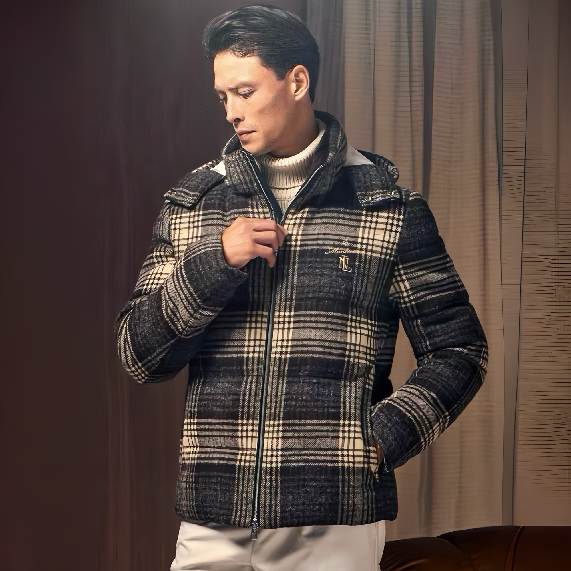 NIGO Montecore Men's Winter Pinstripe Blend Wool Hooded Zip Puffer Down Jacket #nigo97666