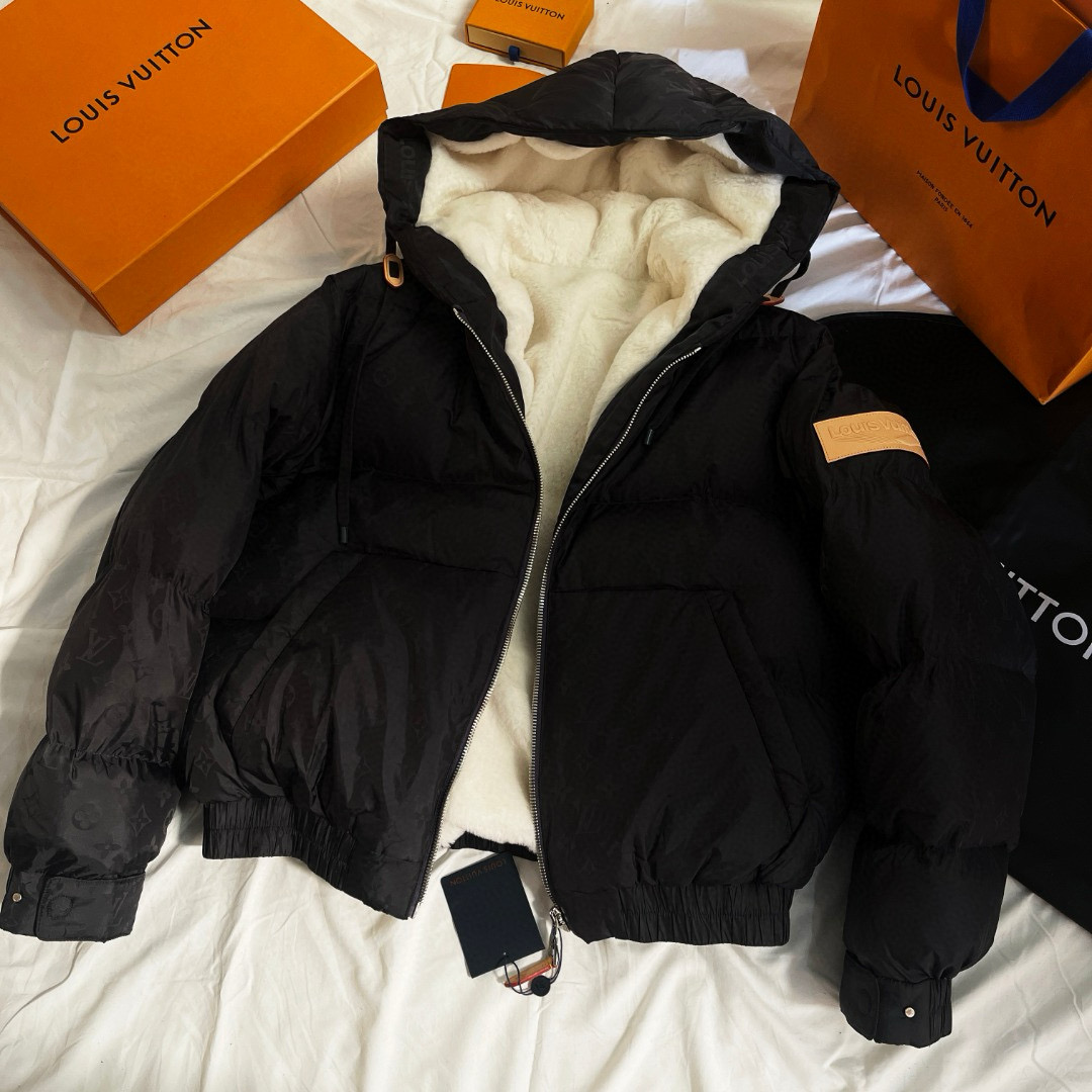 NIGO Louis Vuitton Men's Fall and Winter Letter Logo Print Drawstring Hooded Plush Lined Cotton Jacket #nigo75554