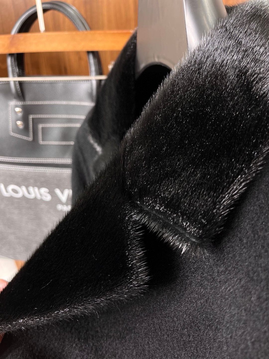 NIGO Louis Vuitton Men's Autumn and Winter Solid Color Seal Fur Collar Cashmere Long Single Breasted Coat Jacket #nigo74933