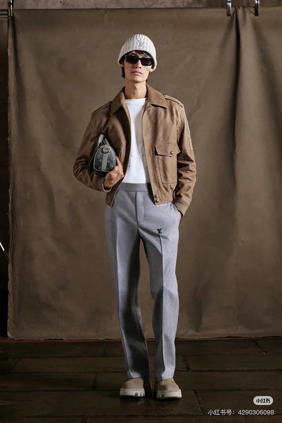 NIGO Louis Vuitton Men's Autumn and Winter Solid Color Lapel Twill Fabric Calfskin Long Sleeve Aviator Jacket #nigo74574