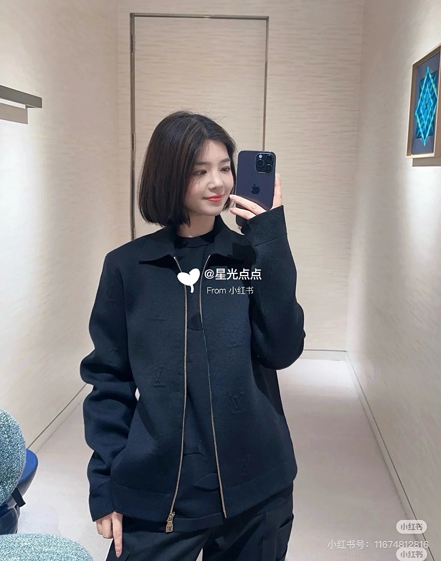 NIGO Louis Vuitton Men's Spring/Autumn Black Logo Embossed Pattern Sheep Wool Zipper Long Sleeve Jacket #nigo74112