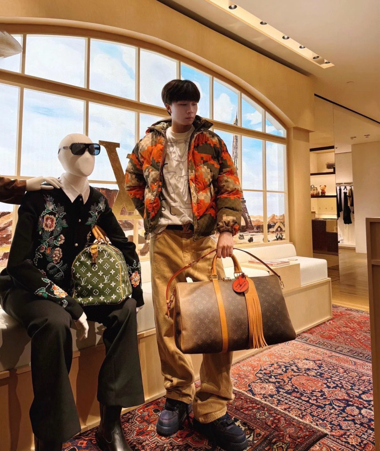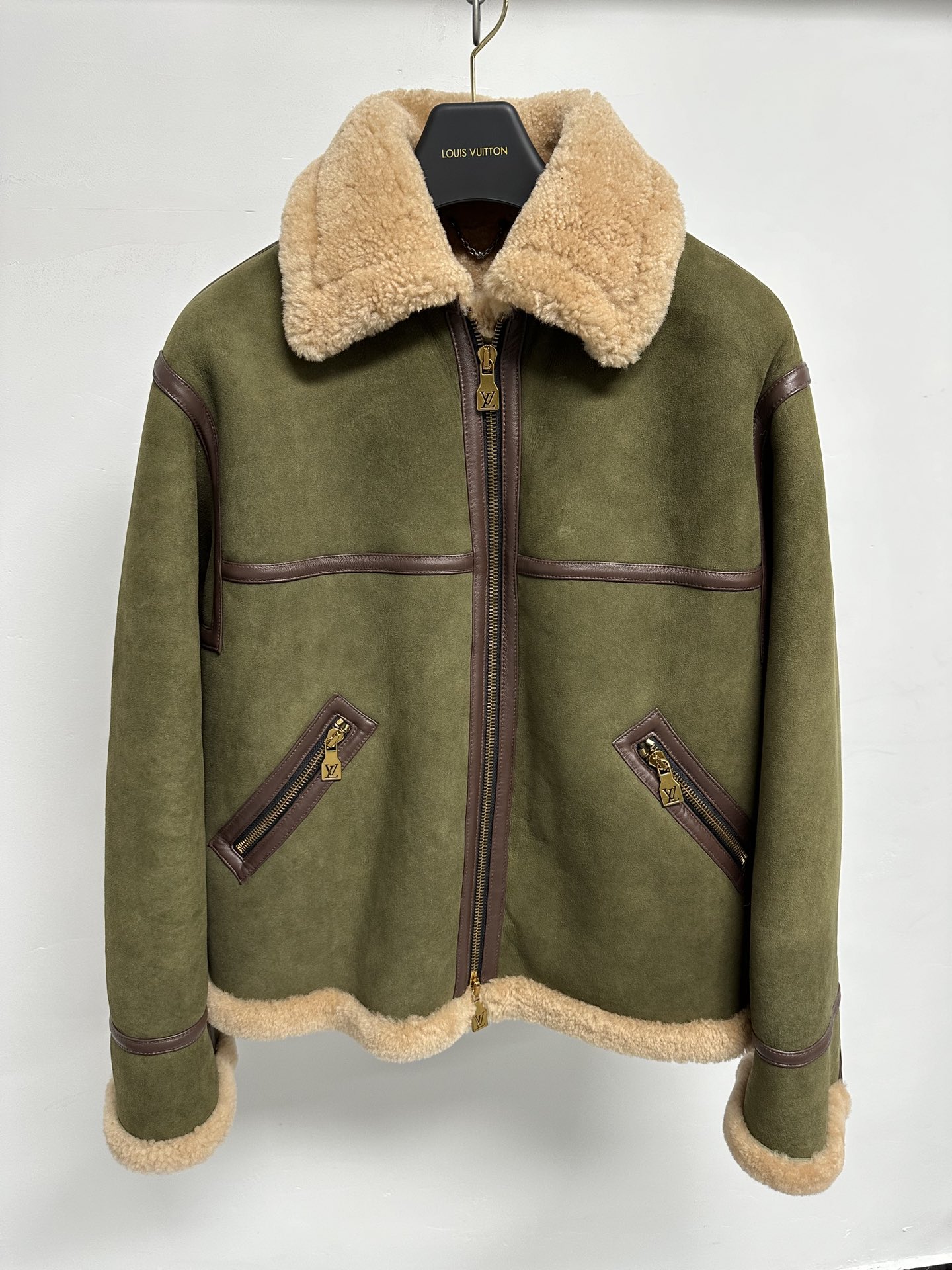 NIGO Louis Vuitton Men's Autumn and Winter Green Sheep Leather Patchwork Fur Collar Zipper Casual Long Sleeve Jacket #nigo73367