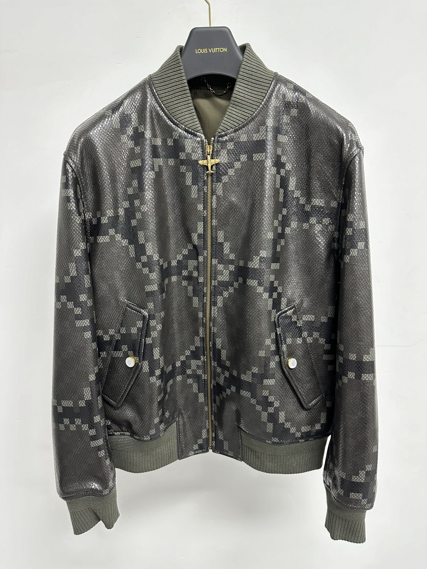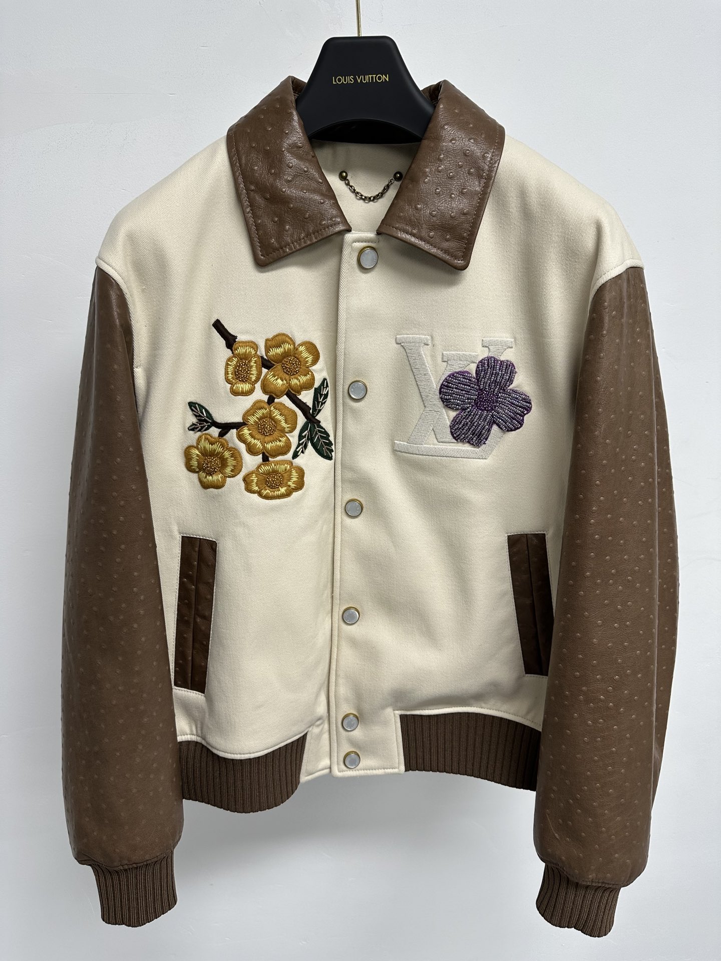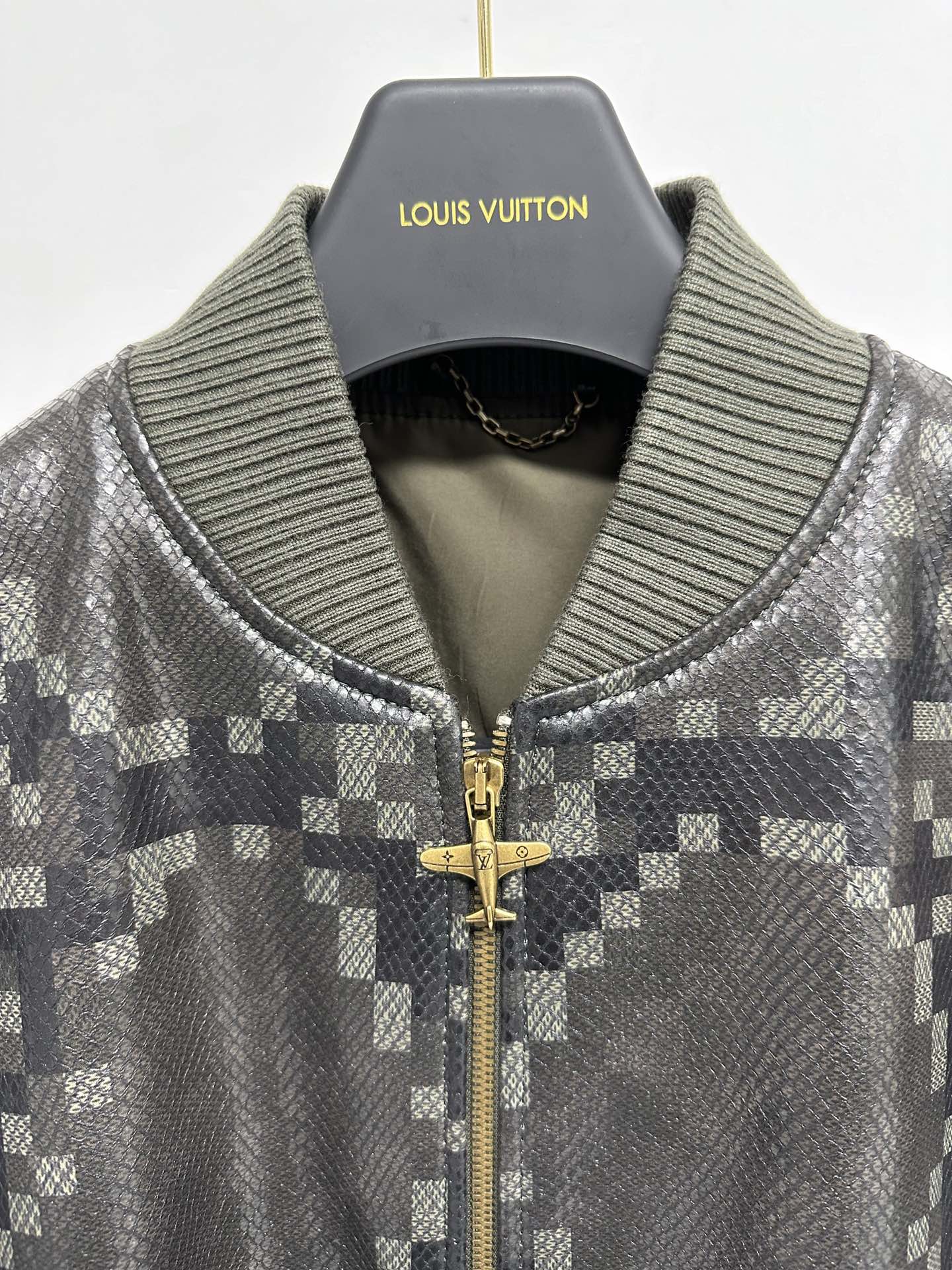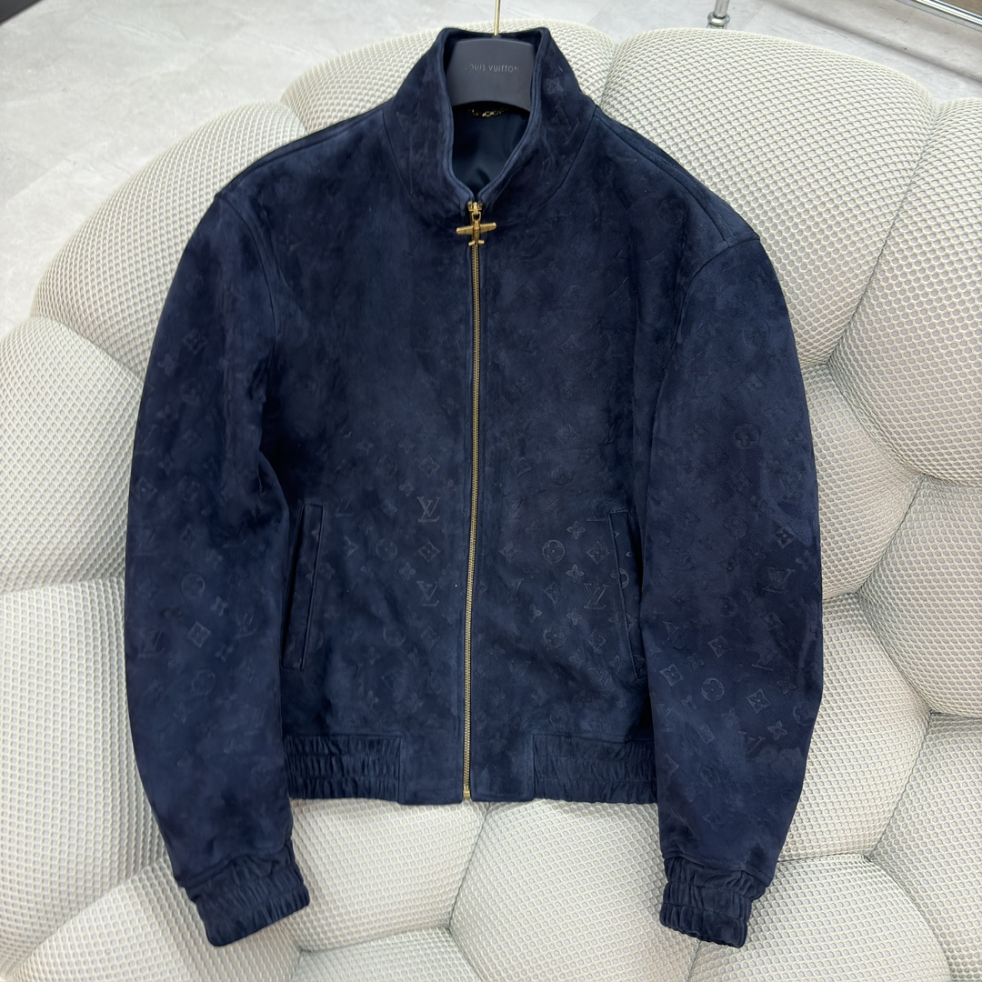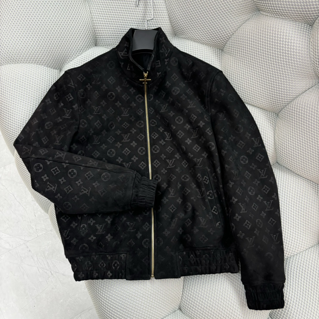 NIGO Louis Vuitton Men's Autumn And Winter Solid Color Embossed Baseball Collar Sheepskin Long Sleeve Jacket Ngvp #nigo9271