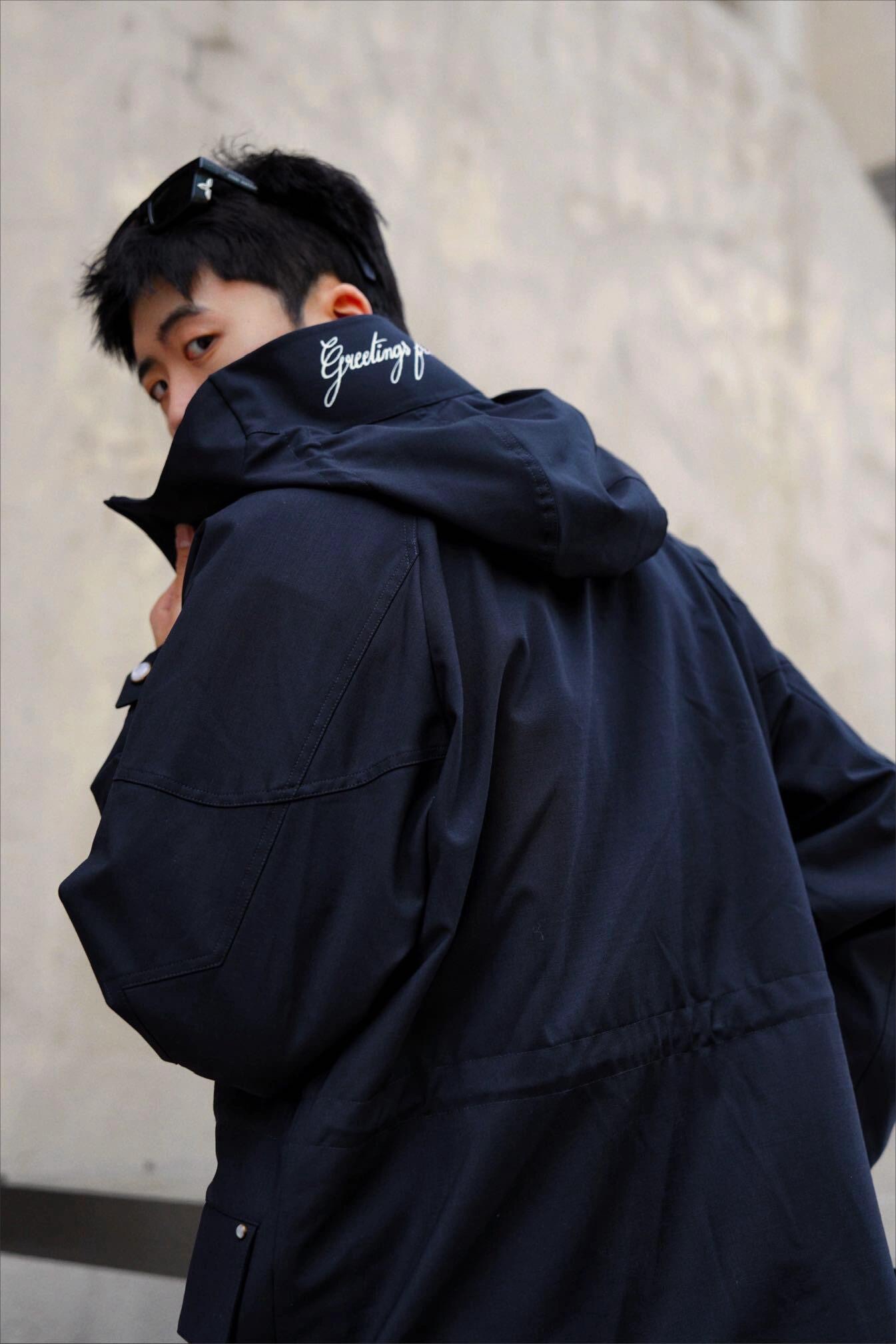 NIGO Louis Vuitton Men's Solid Logo Embroidered Hooded Zipper Blue Long Sleeve Fitted Parker Jacket Coat #nigo71458