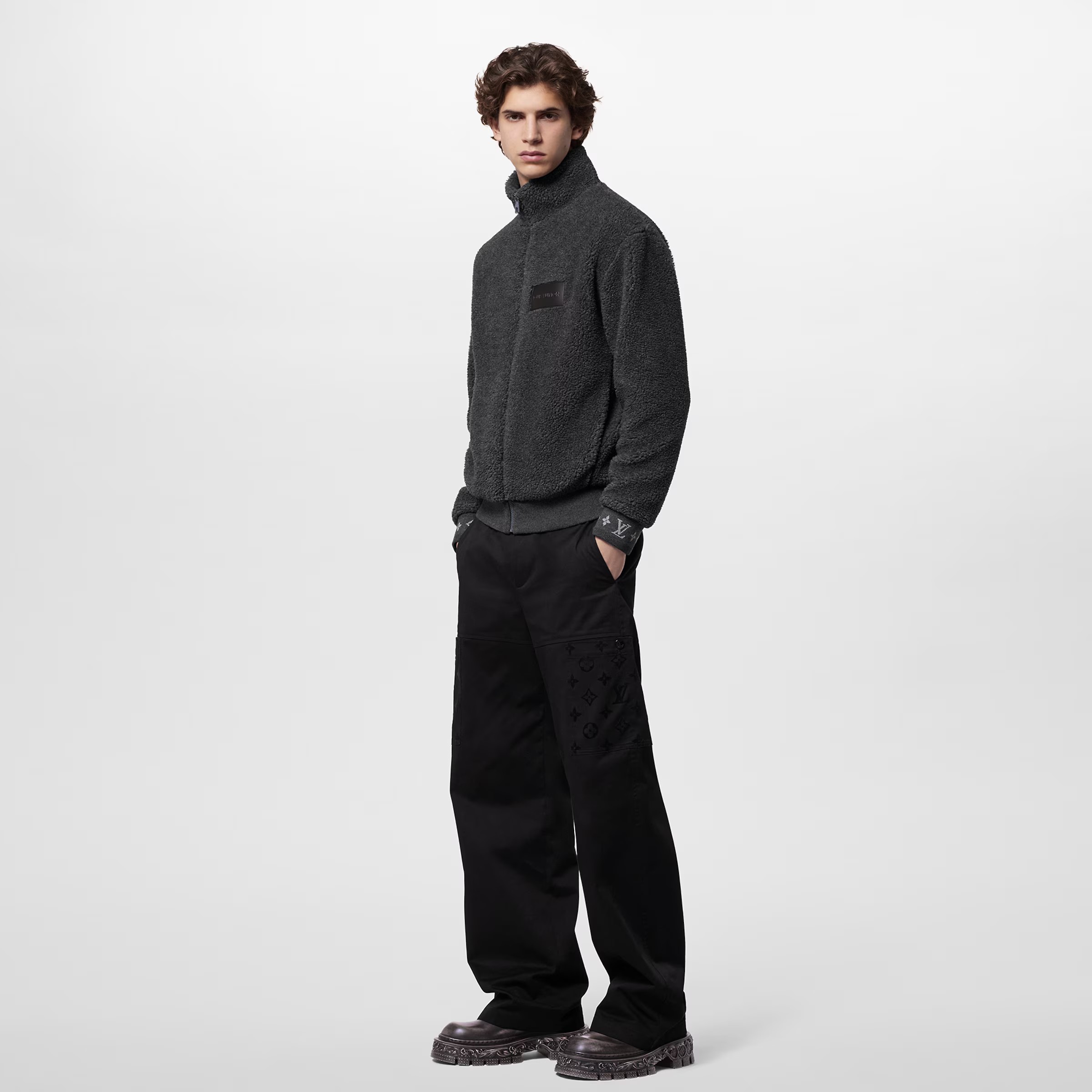 NIGO Louis Vuitton Men's Spring & Autumn Solid Color Logo Jacquard Suede Drawstring Zipper Long Sleeve Jacket #nigo71471