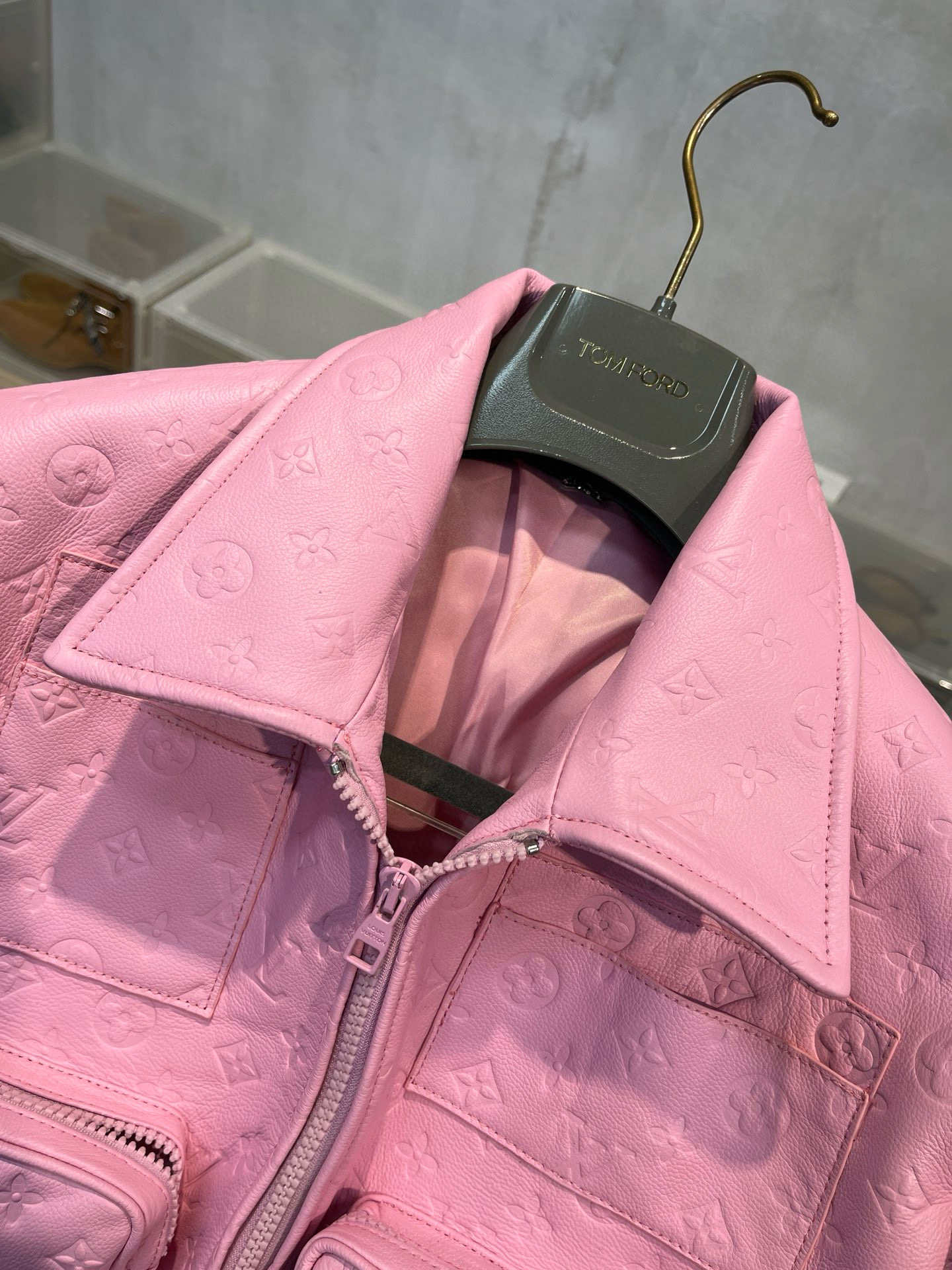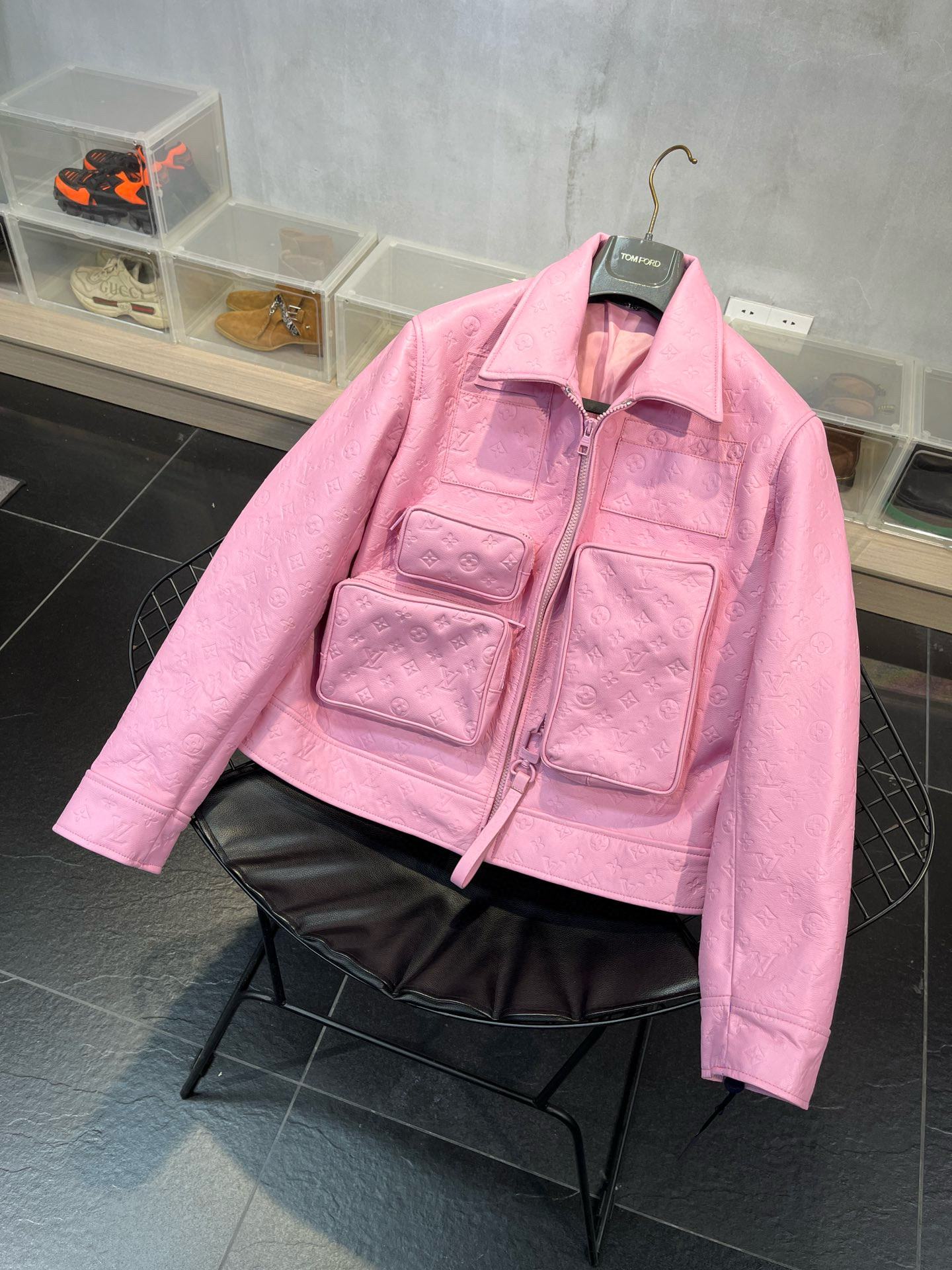 NIGO Louis Vuitton Men's Fall/Winter Logo Printed Pink Multi-Pocket Zipper Lapel Jacket #nigo98942
