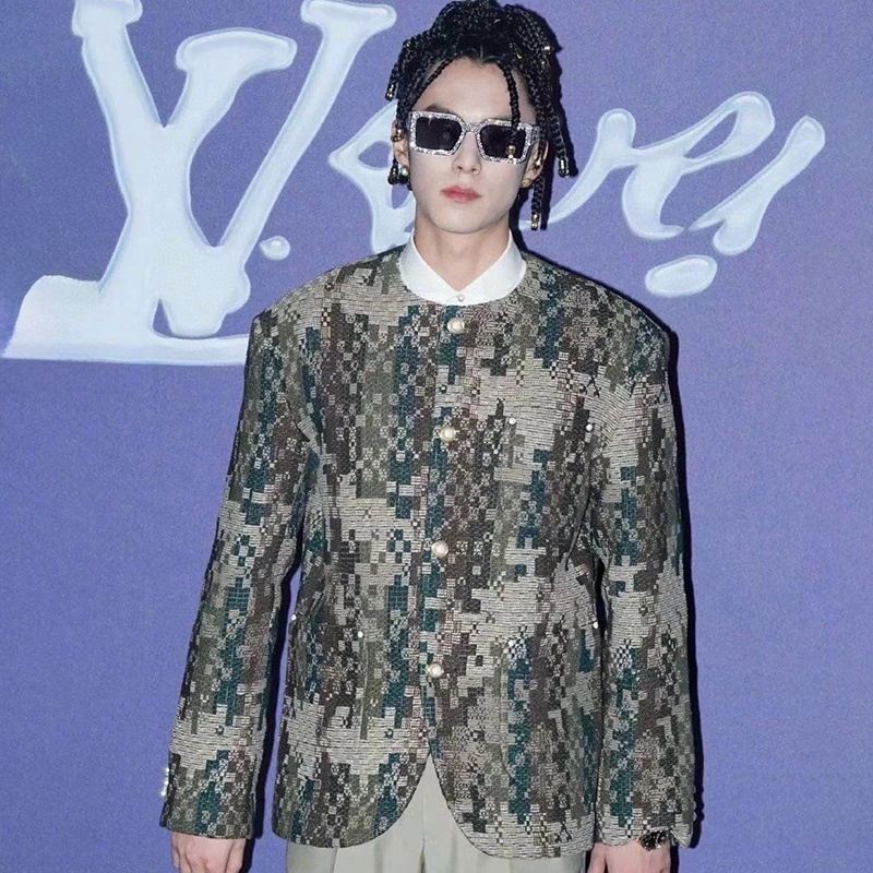 Nigo Louis Vuitton Men's Winter Logo Monogrammed Jacquard Pattern Fleece Casual Zipper Jacket #nigo98497