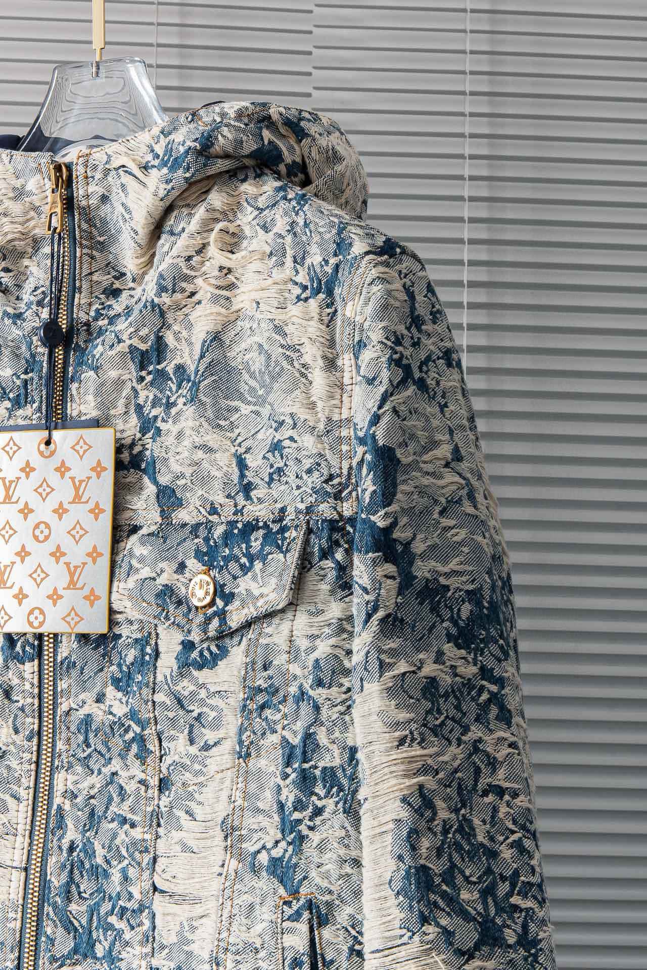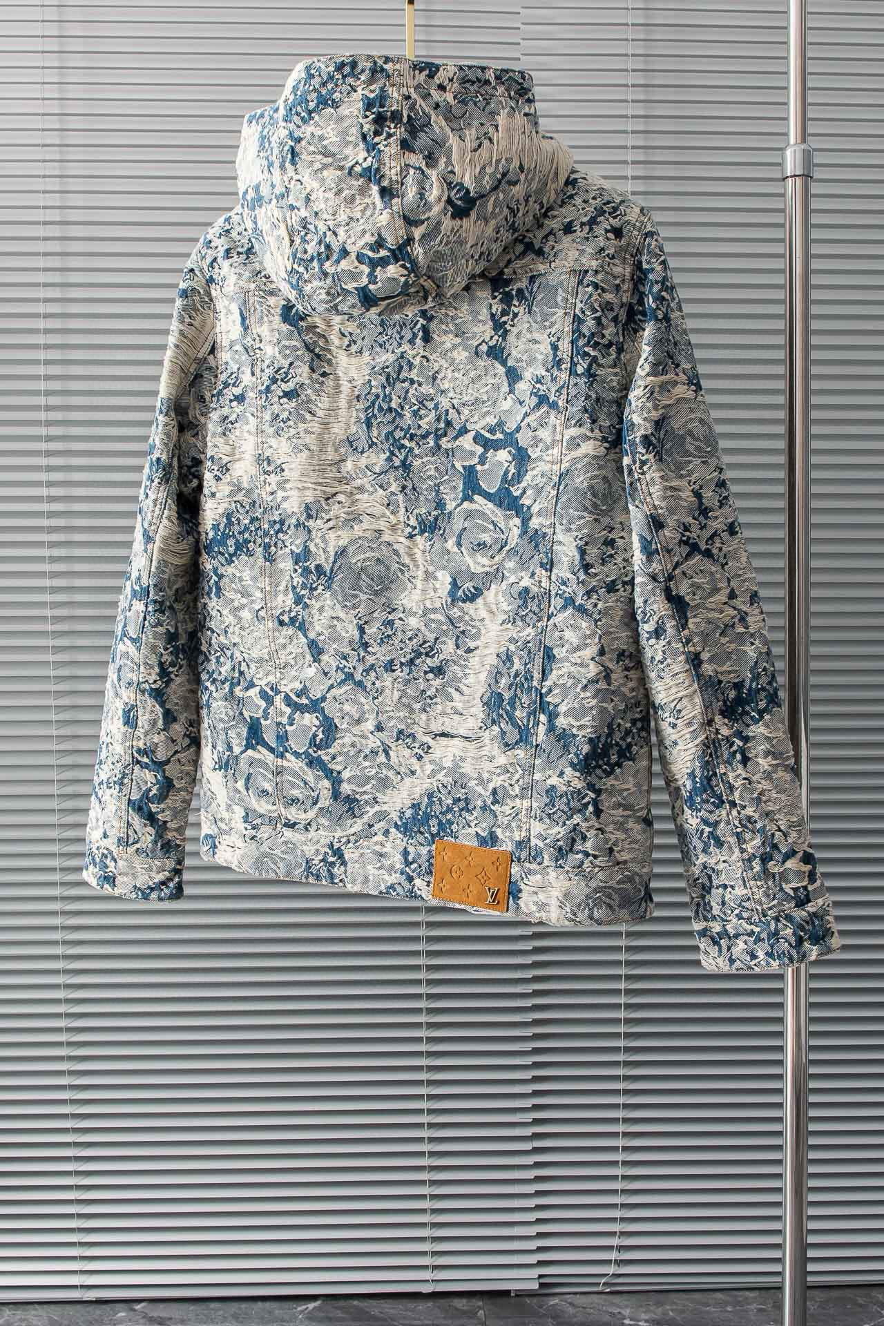 NIGO Louis Vuitton Men's Winter Floral Jacquard Washed And Fringed Denim Jacket Down Jacket Warm Fit Coat Ngvp #nigo7626