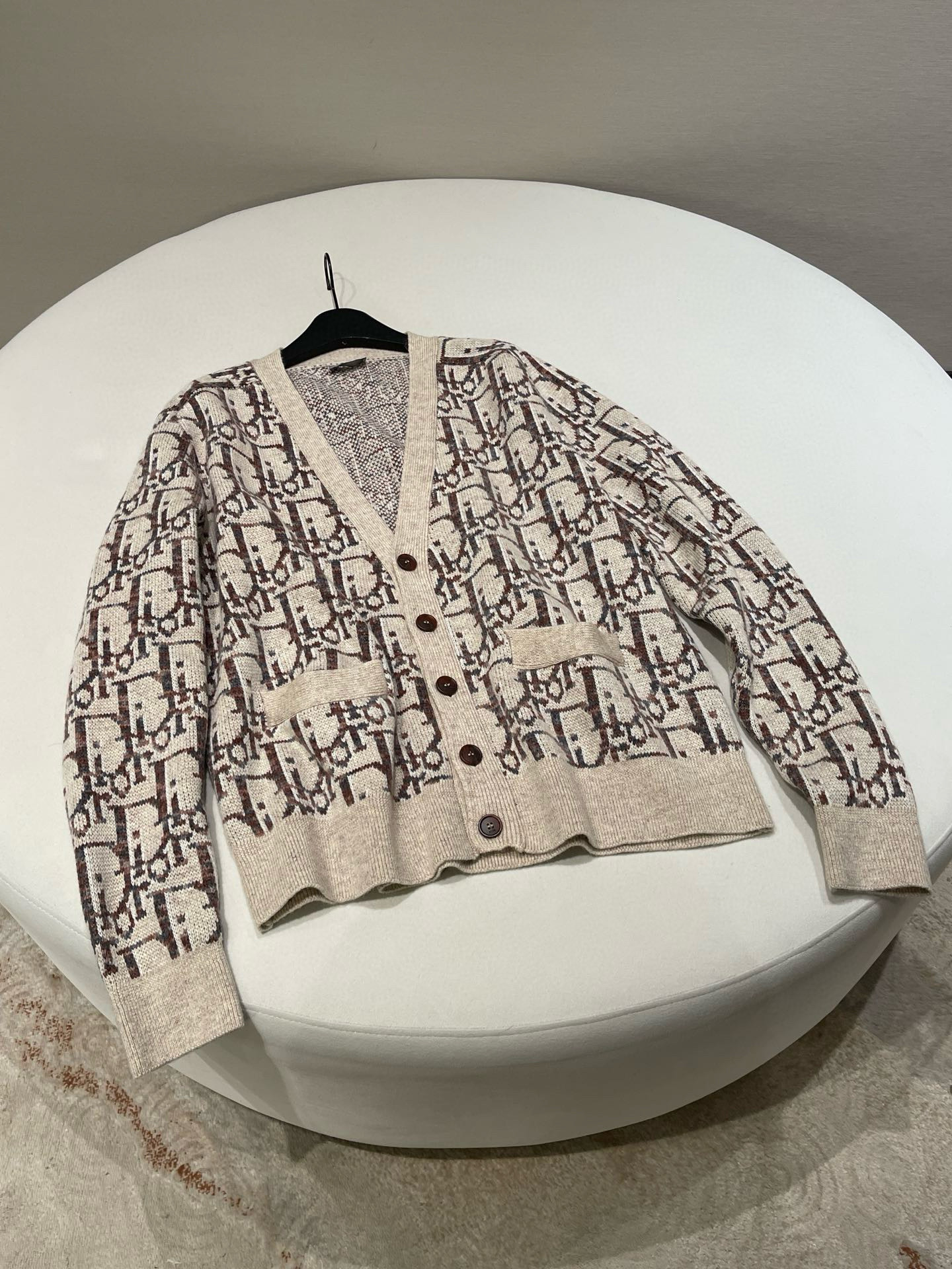 NIGO Dior Men's Spring And Summer Logo Kacquard V-Neck Single-Breasted Wool Knit Cardigan Jacket #nigo97553