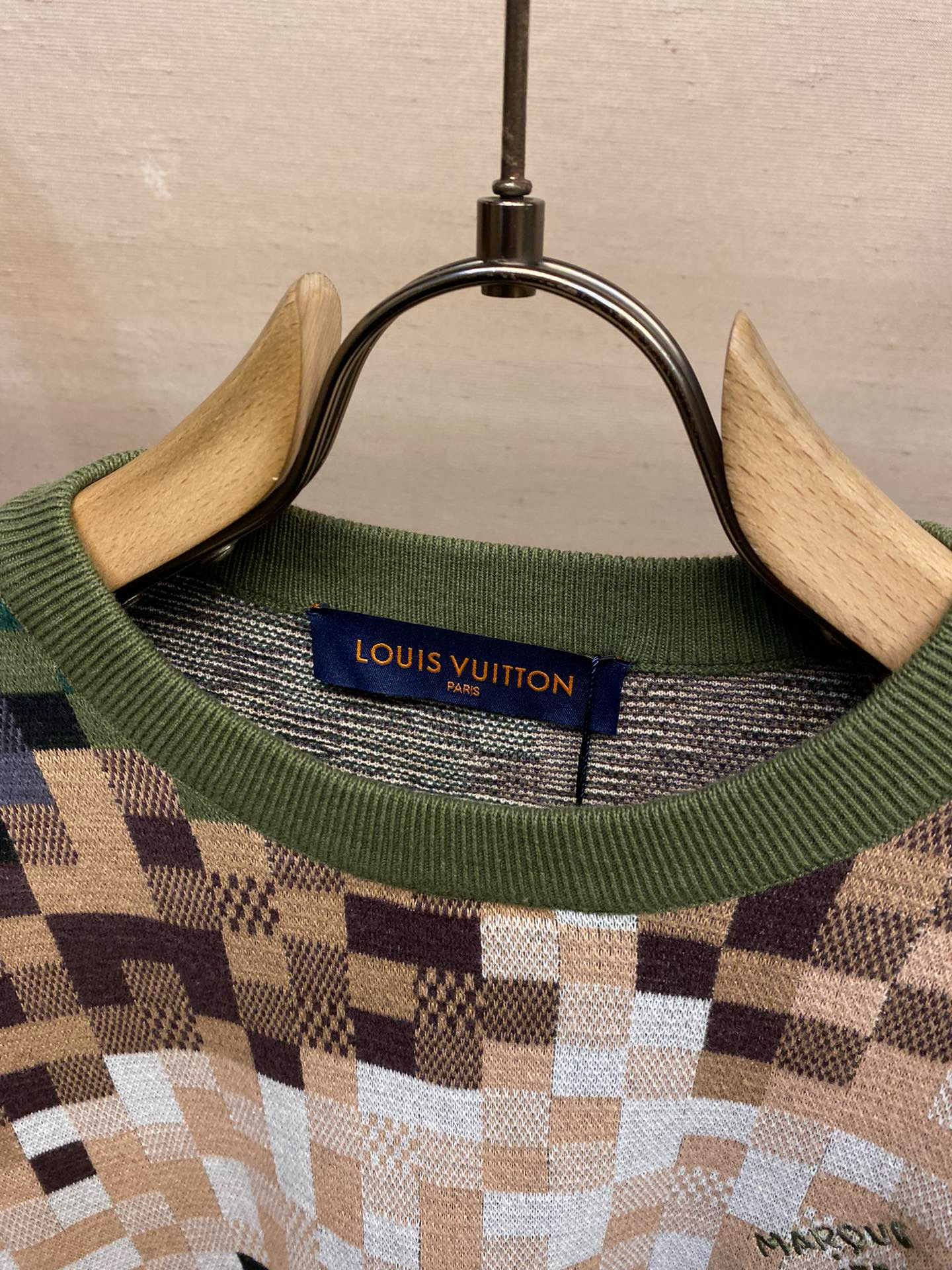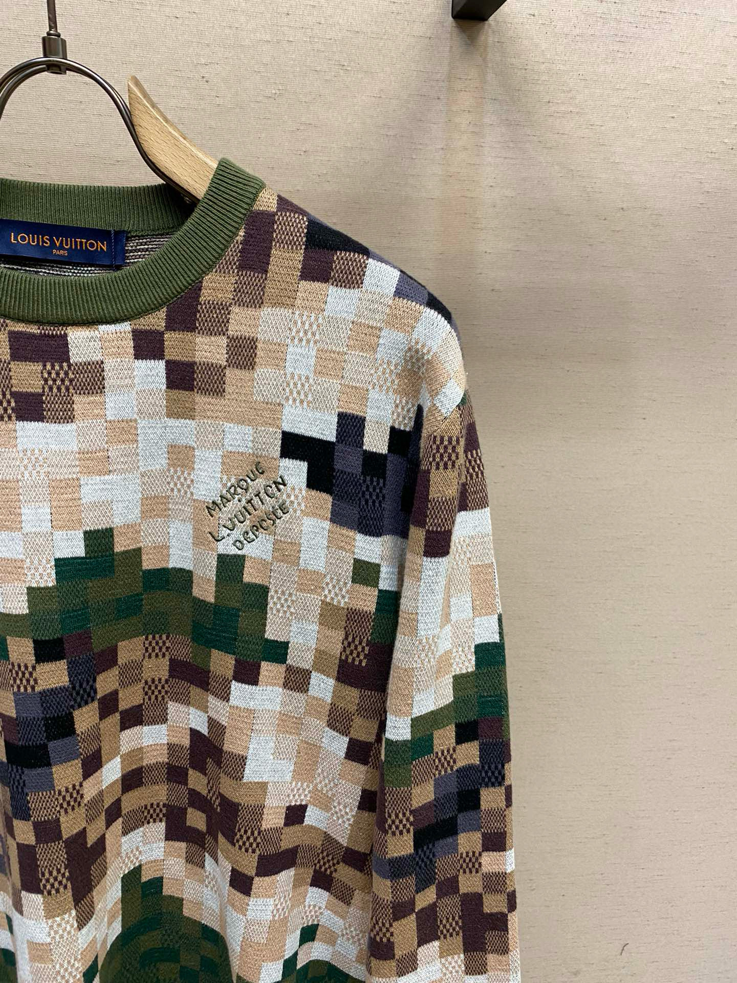 NIGO Louis Vuitton Co-ed Autumn/Winter Camouflage Green Checkerboard Wool Knit Sweater #nigo97499
