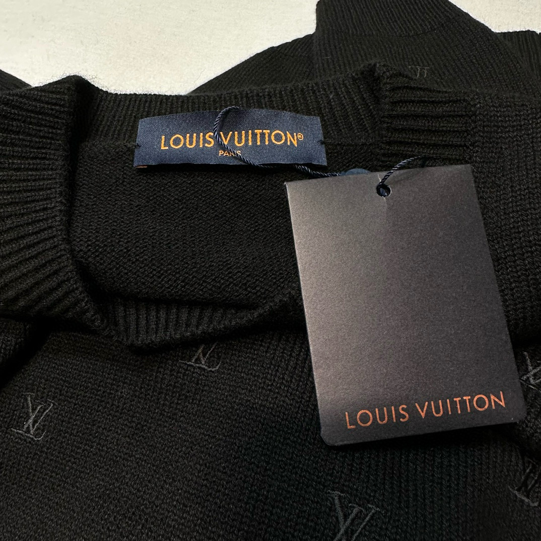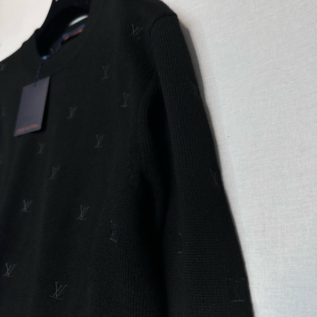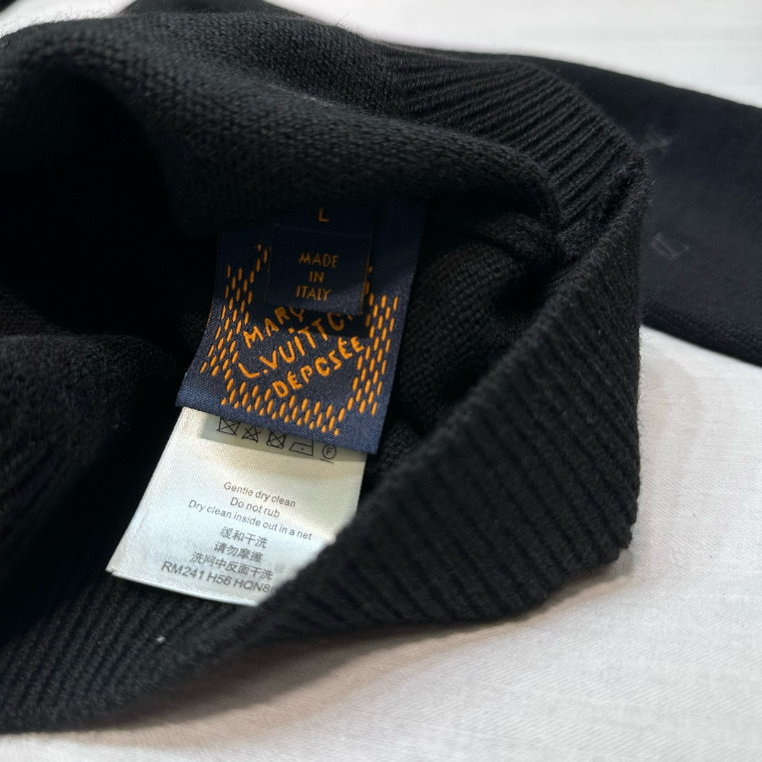 NIGO Louis Vuitton Men's Fall And Winter Black Long Sleeve Logo Embroidered Signature Merino Crewneck Sweater #nigo98236