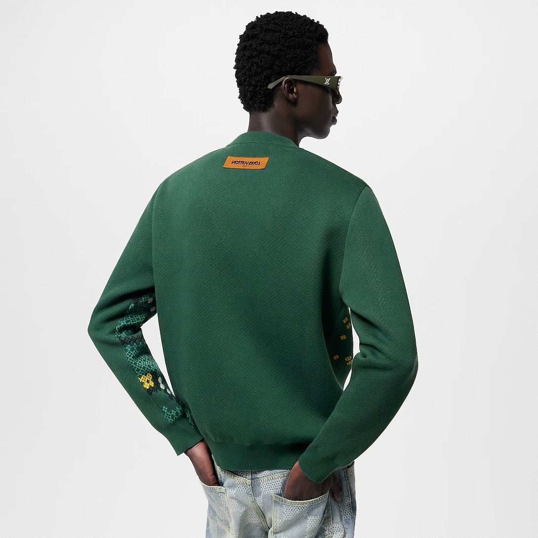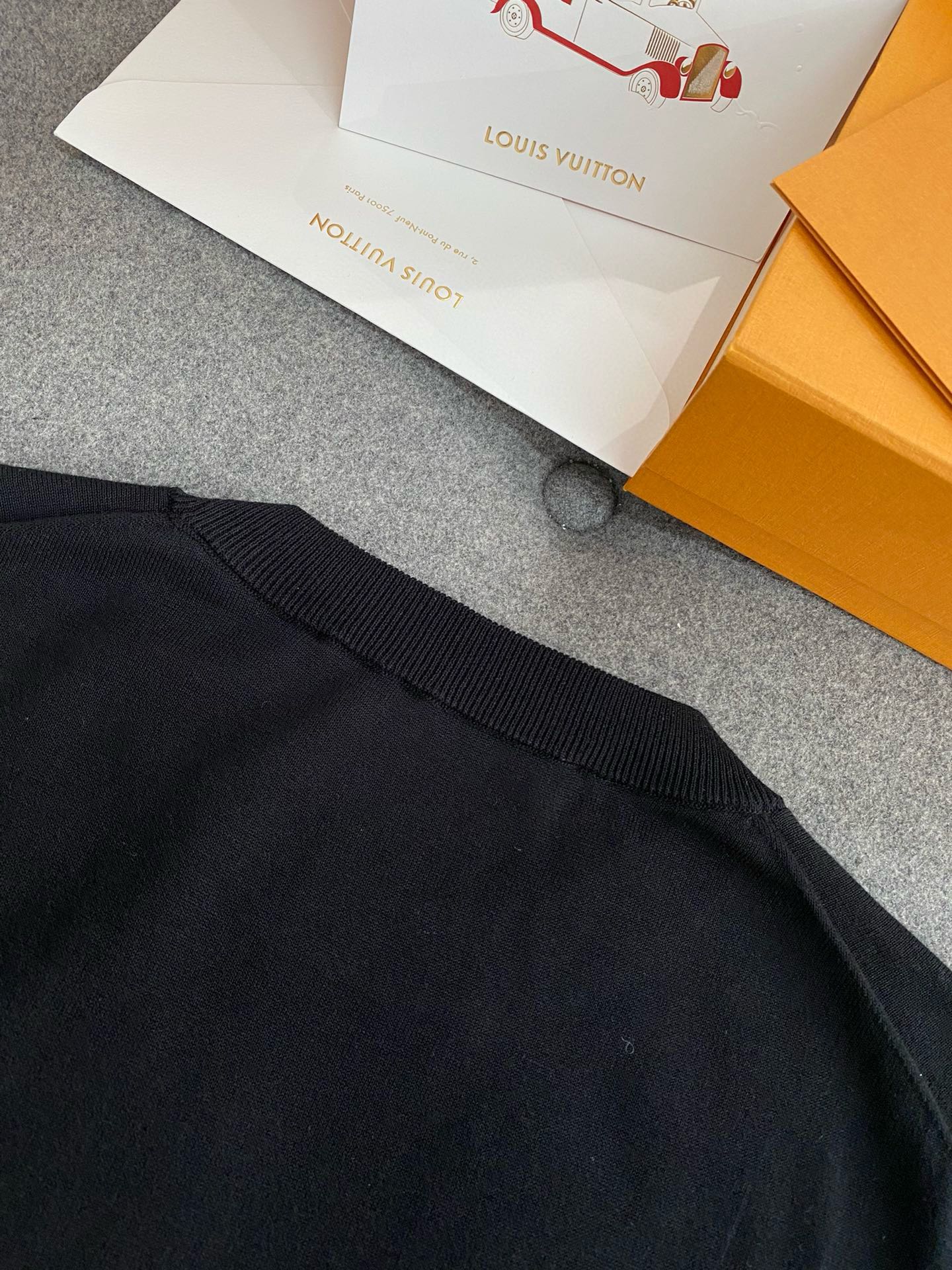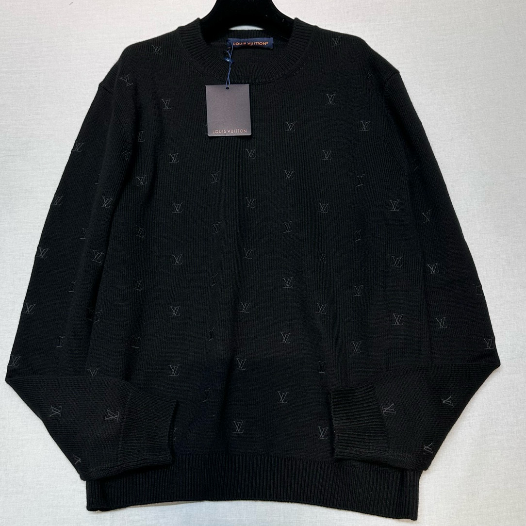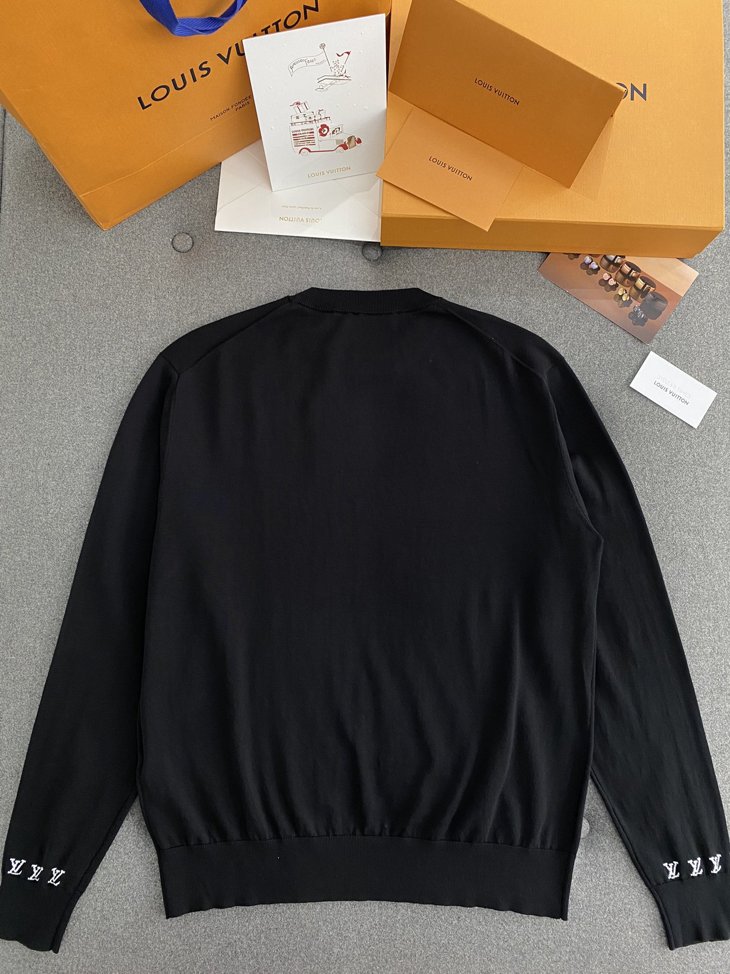 NIGO Louis Vuitton Men's Fall And Winter Black Long Sleeve Logo Embroidered Signature Merino Crewneck Sweater #nigo98236
