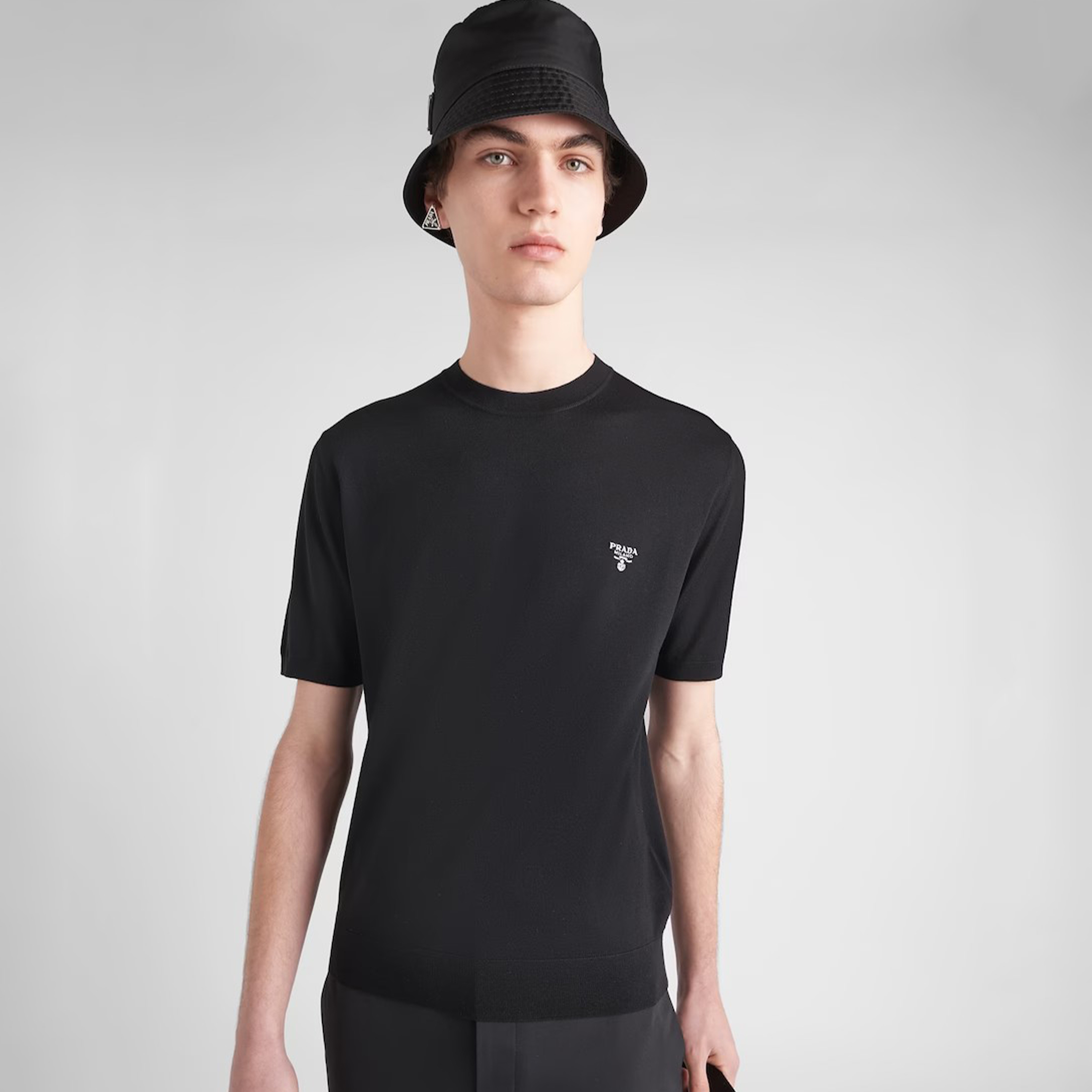 NIGO Prada Men's Spring/Summer Solid Color Logo Embroidery Superfine Wool Crew Neck Short Sleeve Sweater #nigo98319
