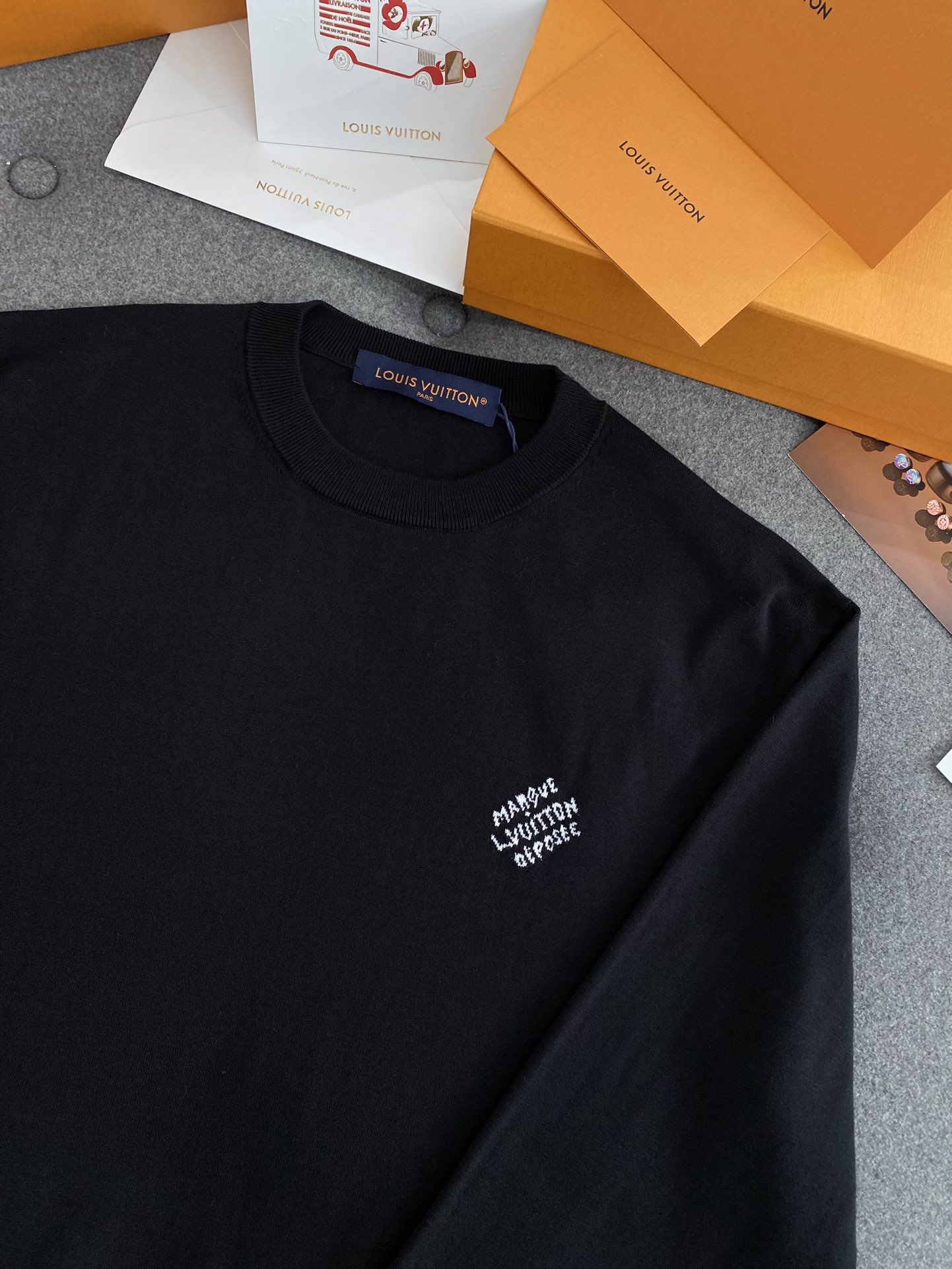 NIGO Louis Vuitton Men's Spring And Fall Logo Printed Crew Neck Black Cotton Long Sleeve Fitted Sweater #nigo71473