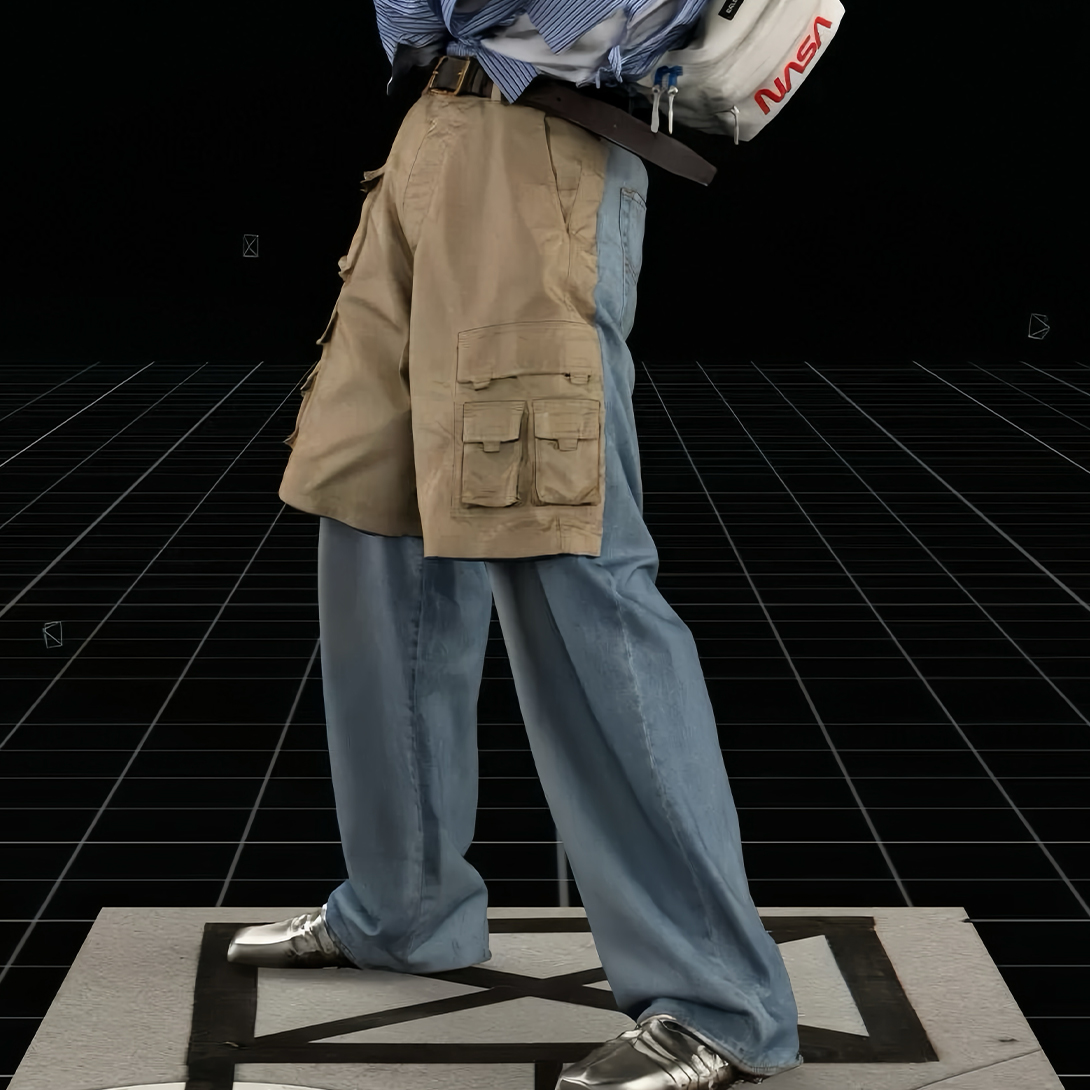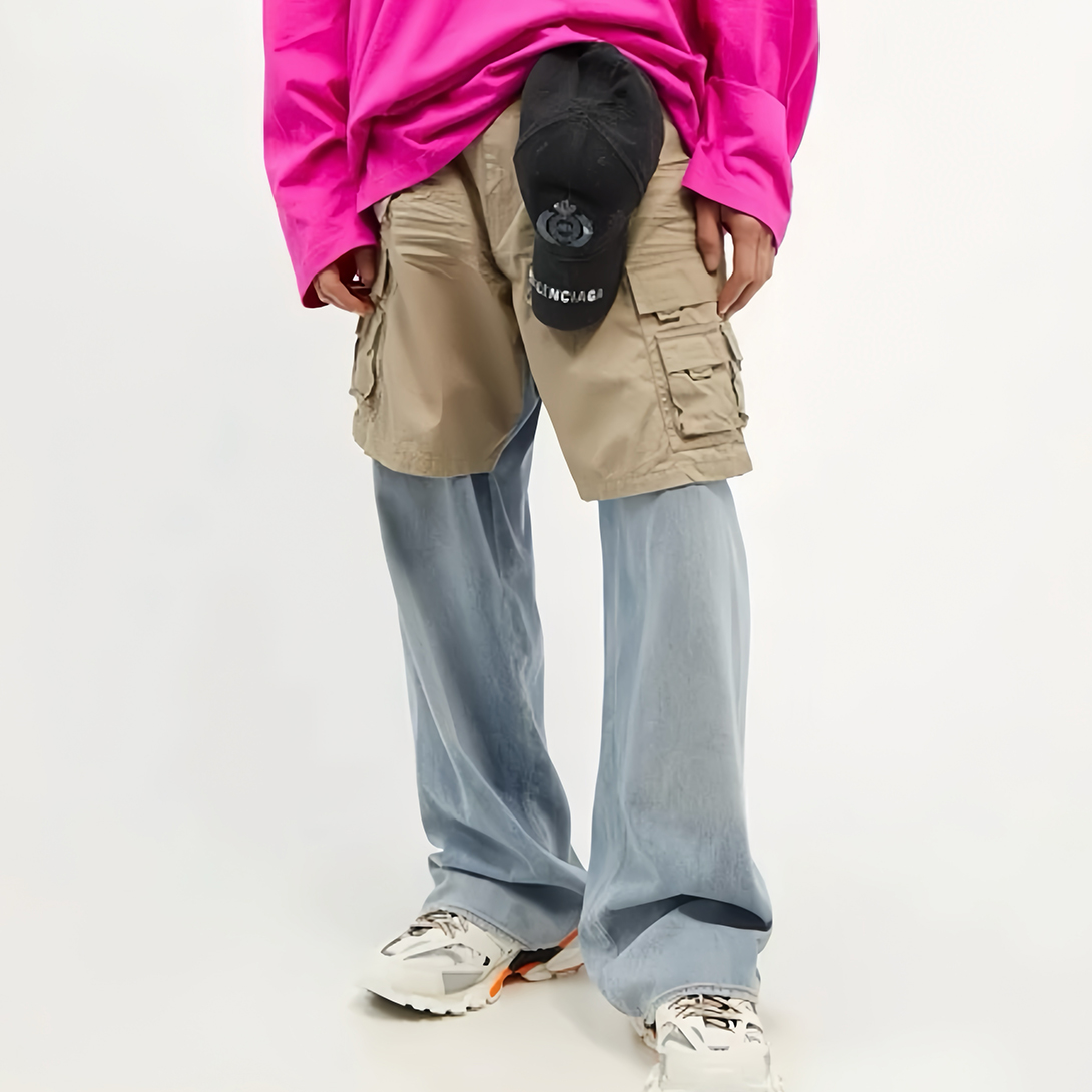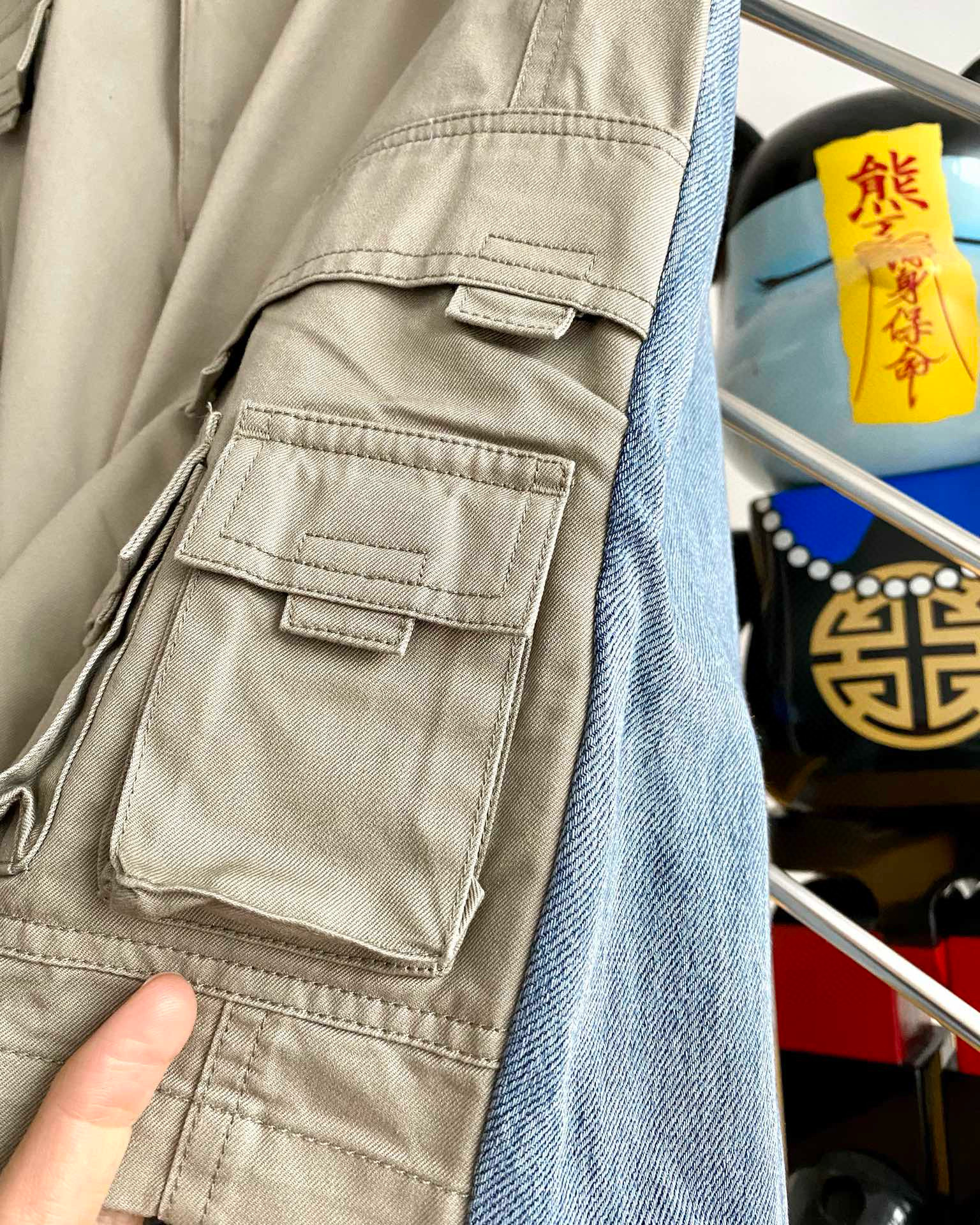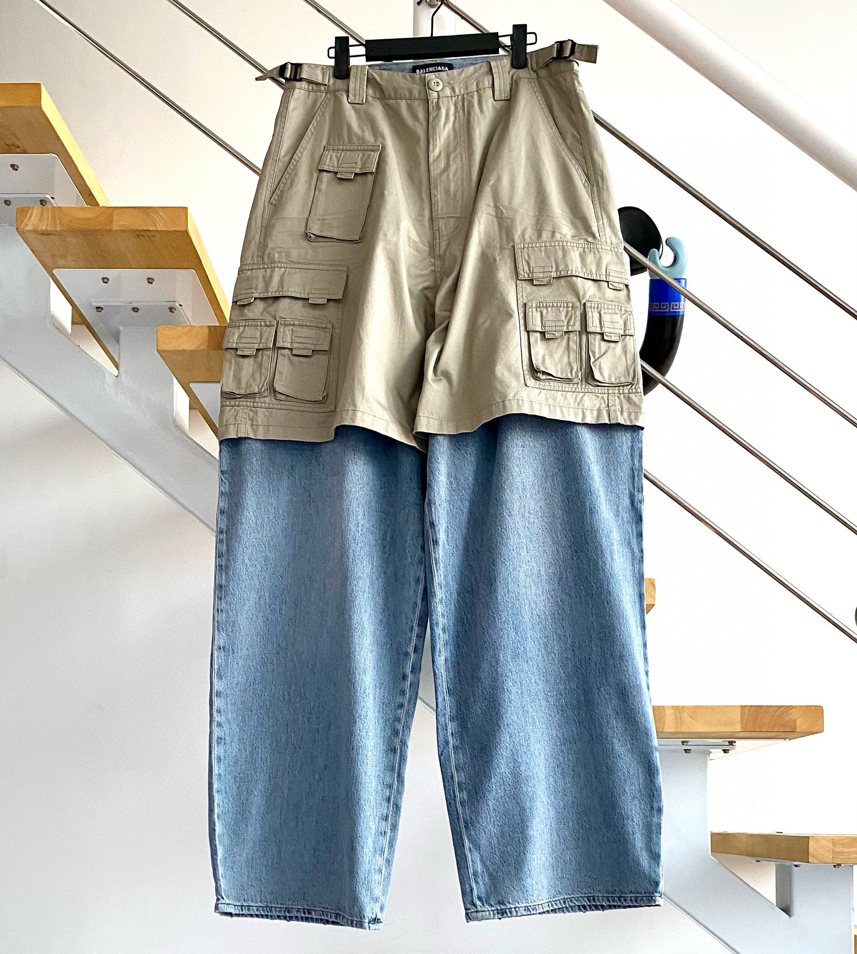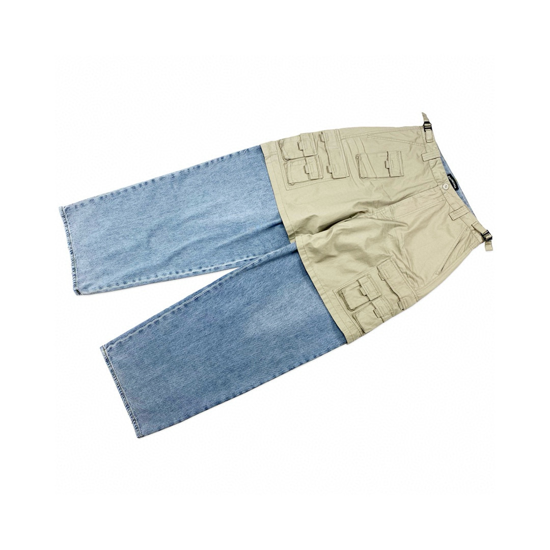 NIGO Balenciaga Men's Blue Spring & Fall Multi-Pocket Workwear Patchwork Fake Two Piece Straight Leg Denim Pants Ngvp #nigo7786