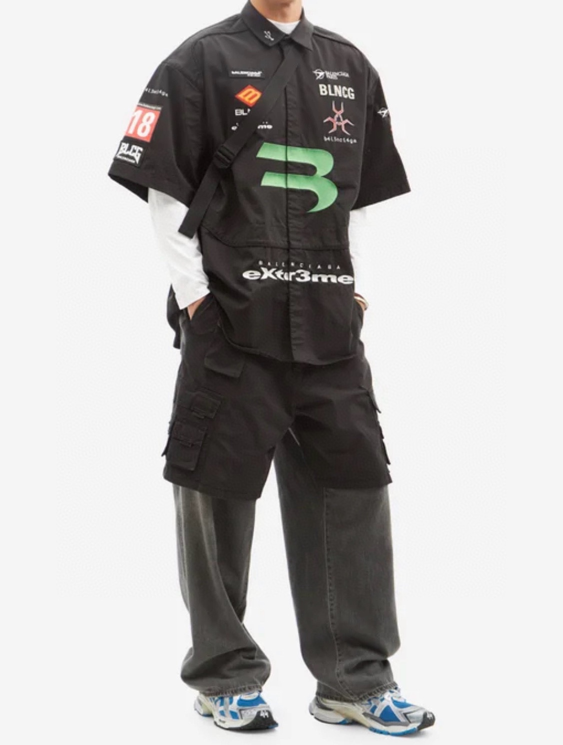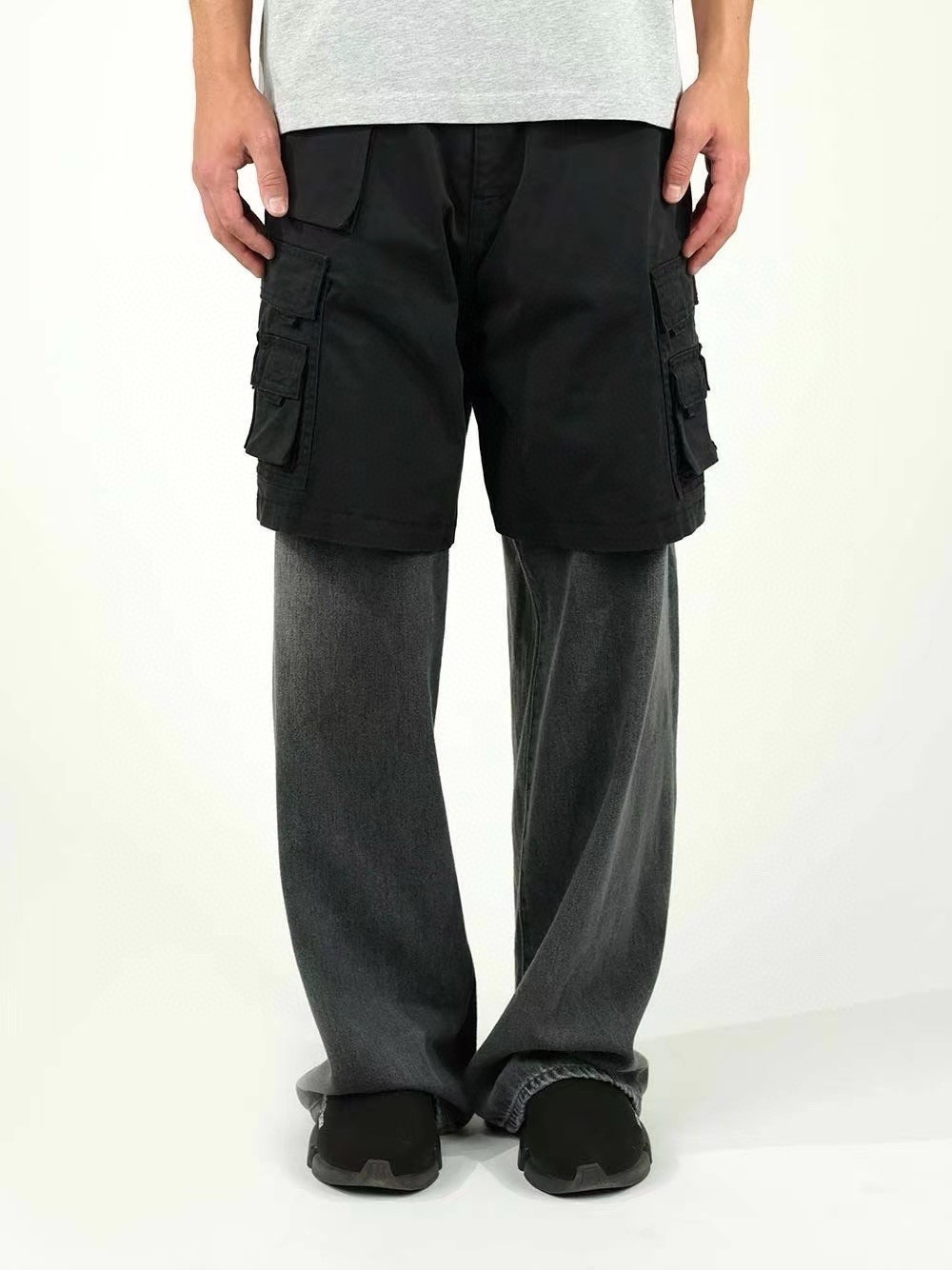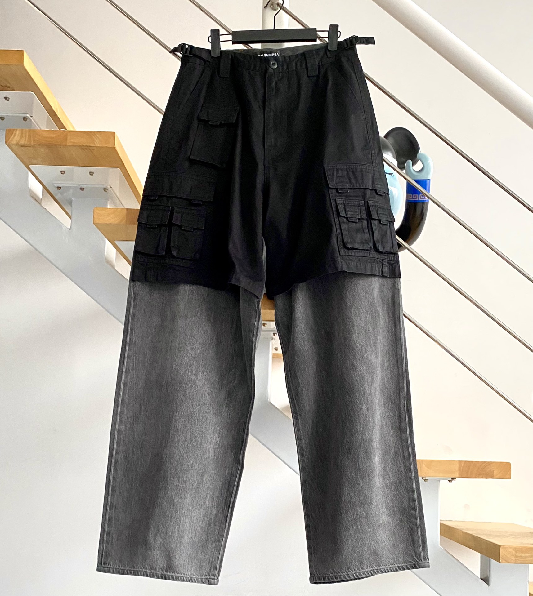 NIGO Balenciaga Men's Spring And Autumn Black Multi-Pocket Cotton Loose Work Pants Casual Spliced Denim Pants Ngvp #nigo9165