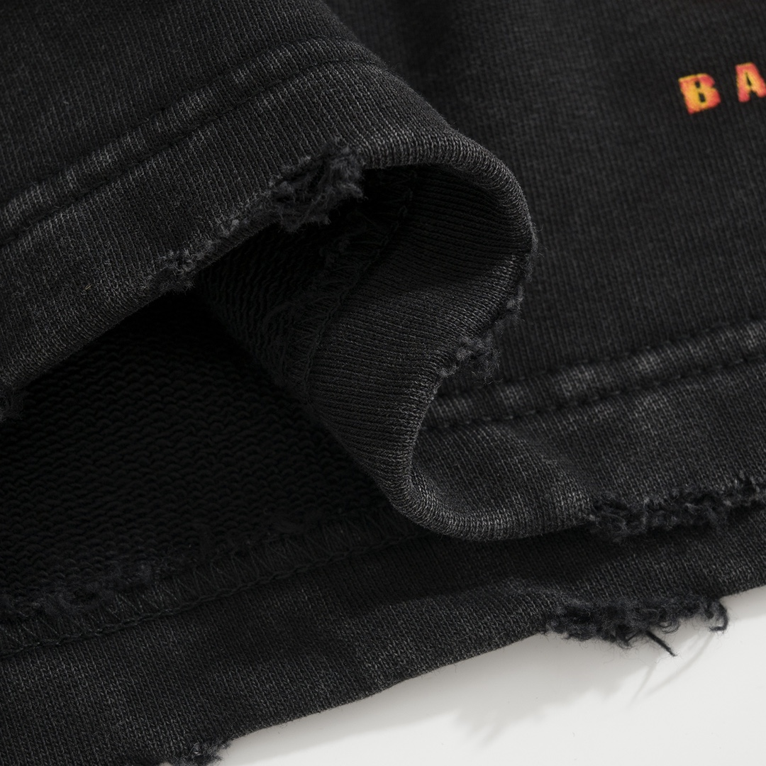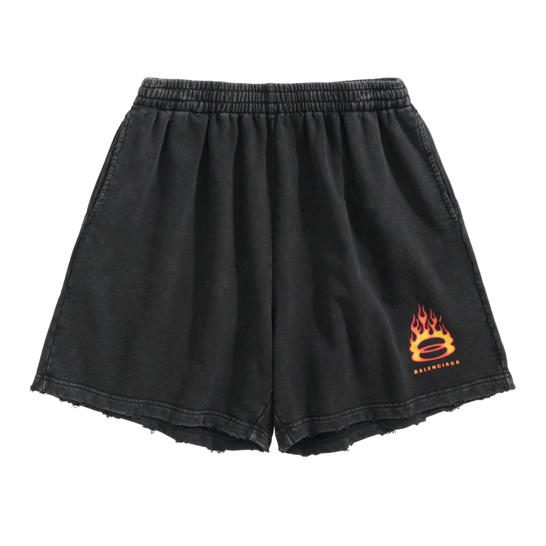 NIGO Balenciaga Men's Summer Flame Letter Black Stretch Mid Waist Cotton Shorts Pants #nigo99535