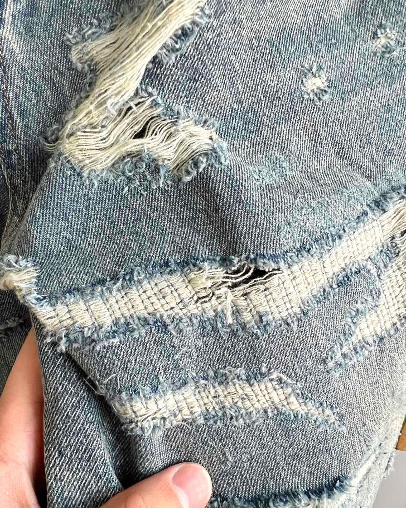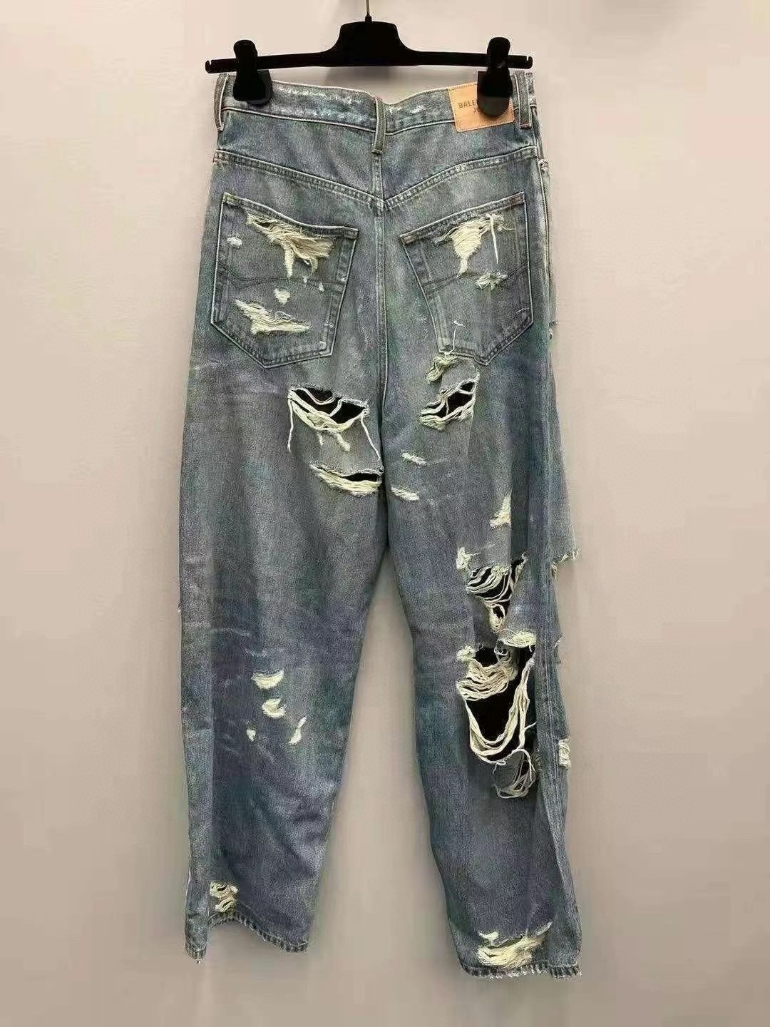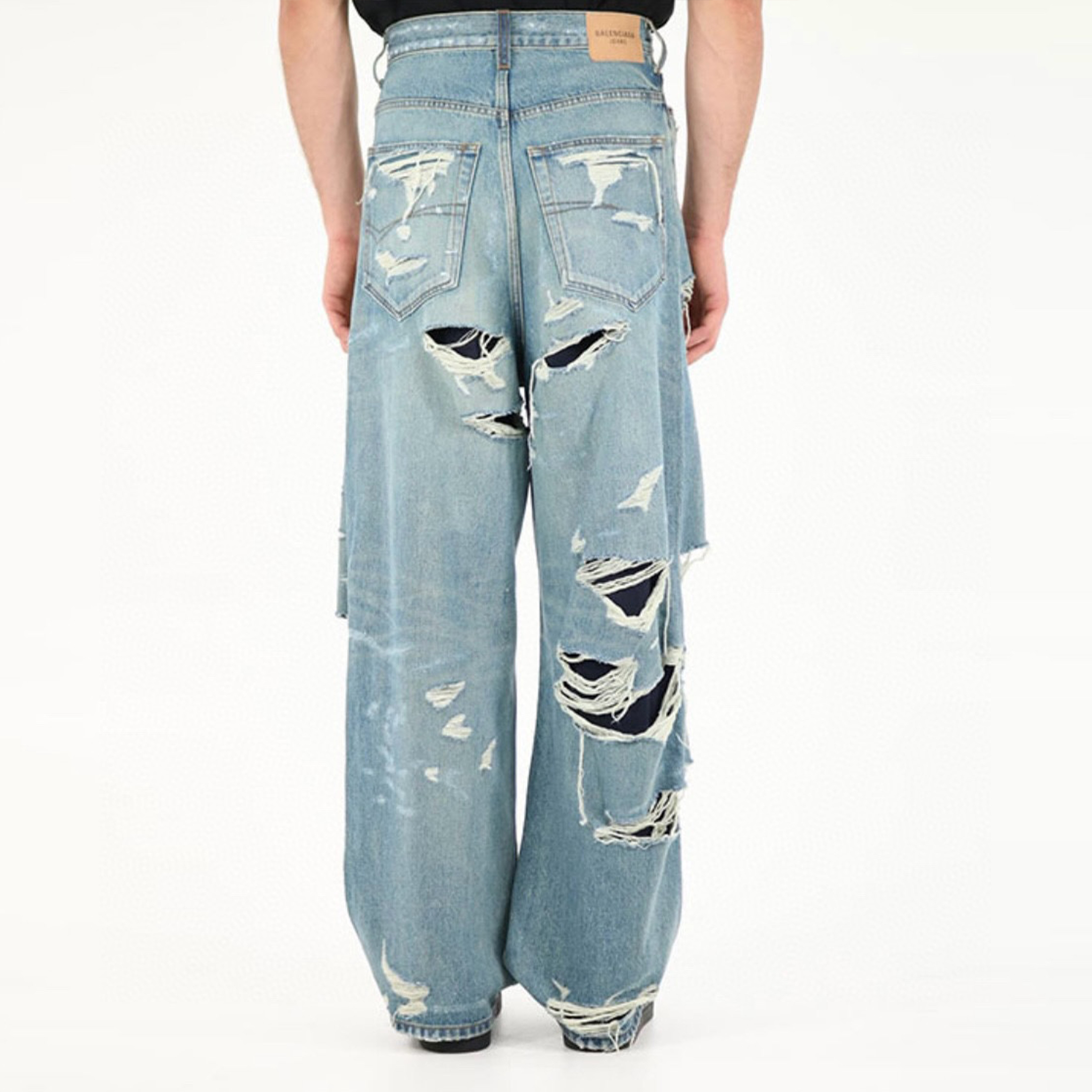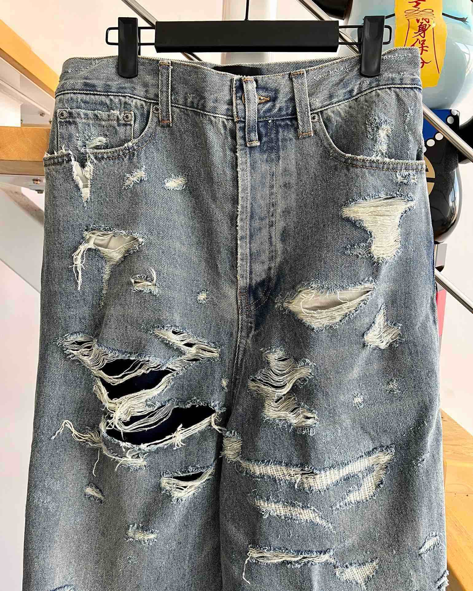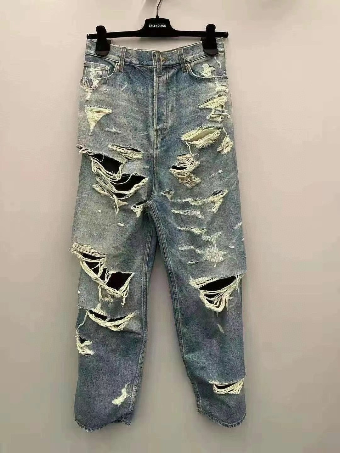 NIGO Balenciaga Men's Women's Four Seasons Fashion Destroyed Denim Trousers Blue Double Layer Casual Fit Straight Jeans Pants Ngvp #nigo8933
